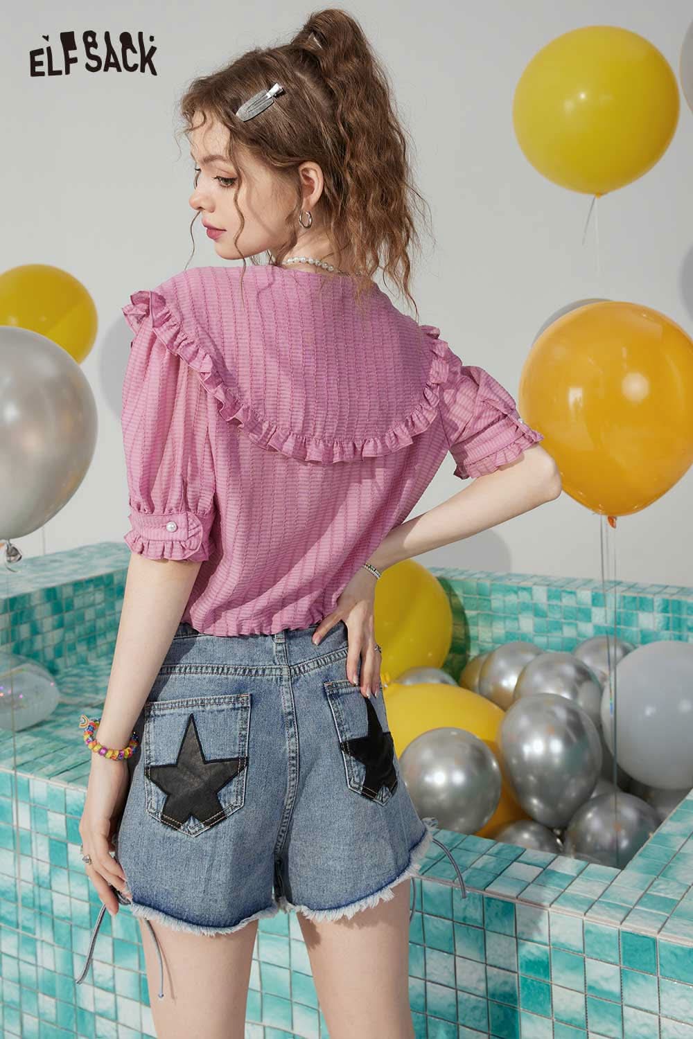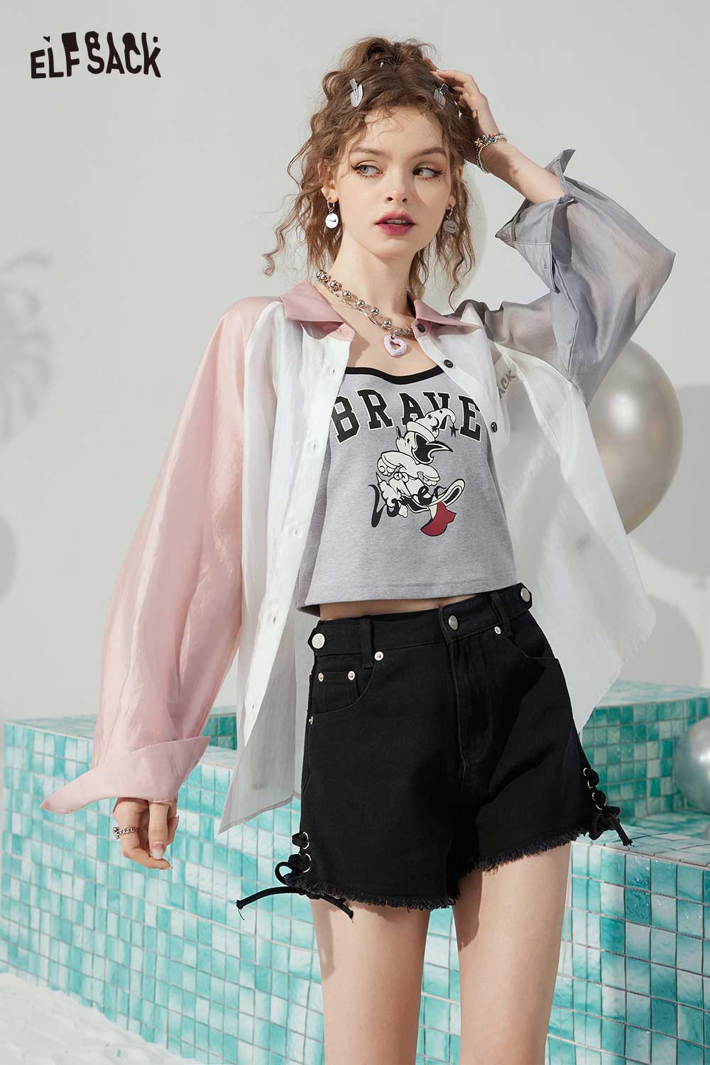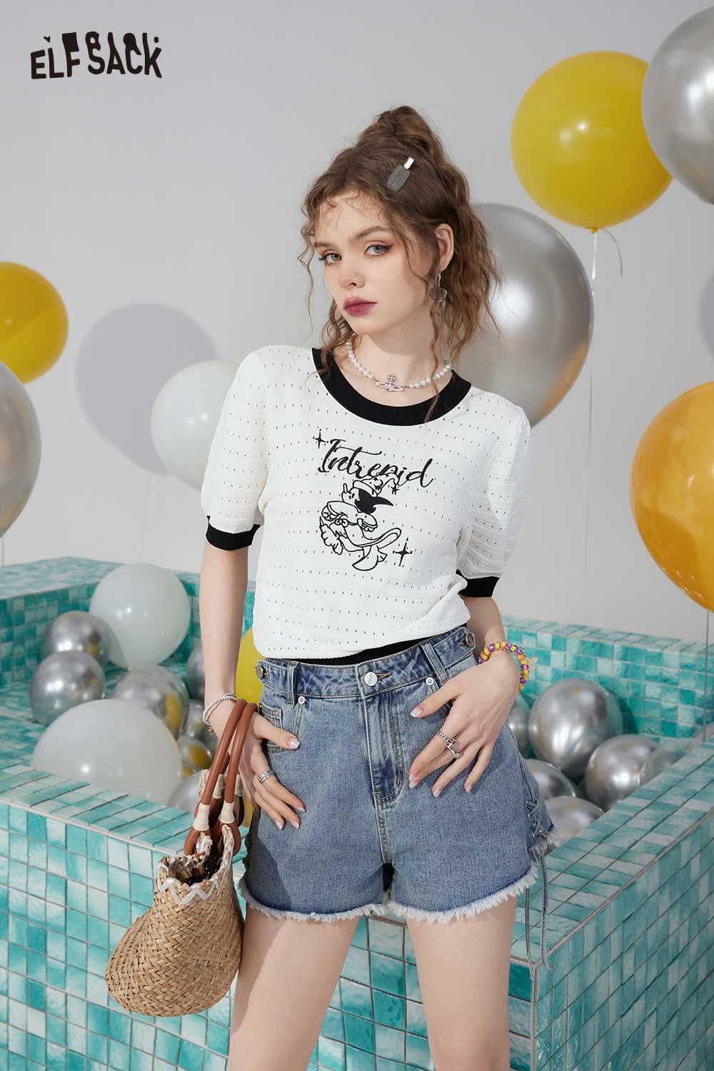 Light Casual Drawstring Tie Denim Design Raw Edge Shorts