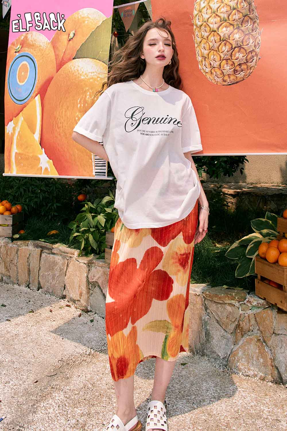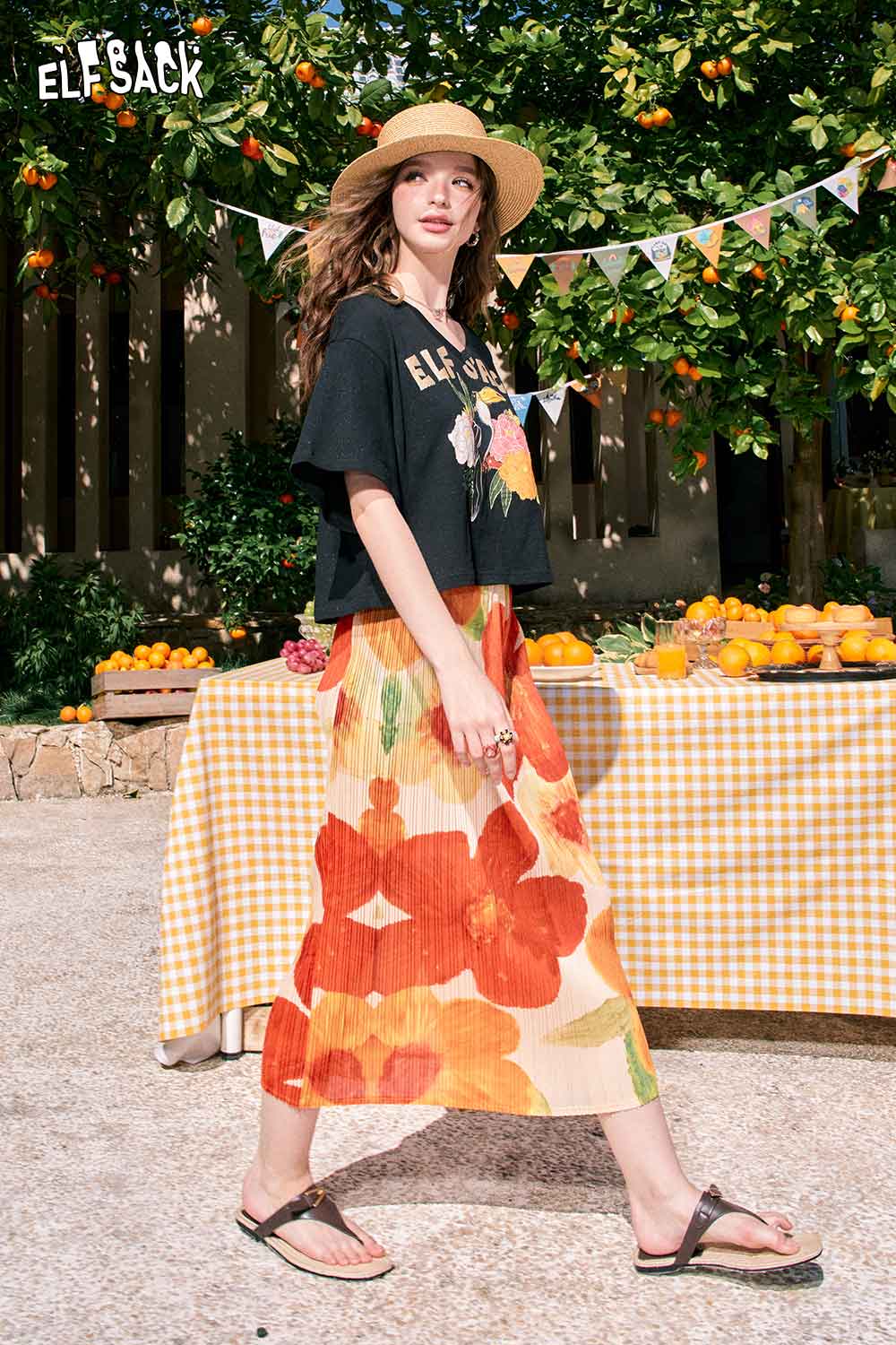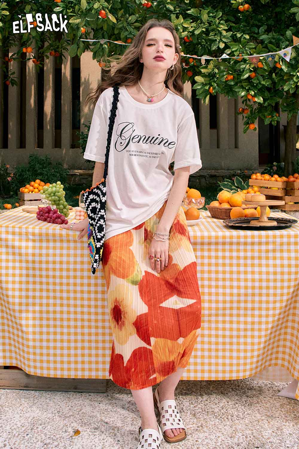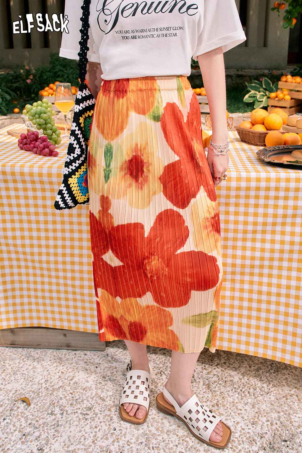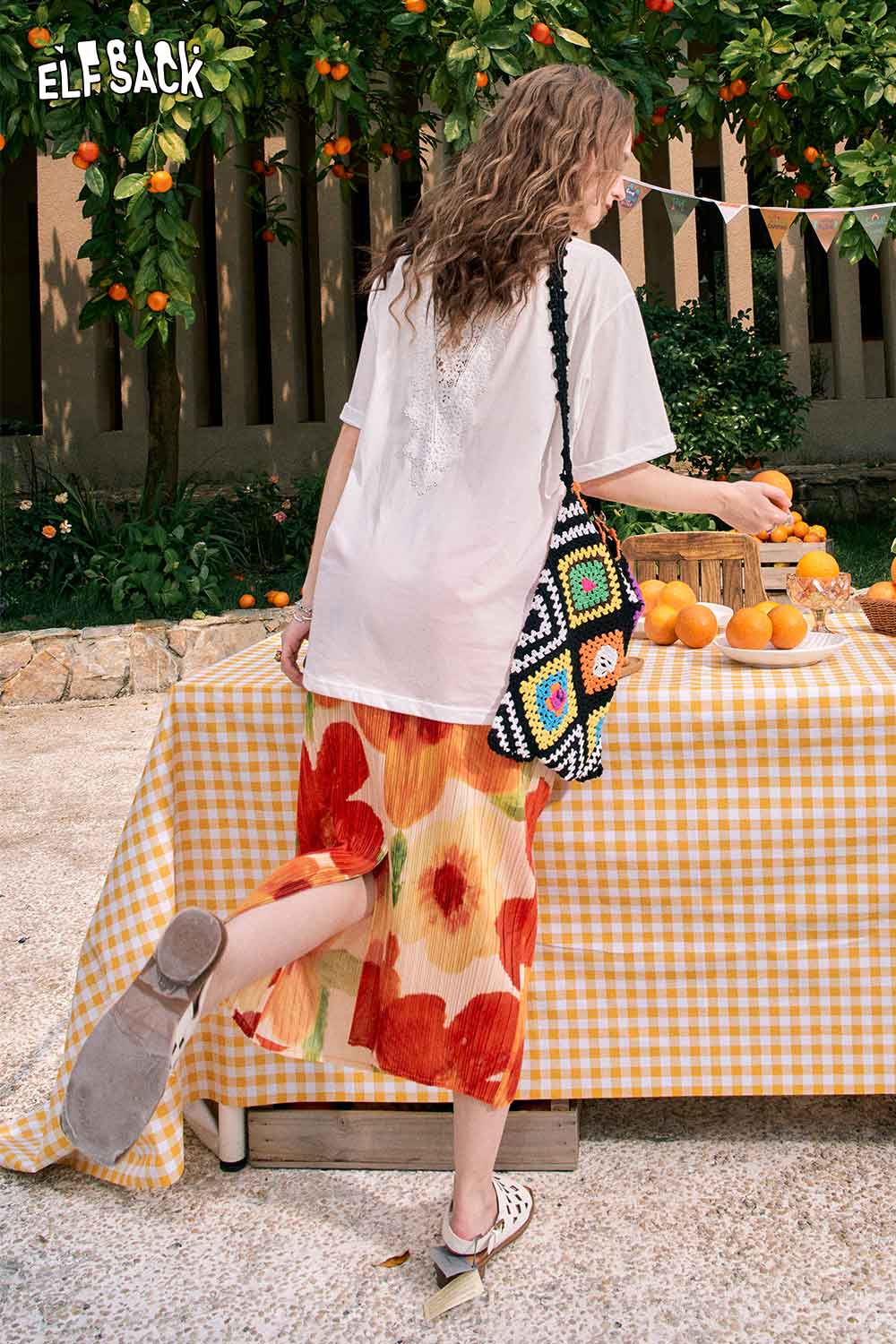 Light Bohemian Full Floral Print Seaside Mid Length Skirt