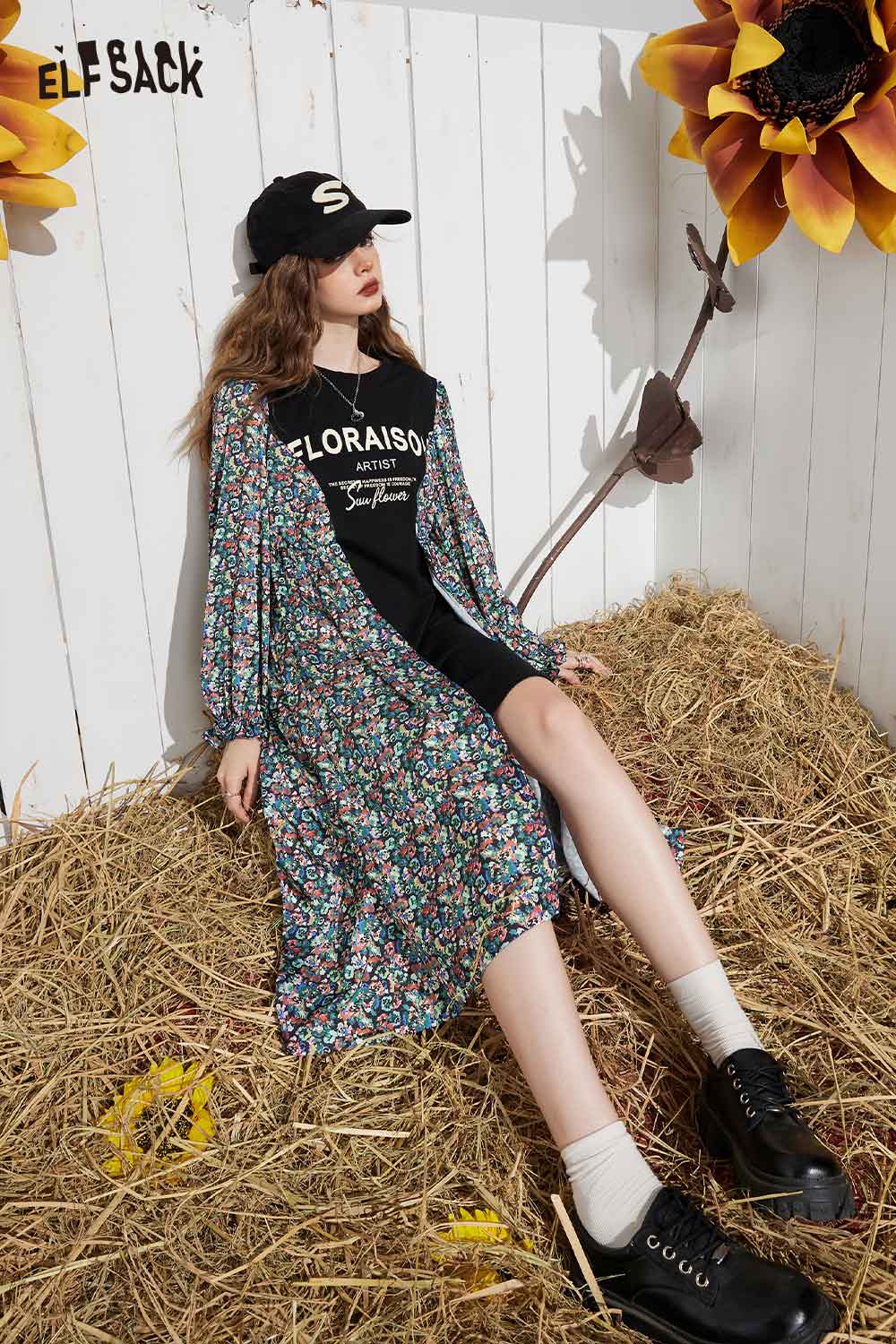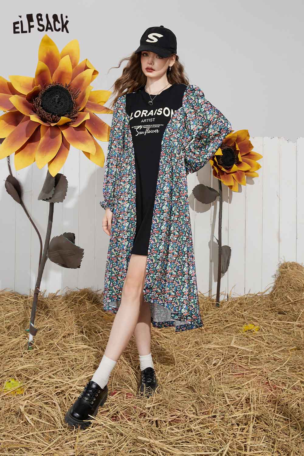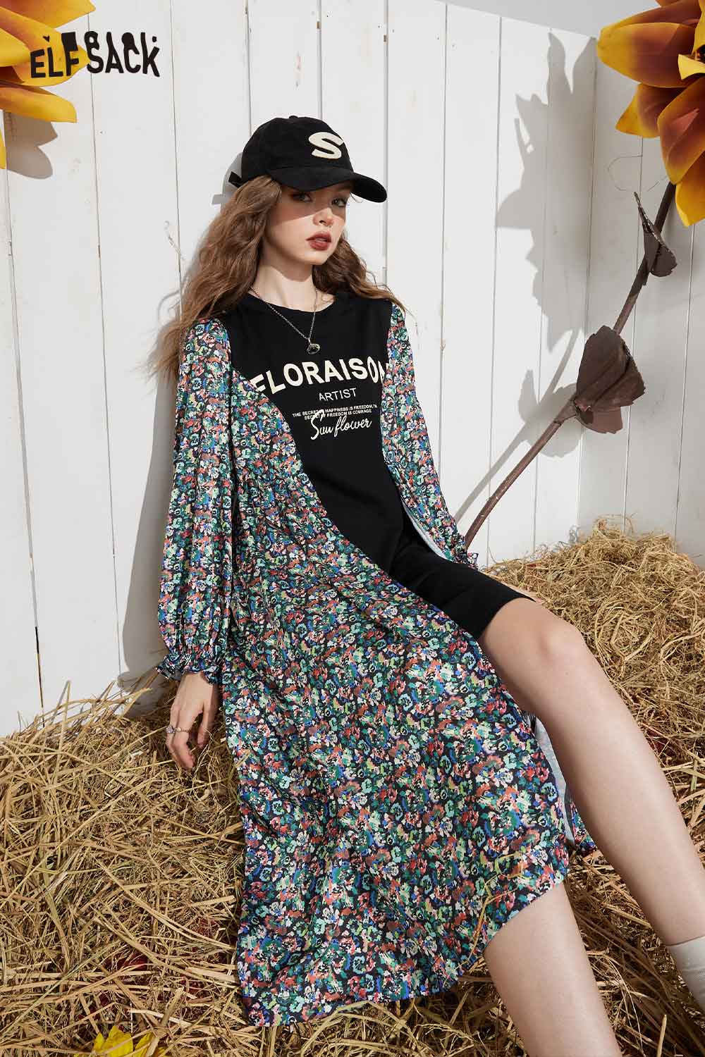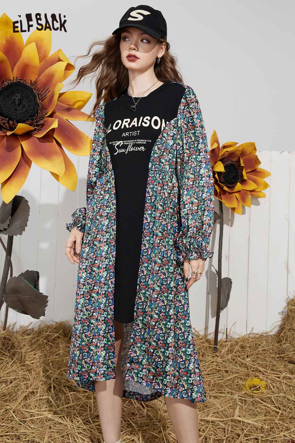 Light French Floral Loose Two Piece A-Line Maxi Dress