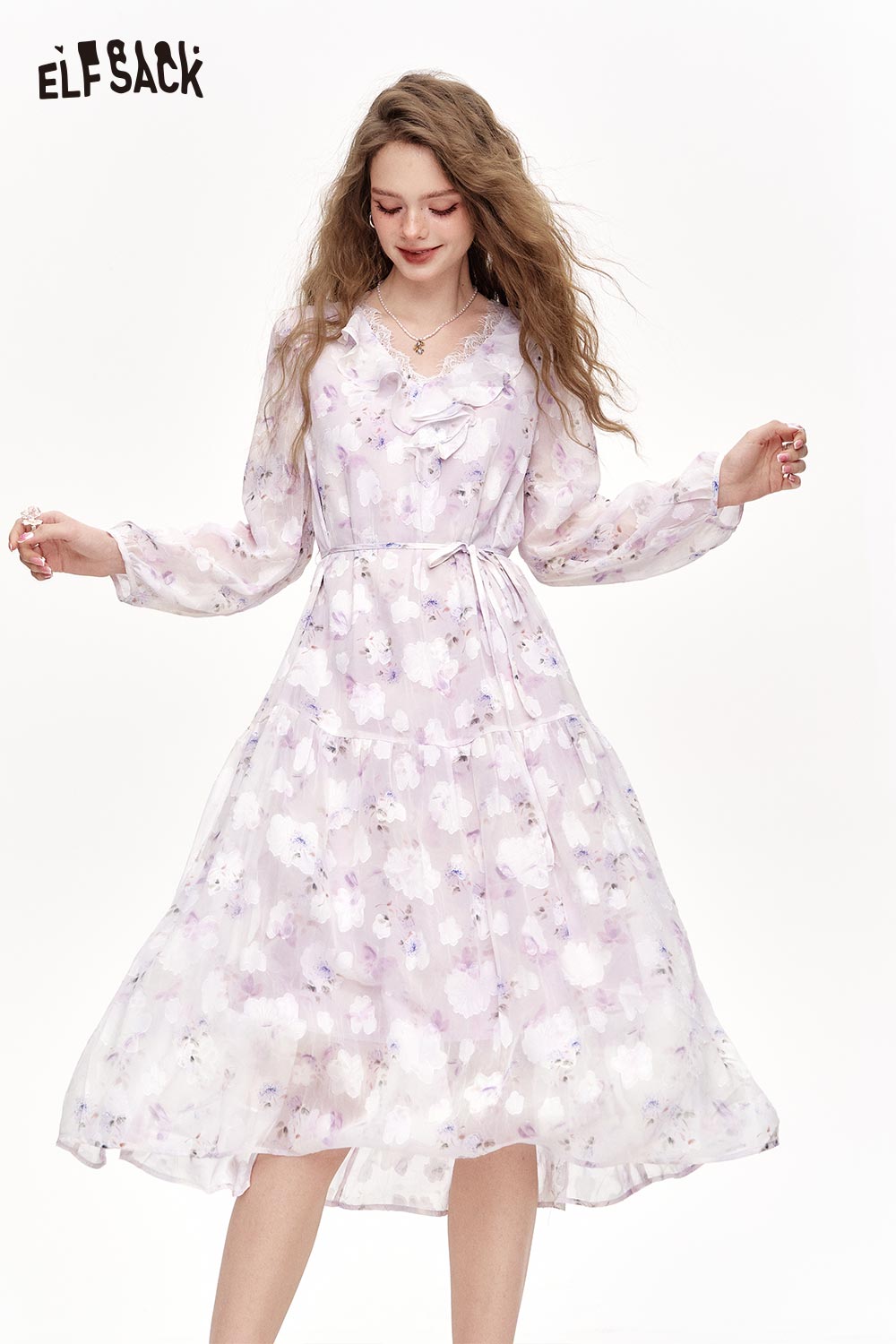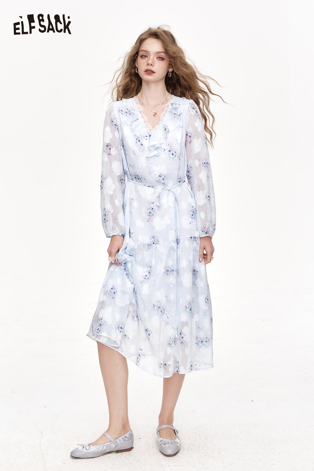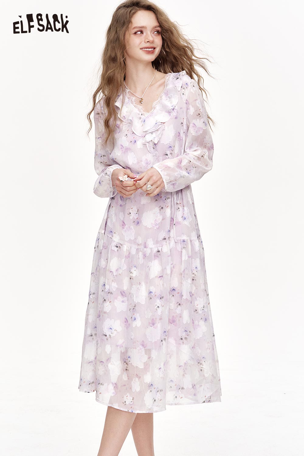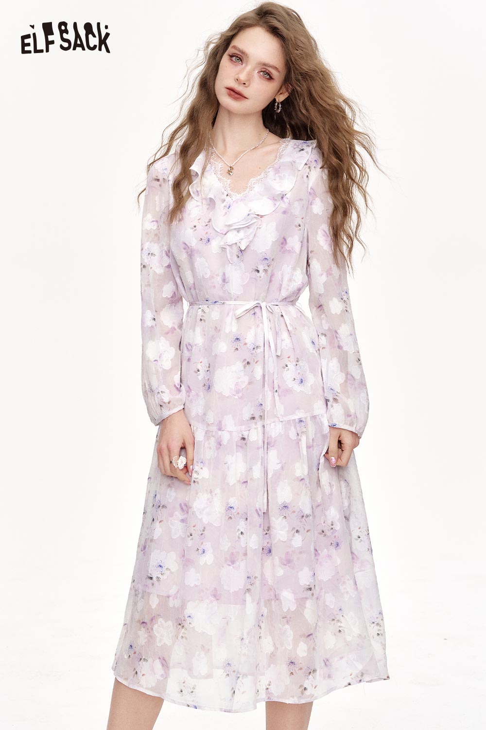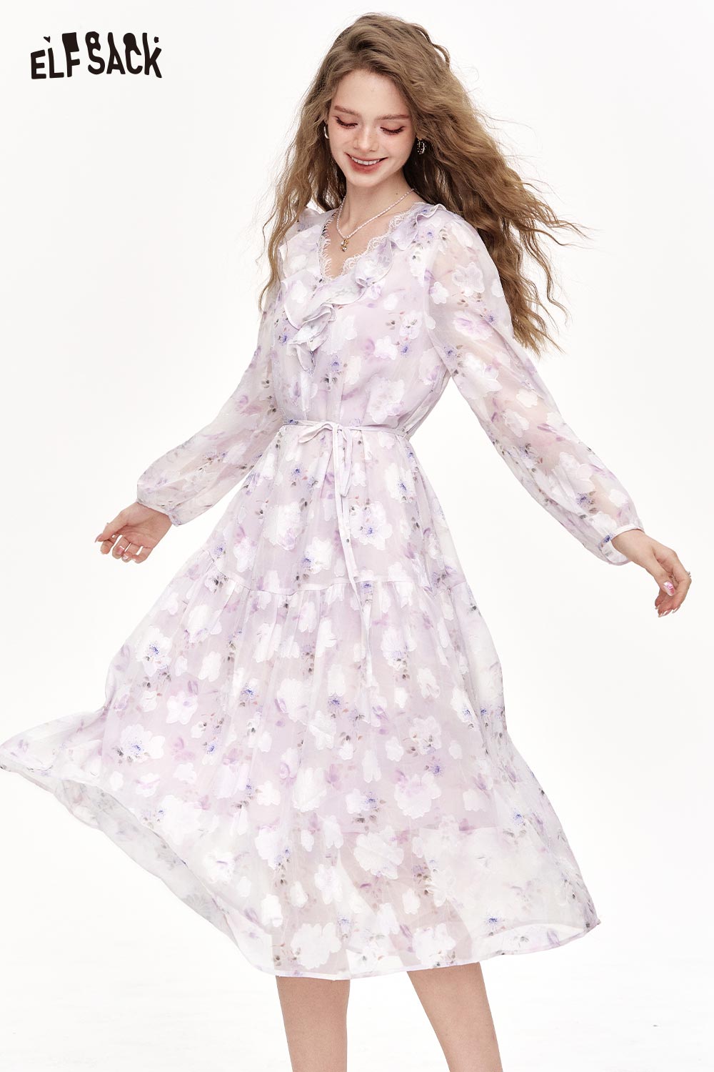 Chiffon V-Neck Ruffle Floral Dress