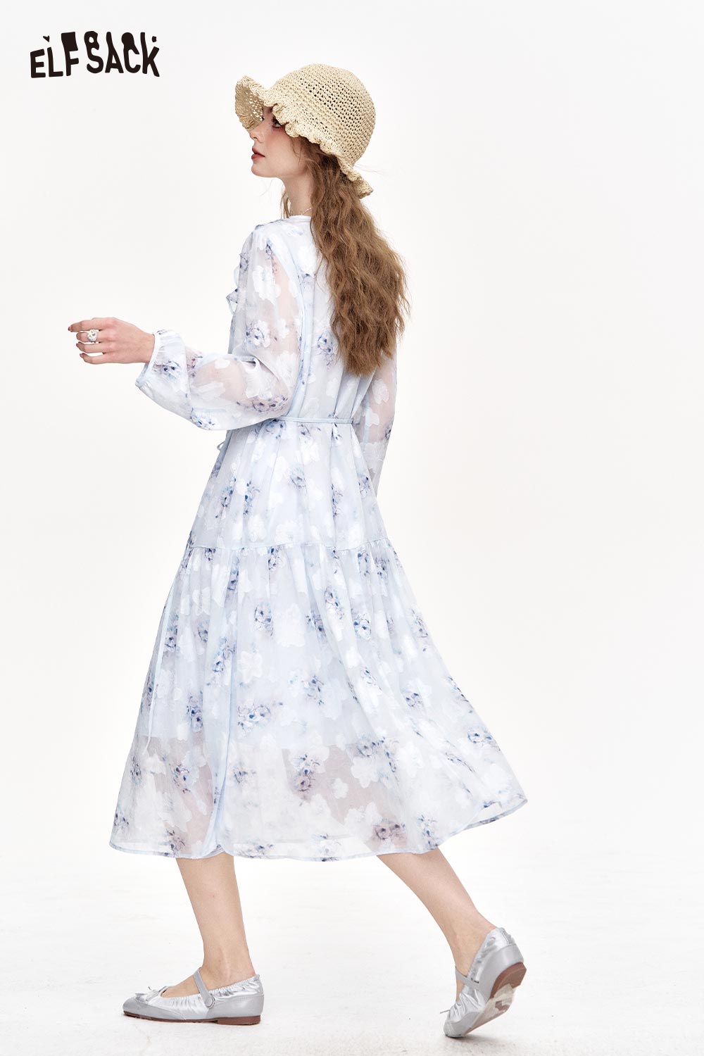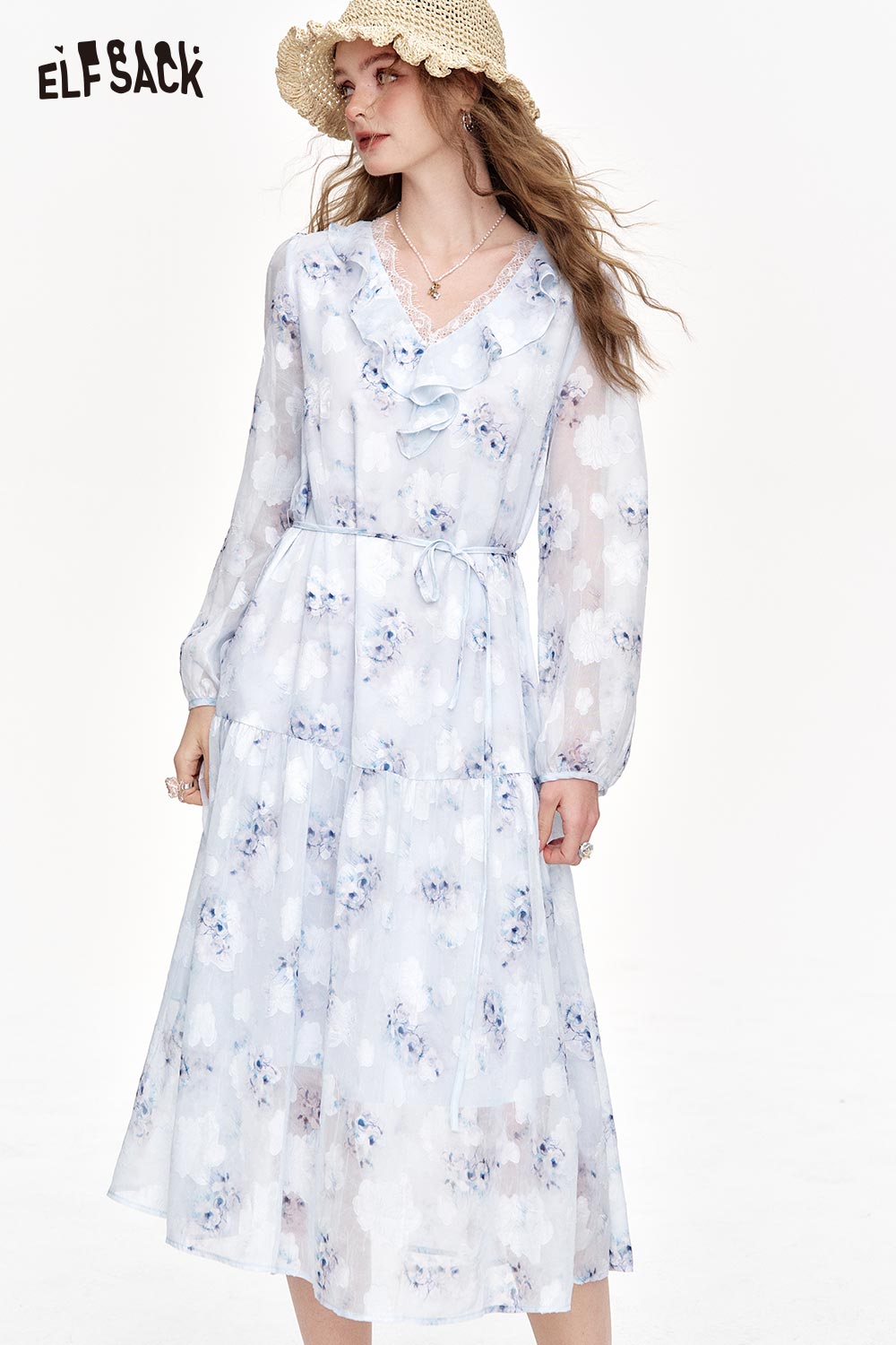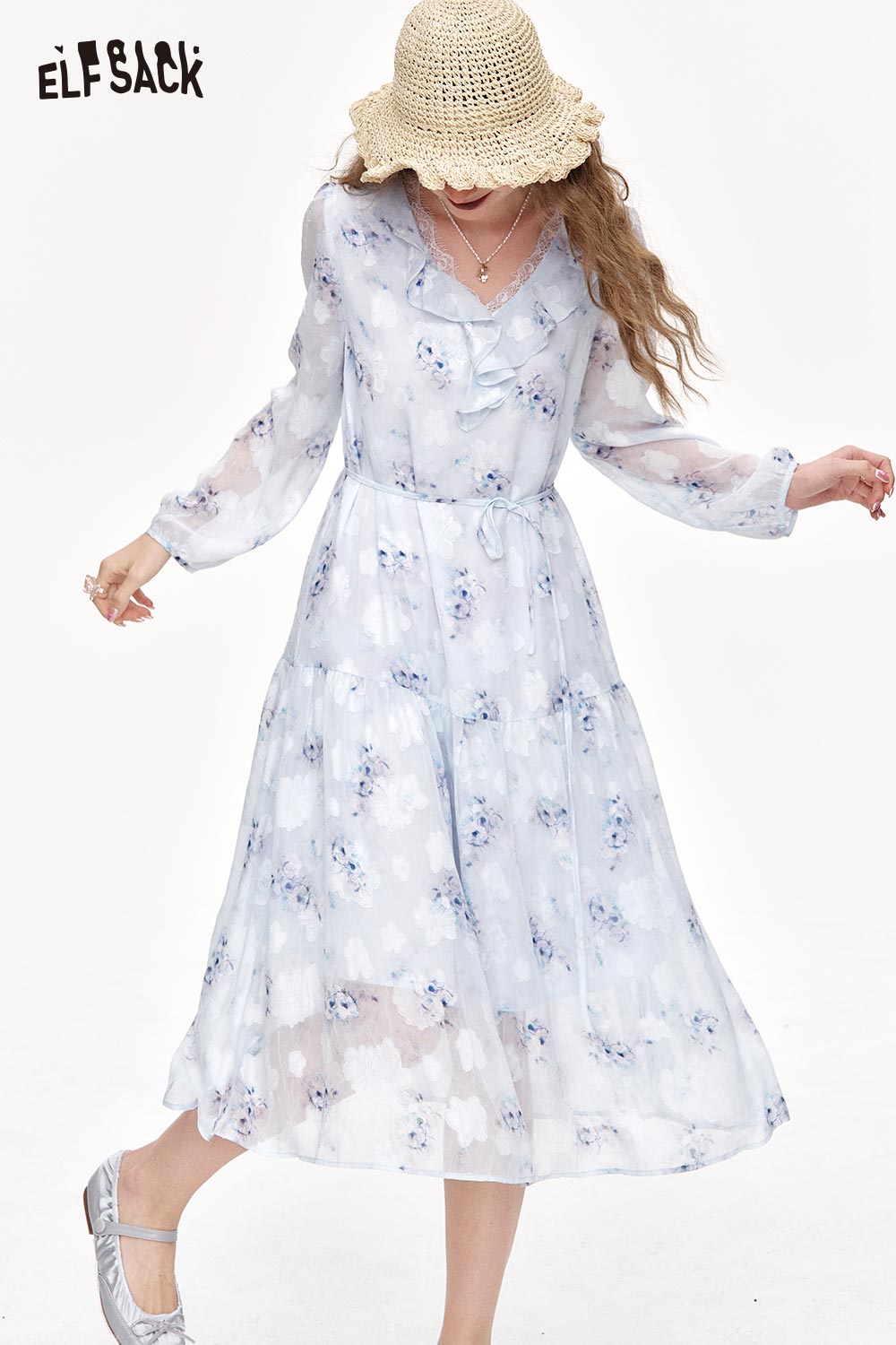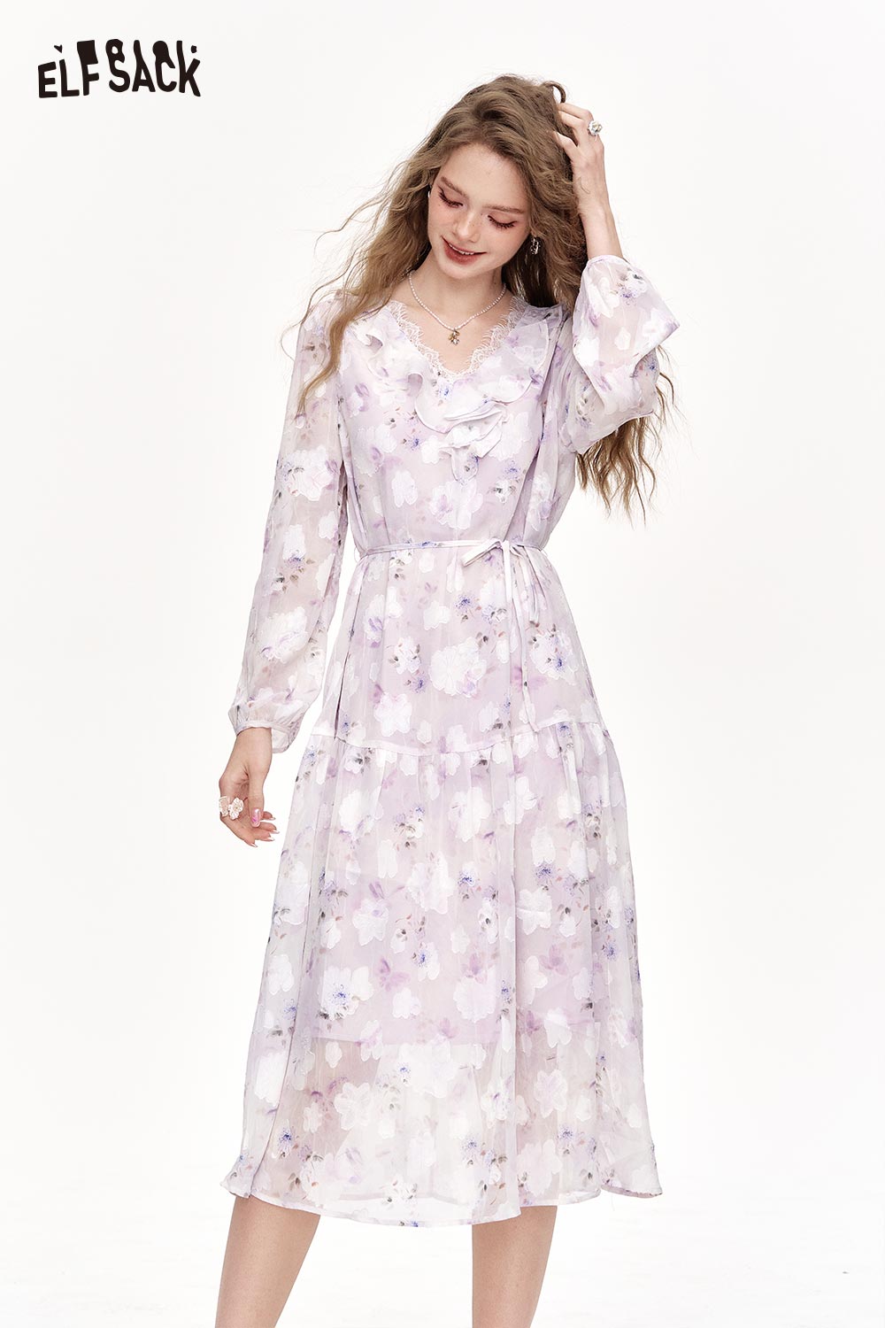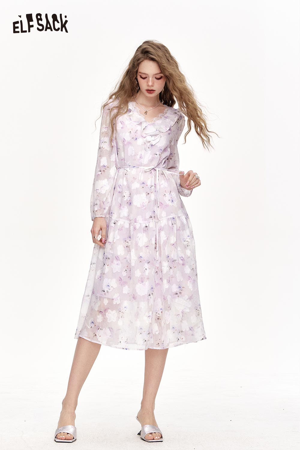 Chiffon V-Neck Ruffle Floral Dress