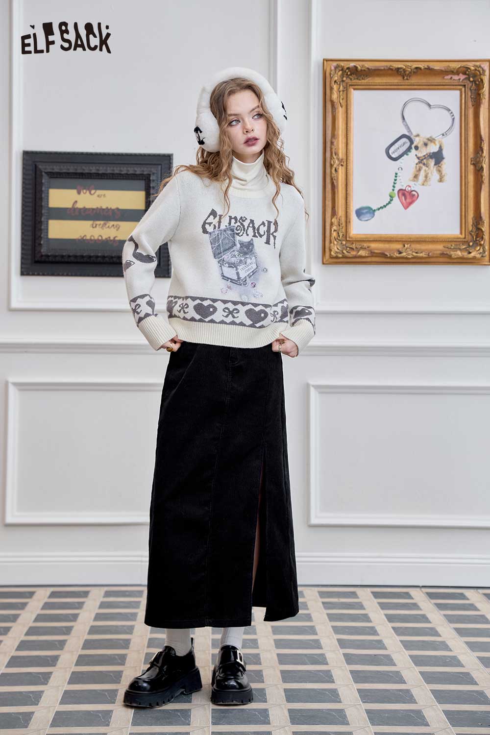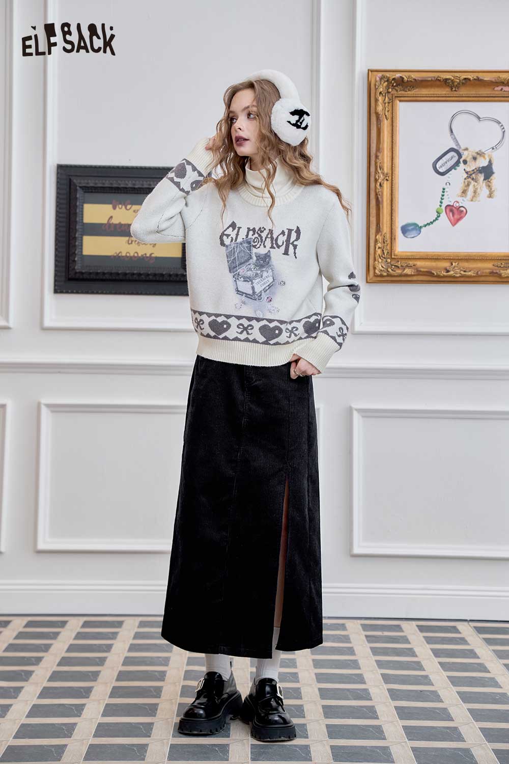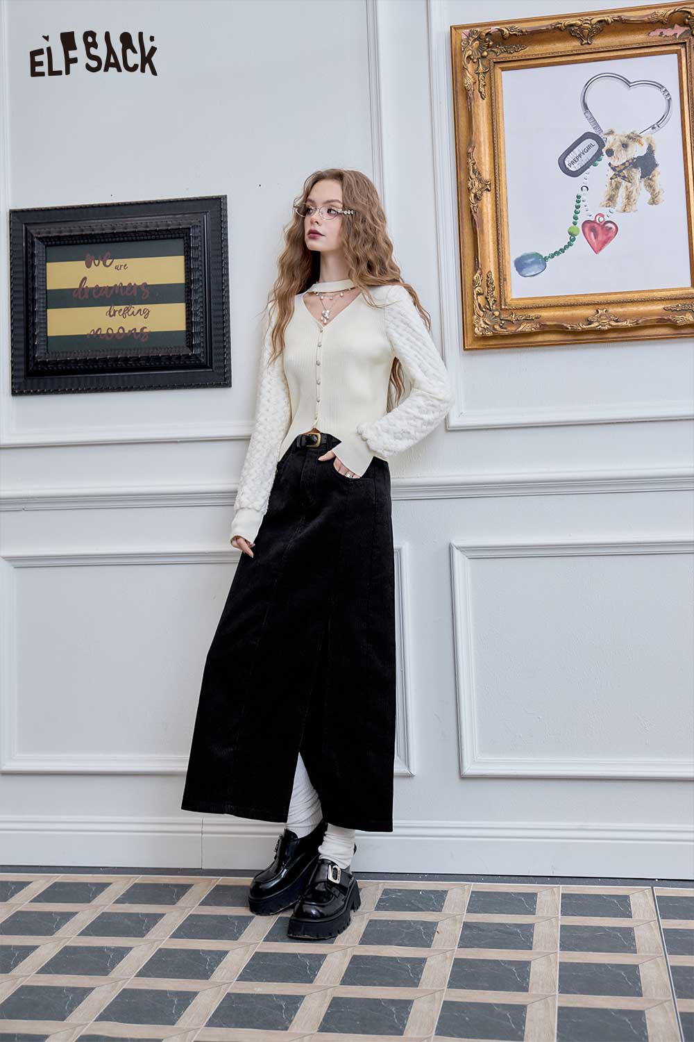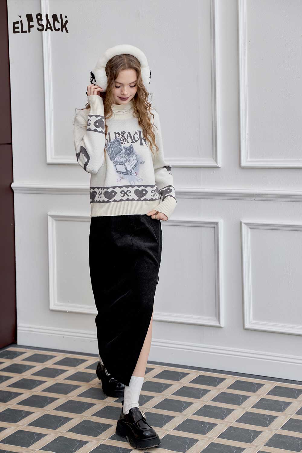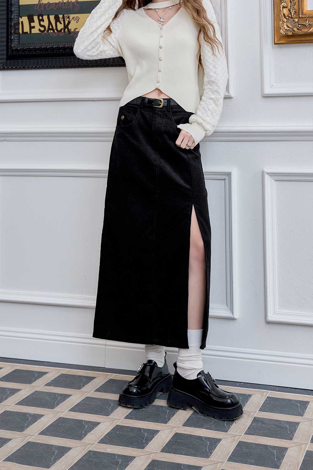 Light Design Corduroy Side Slit Versatile Mid Length Skirt