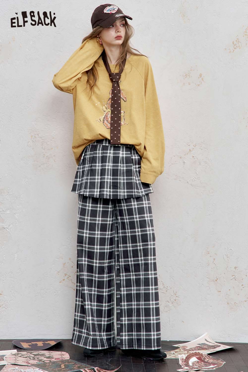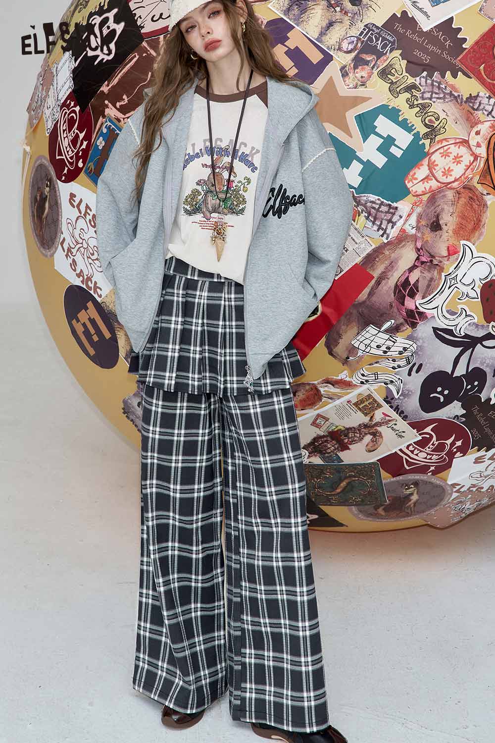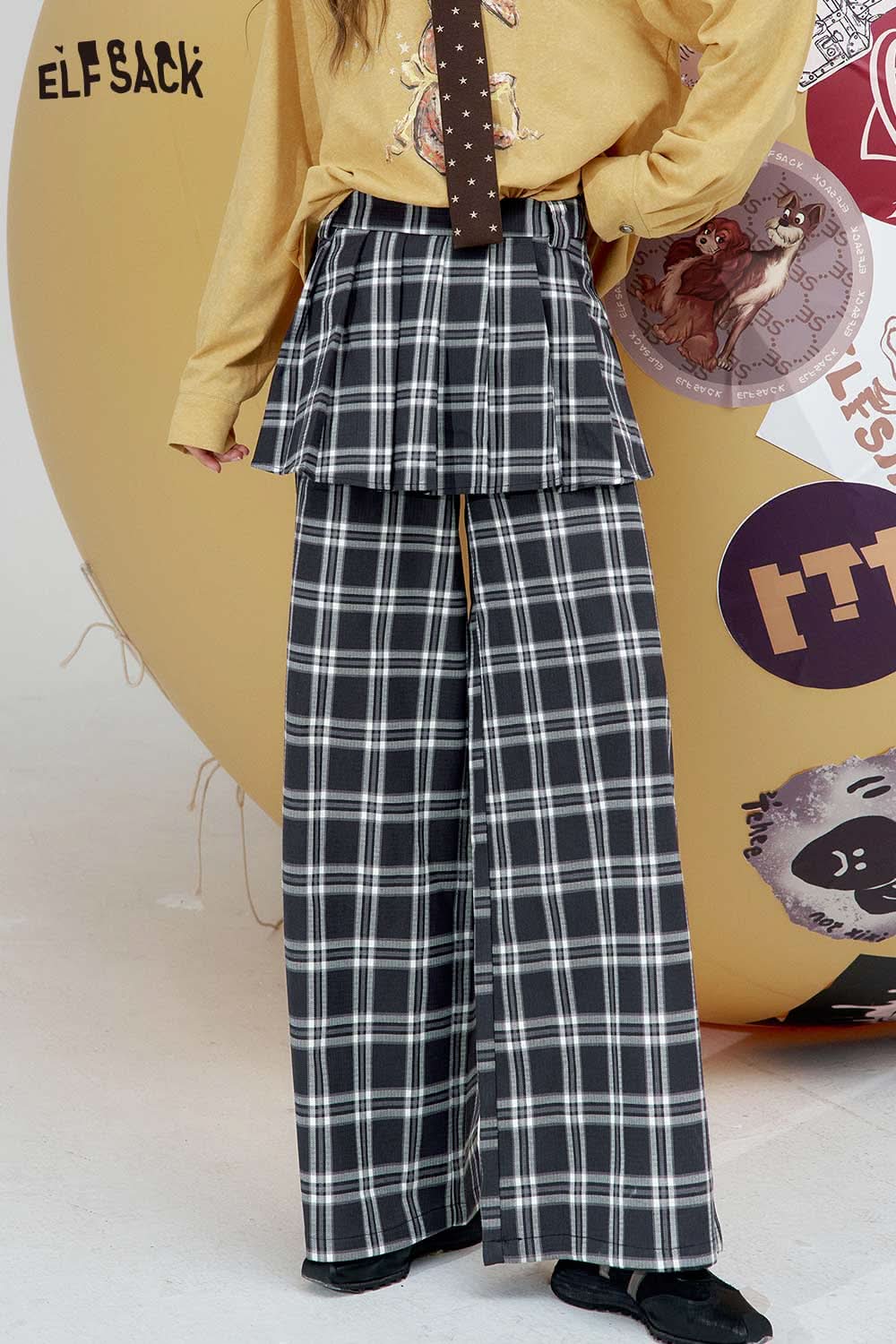 Linen Blend Wide Leg Drop Croth False Layered Trousers