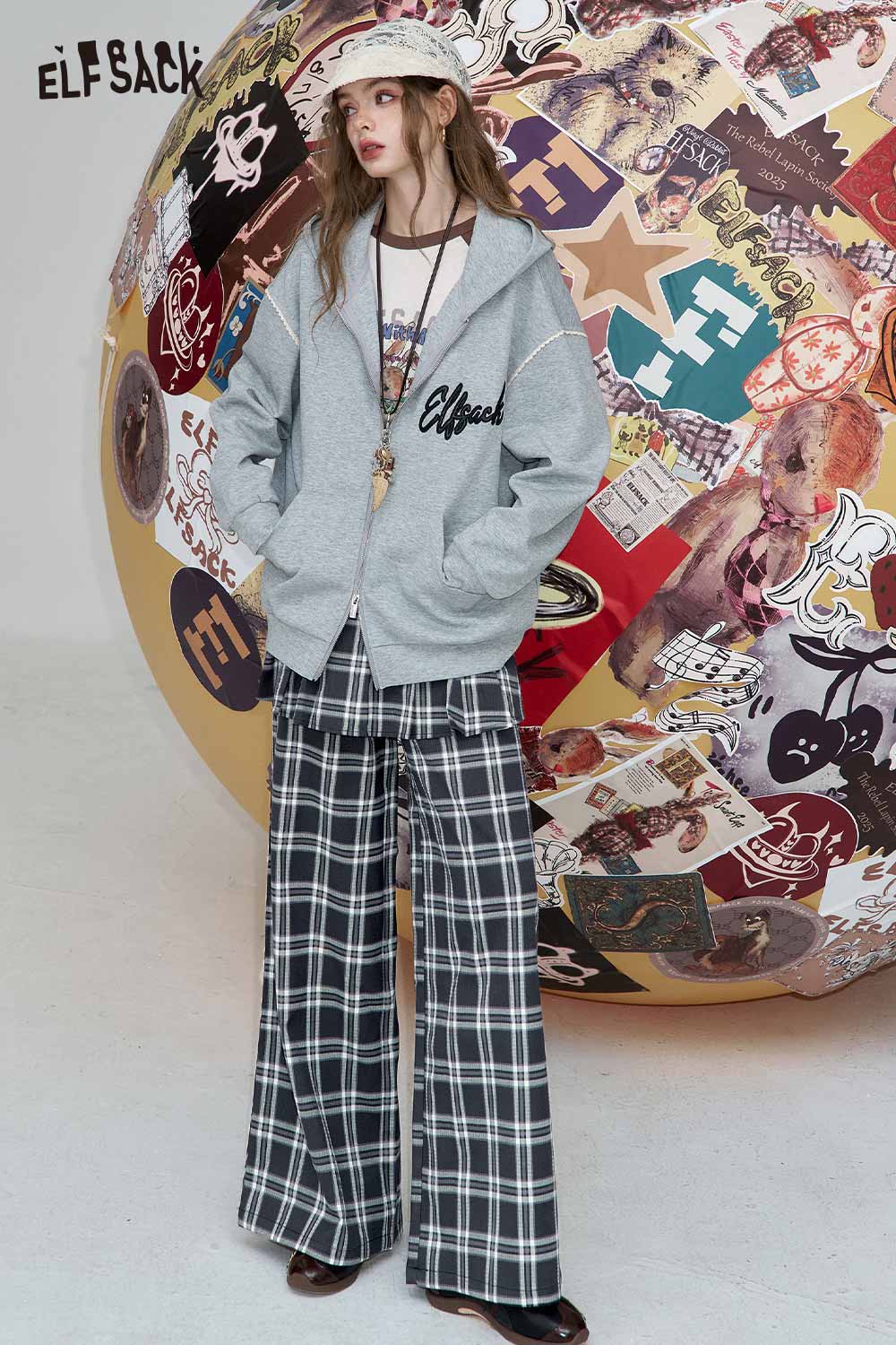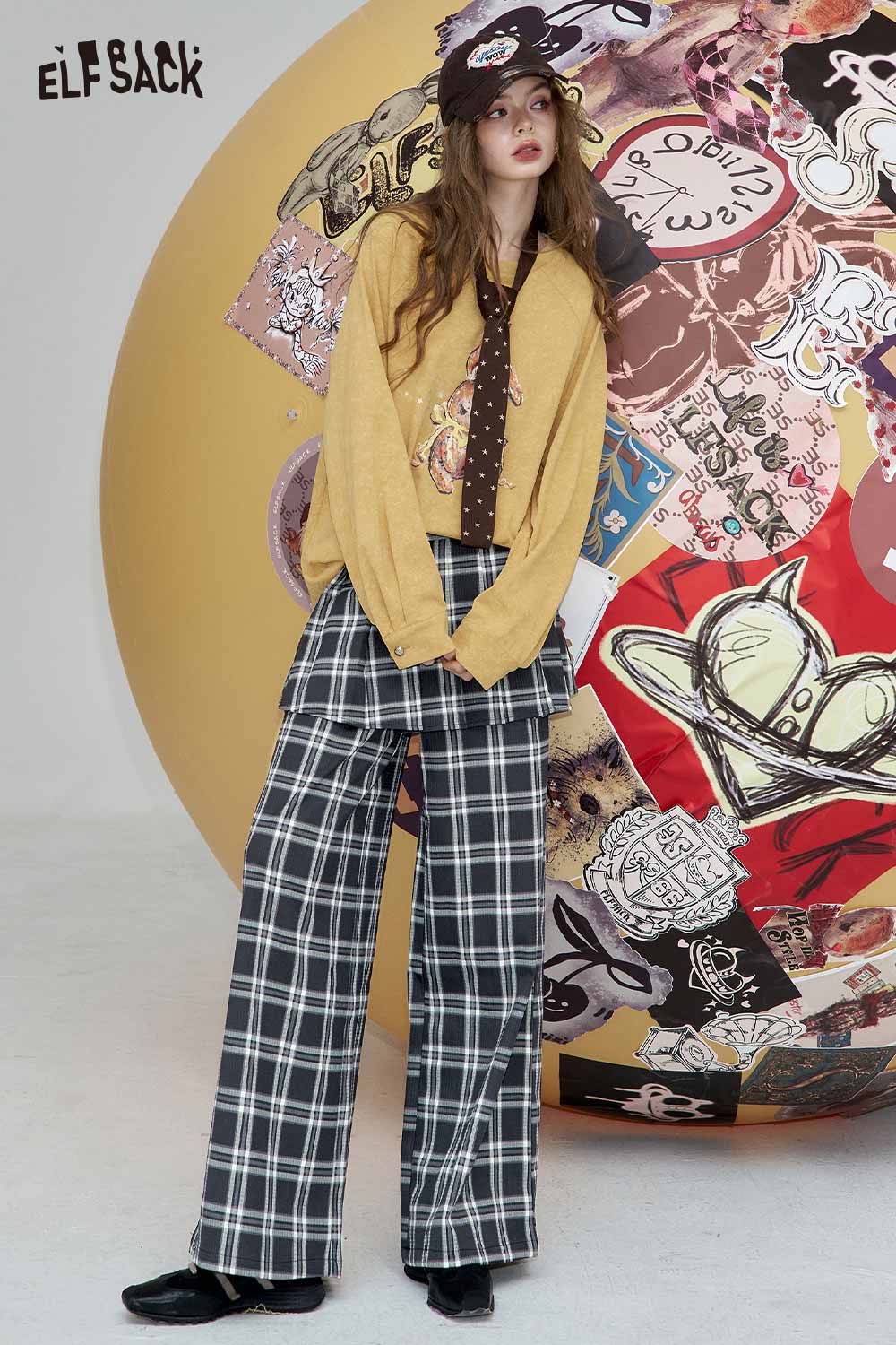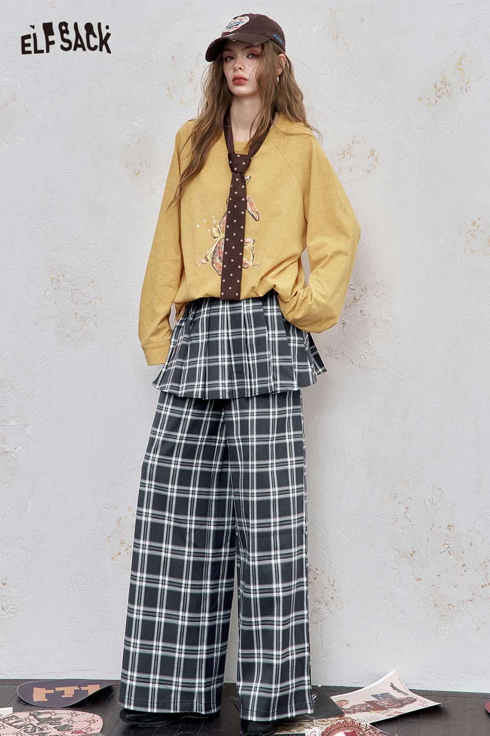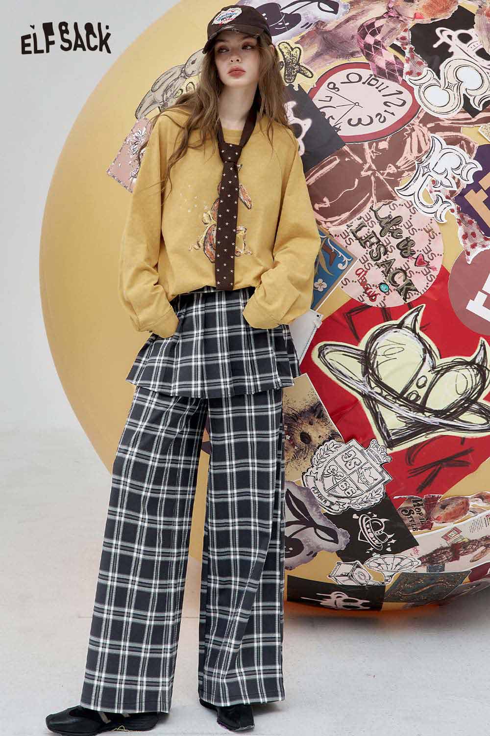 Linen Blend Wide Leg Drop Croth False Layered Trousers