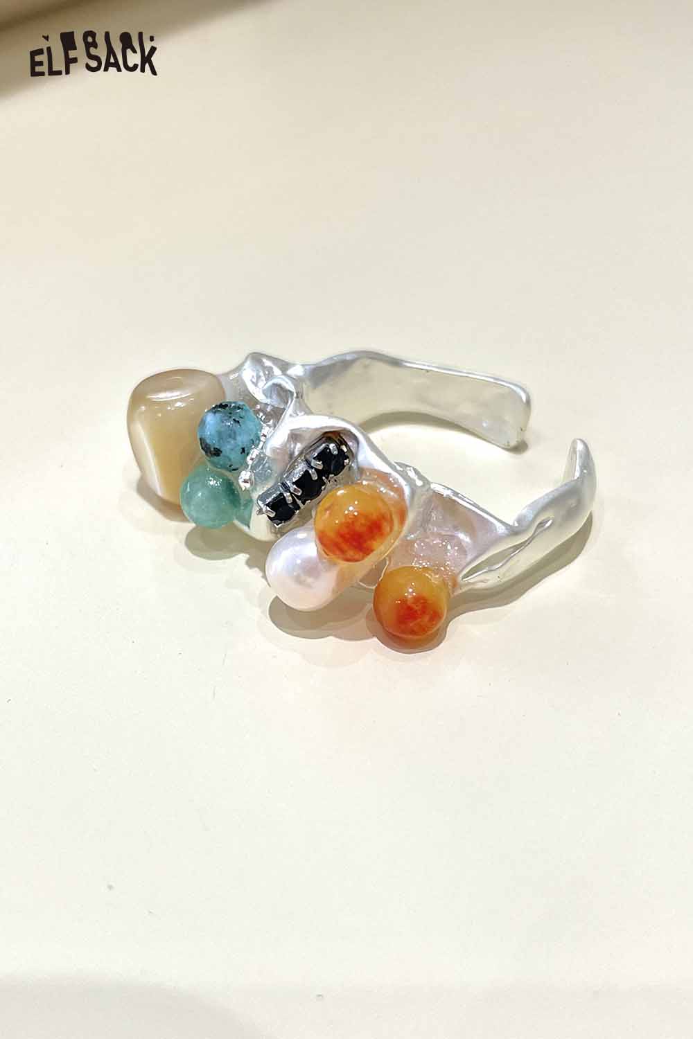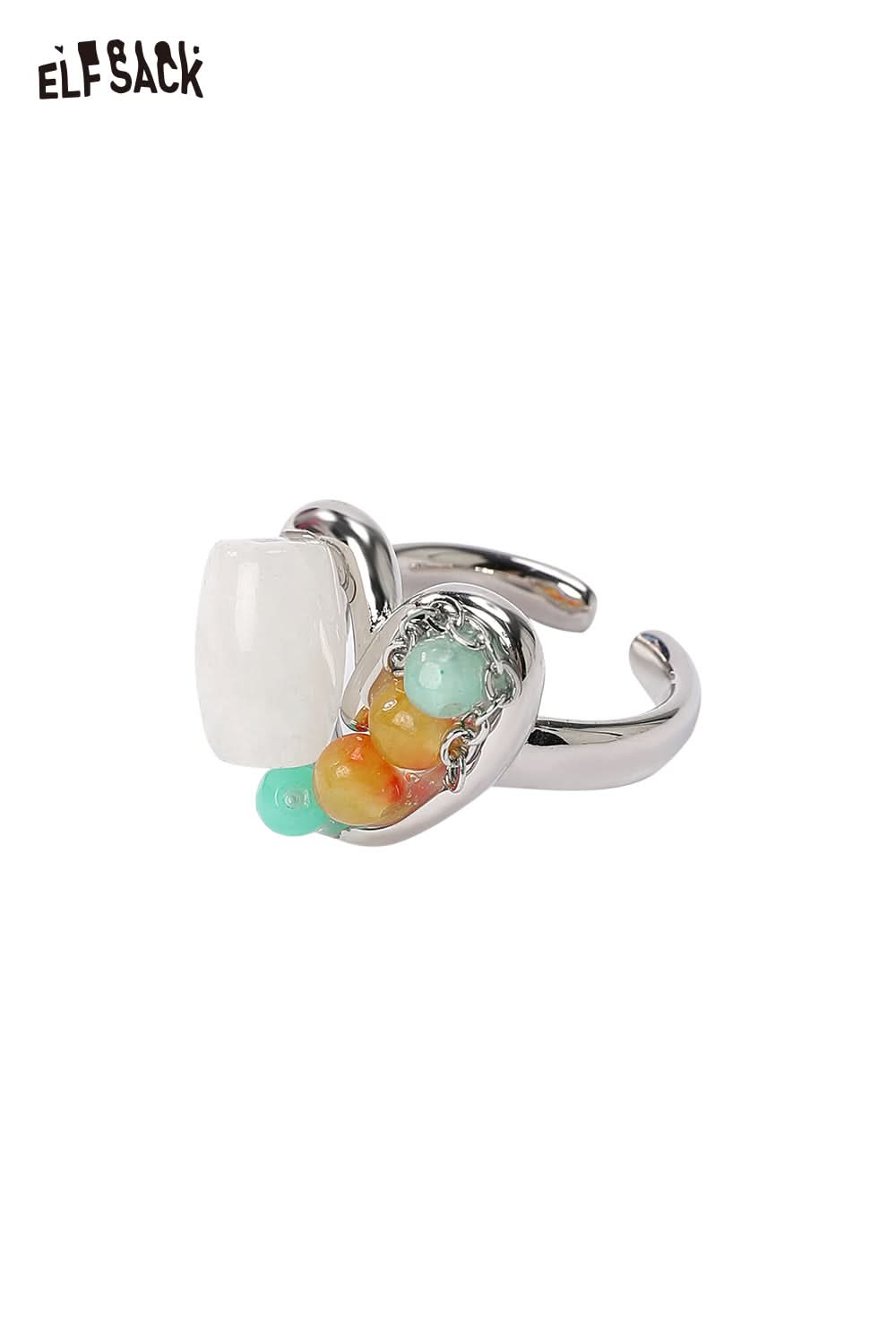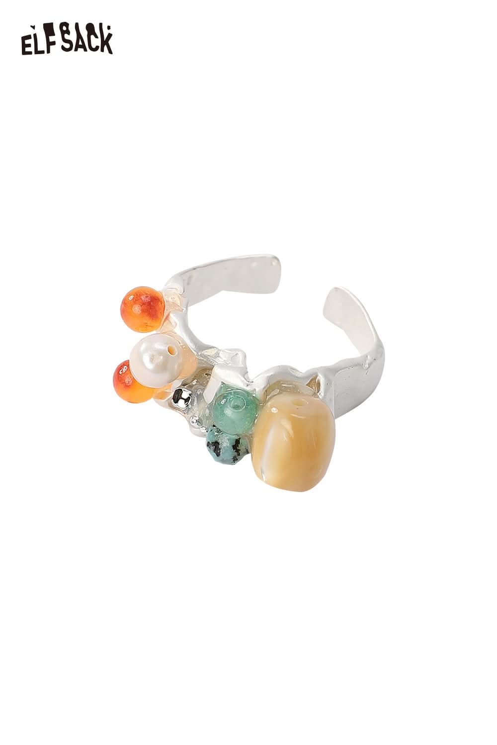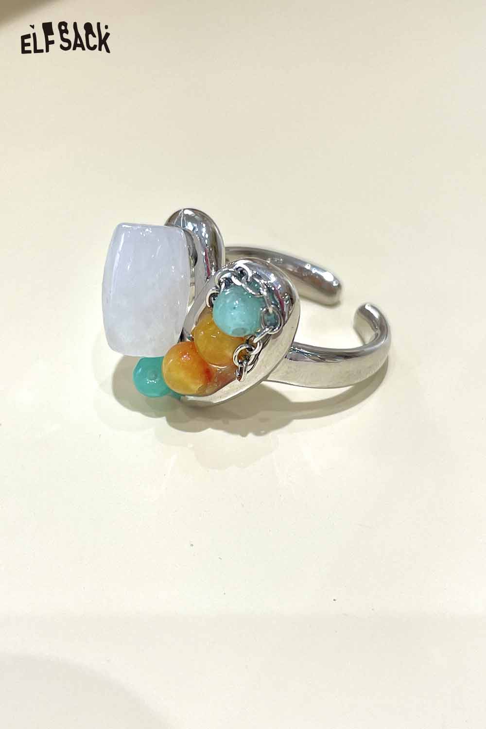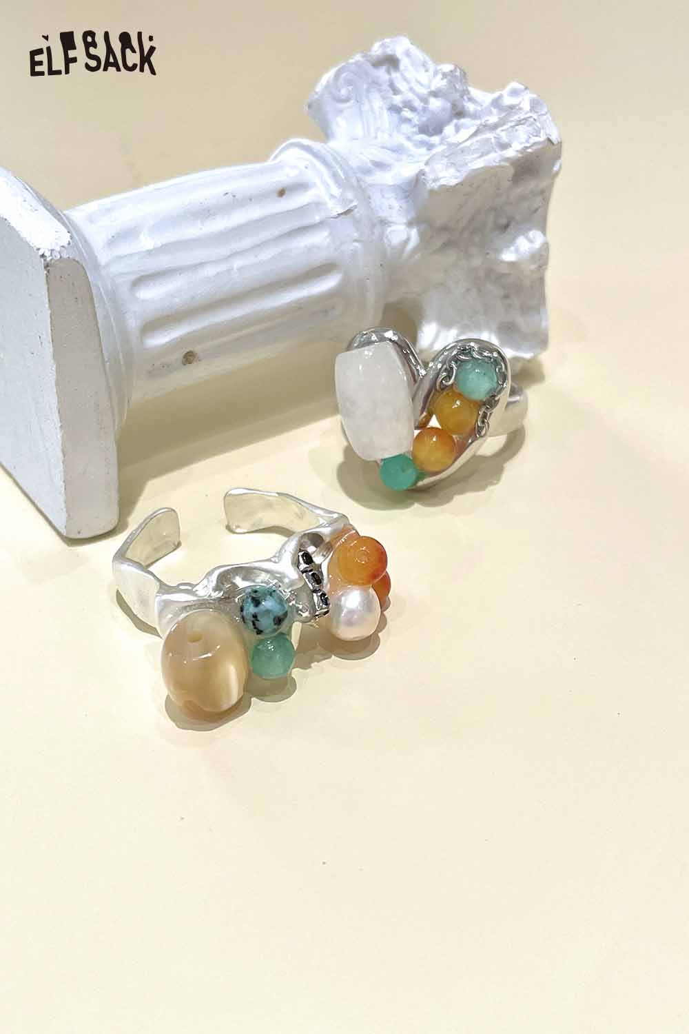 Silver Colored Stone Inlaid Irregular Heart-Shaped Playful Adjustable Open Ring