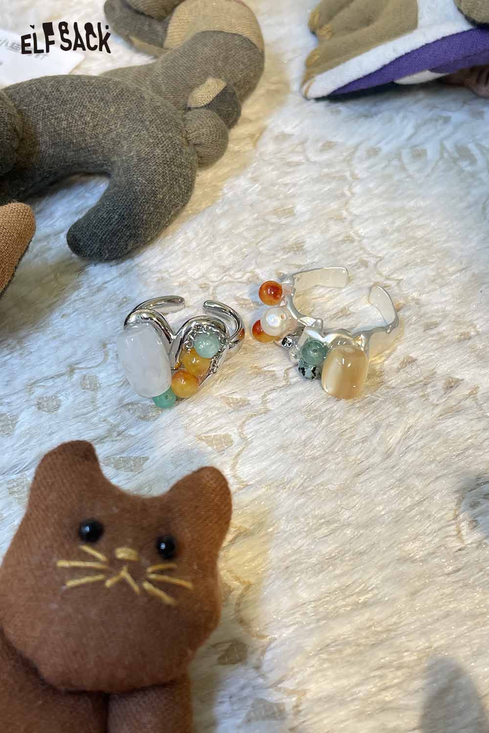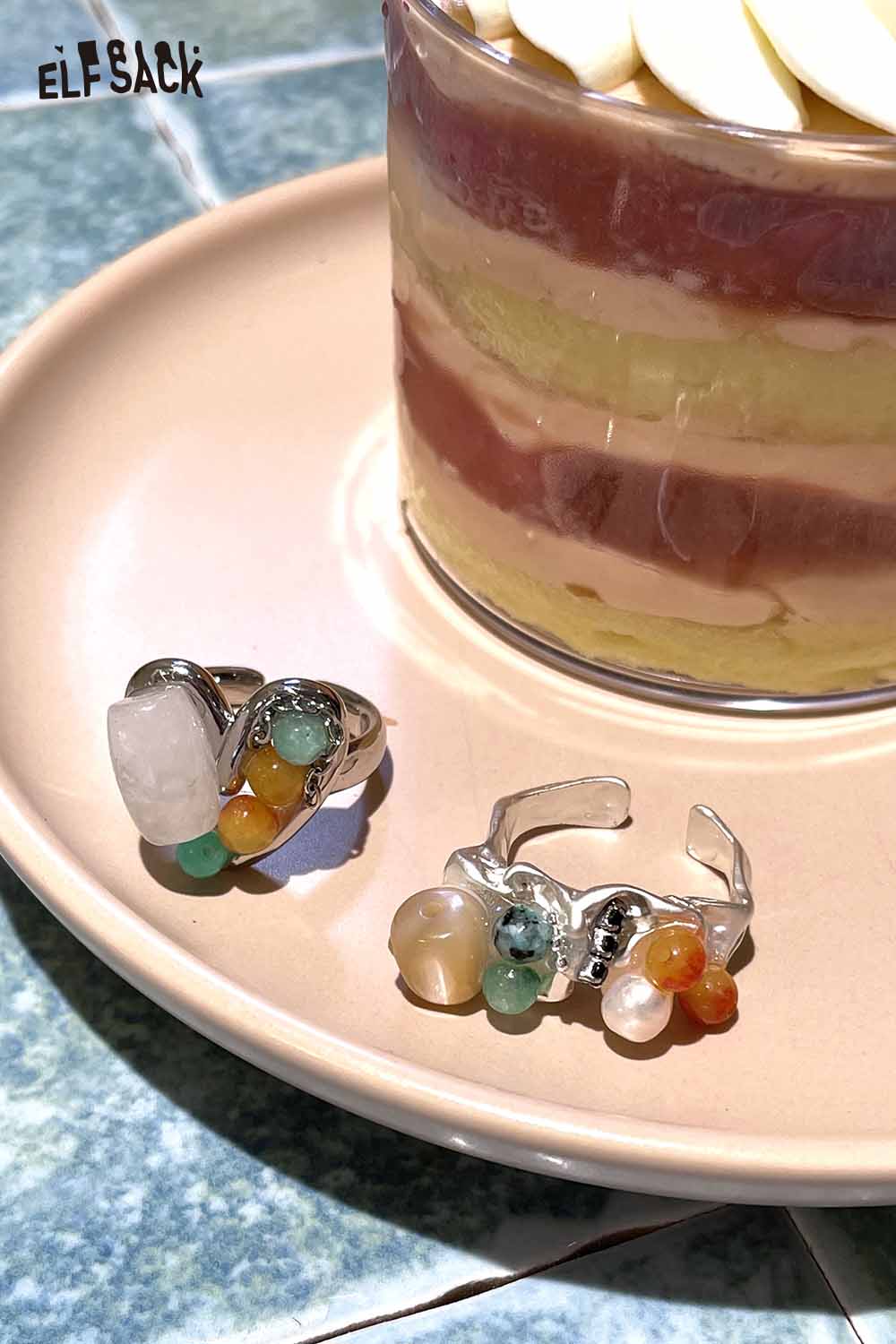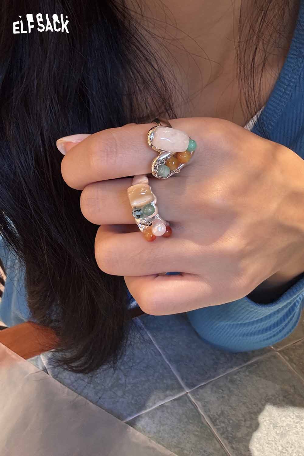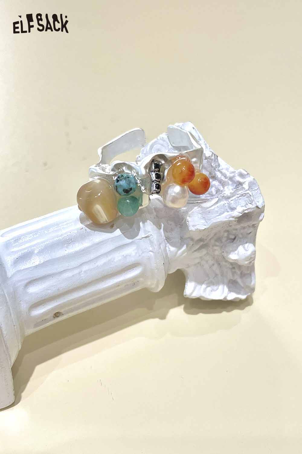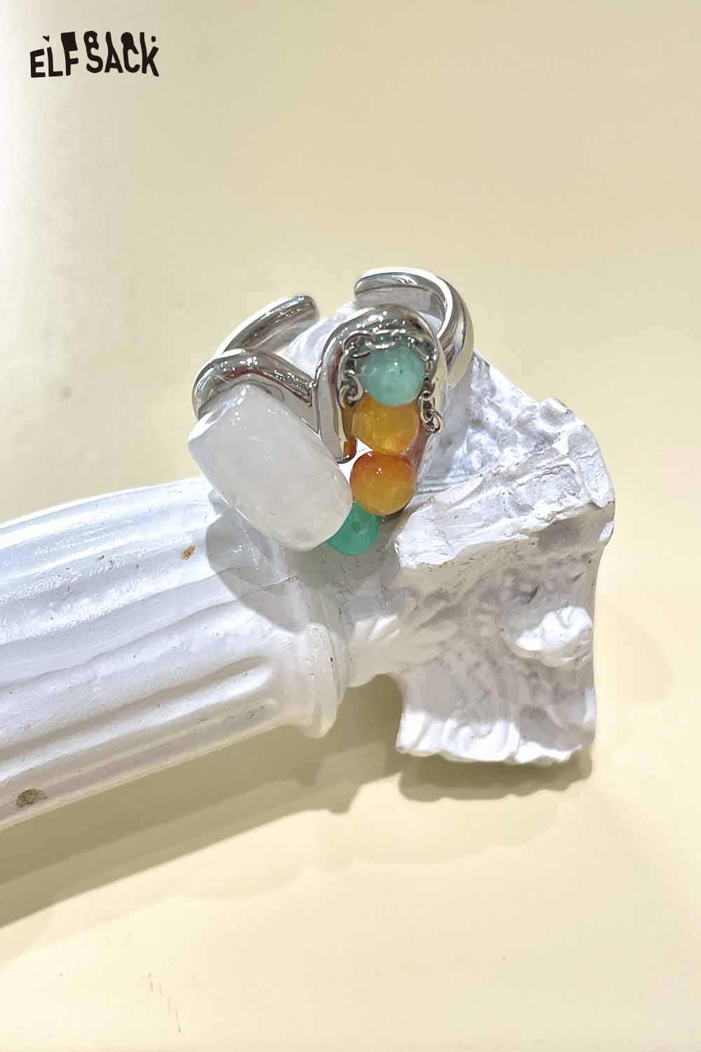 Silver Colored Stone Inlaid Irregular Heart-Shaped Playful Adjustable Open Ring