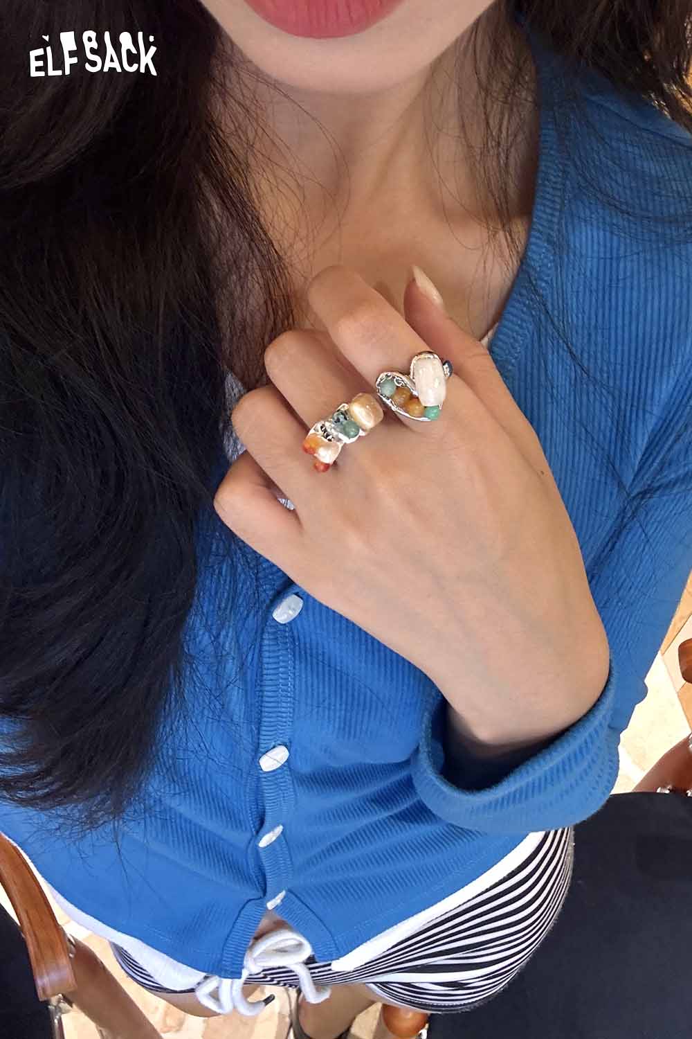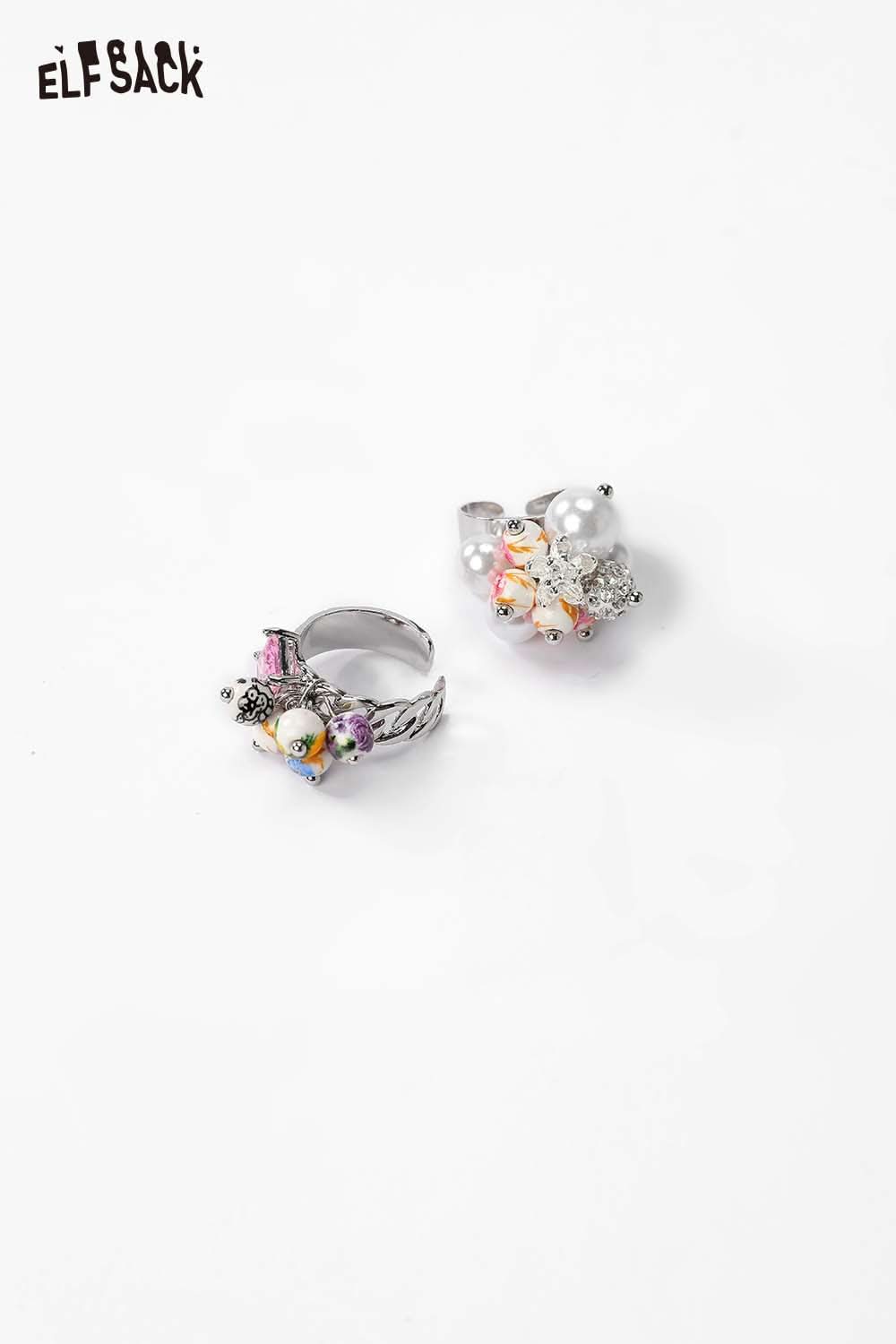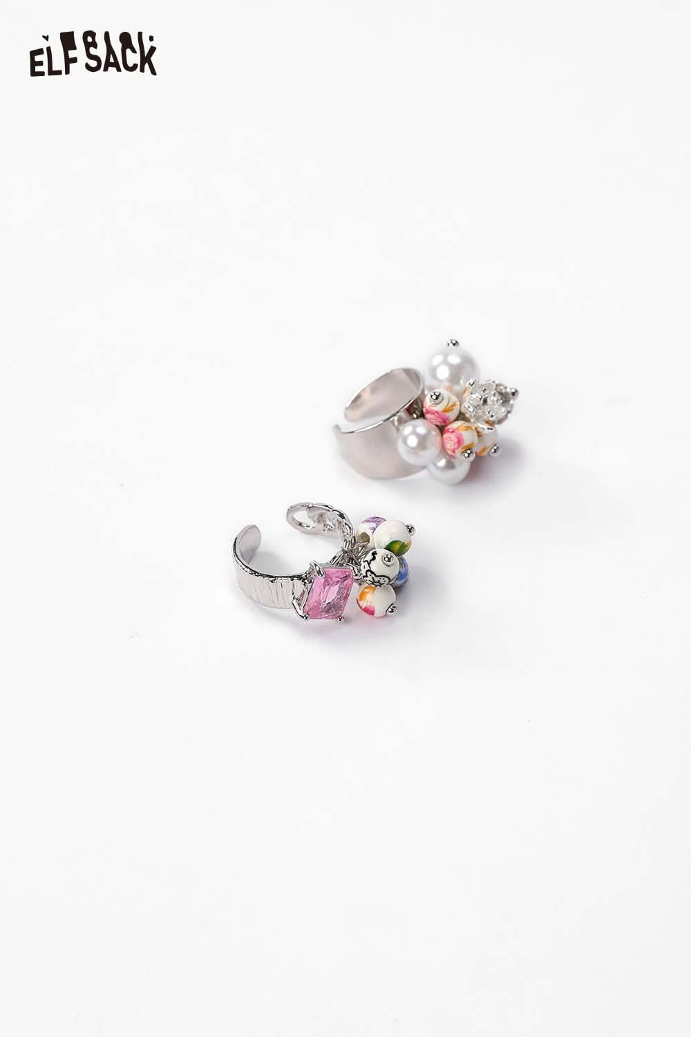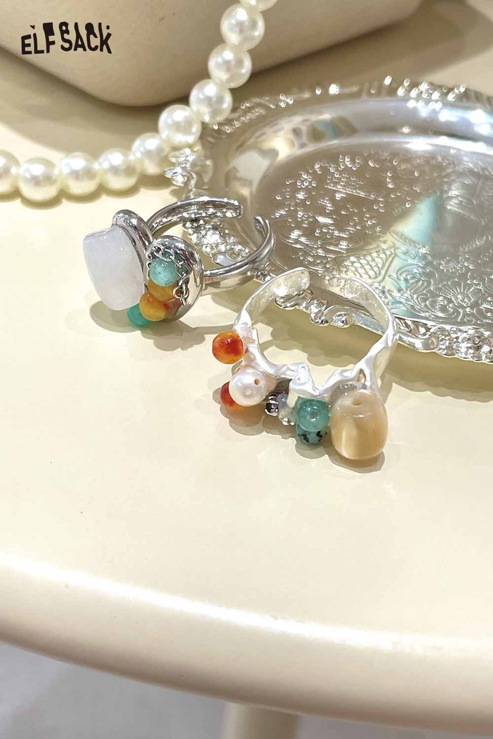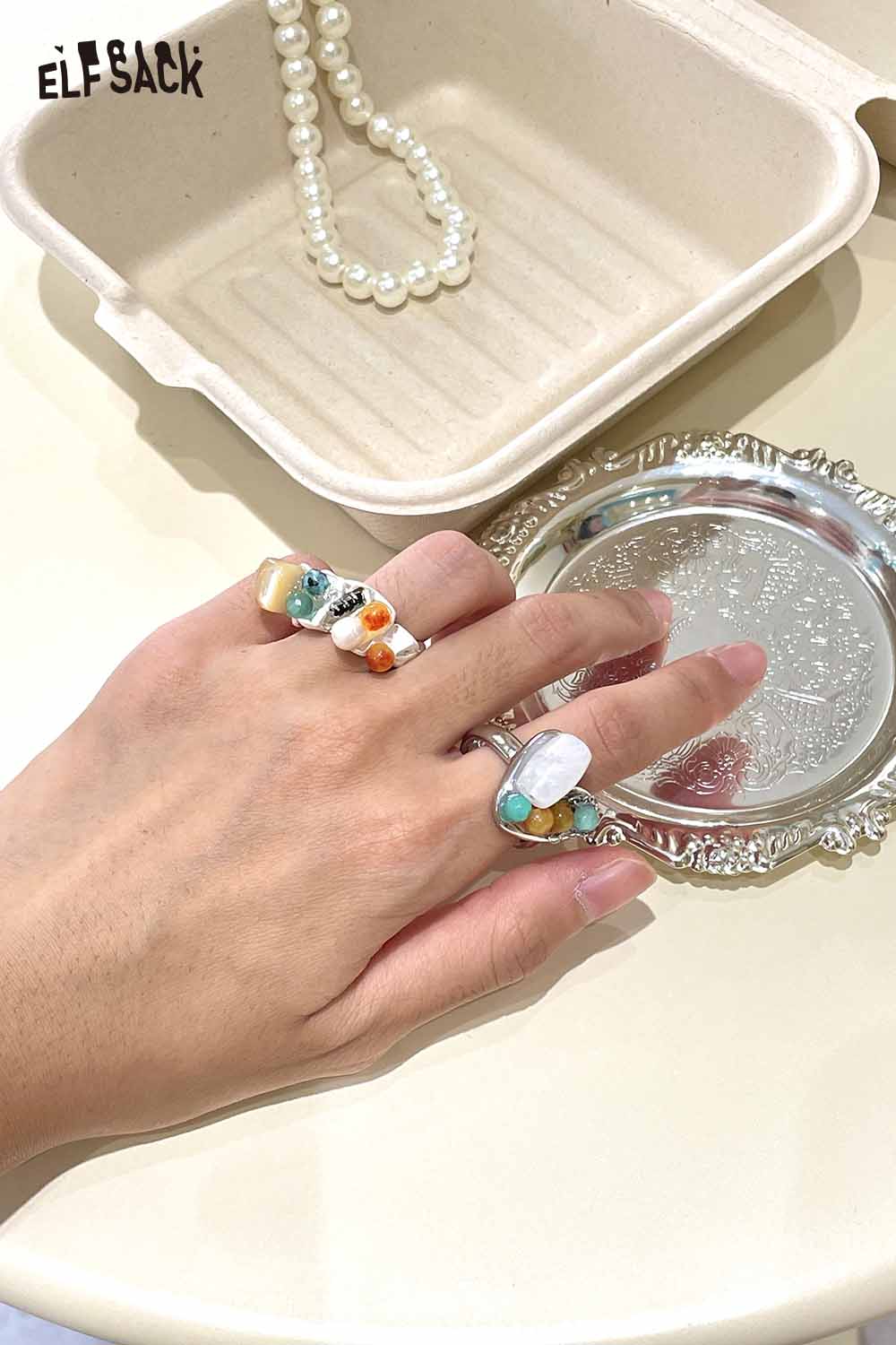 Silver Colored Stone Inlaid Irregular Heart-Shaped Playful Adjustable Open Ring