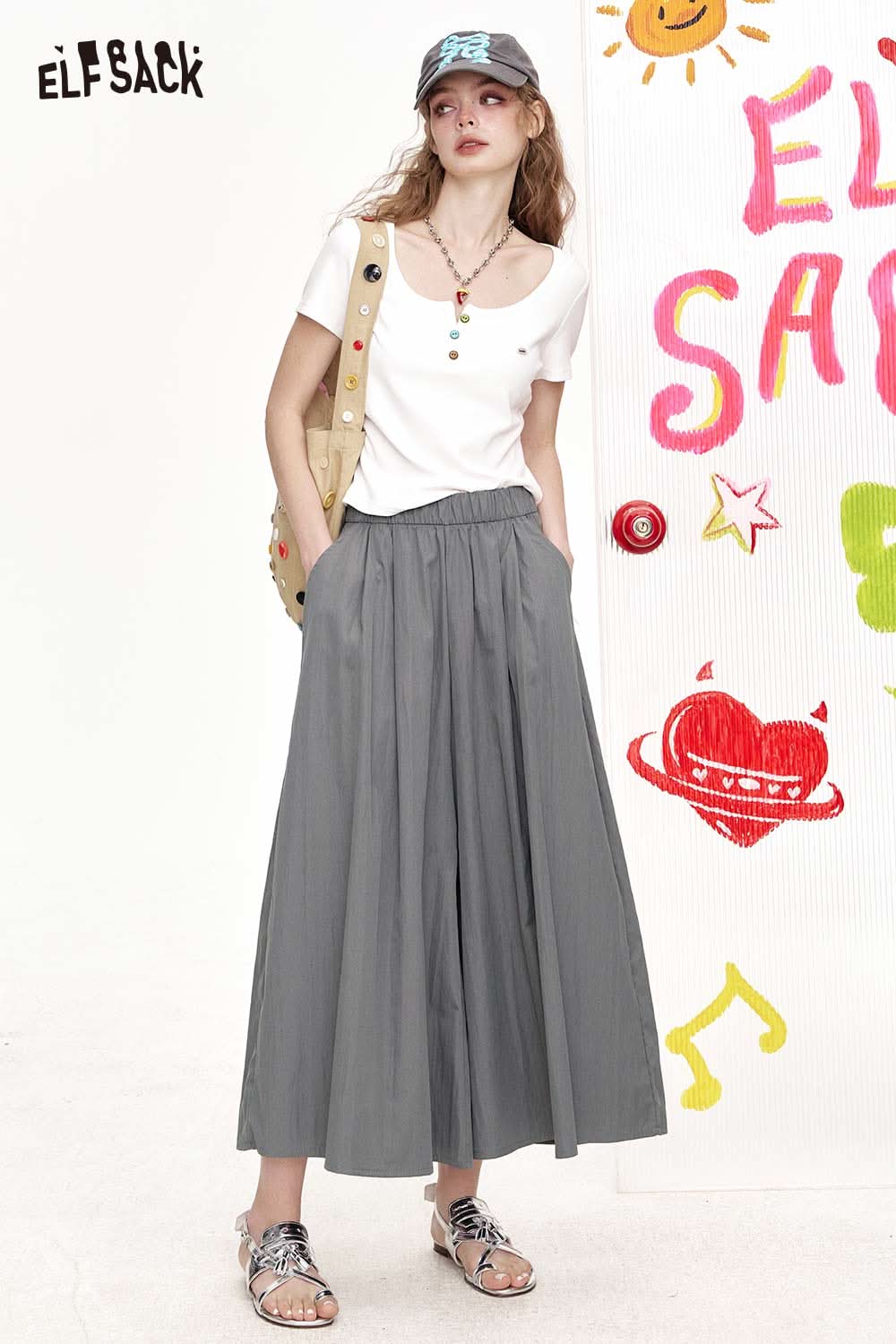 Bow Print High-Waist Slit Black Mid-Length Skirt