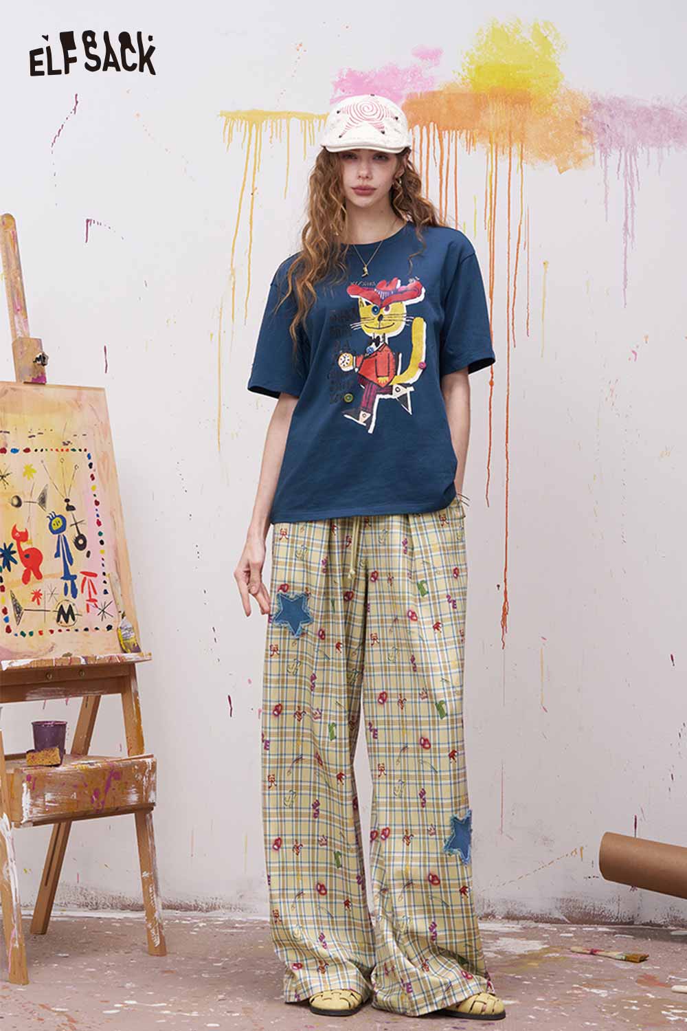 Cute Graphic Short Sleeve T Shirt with Rabbit Patch