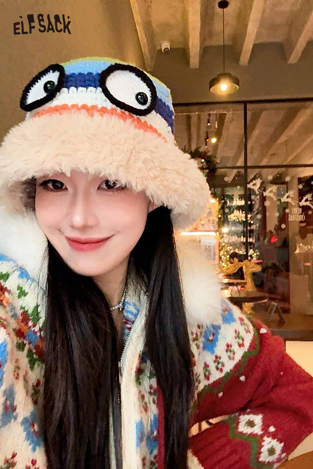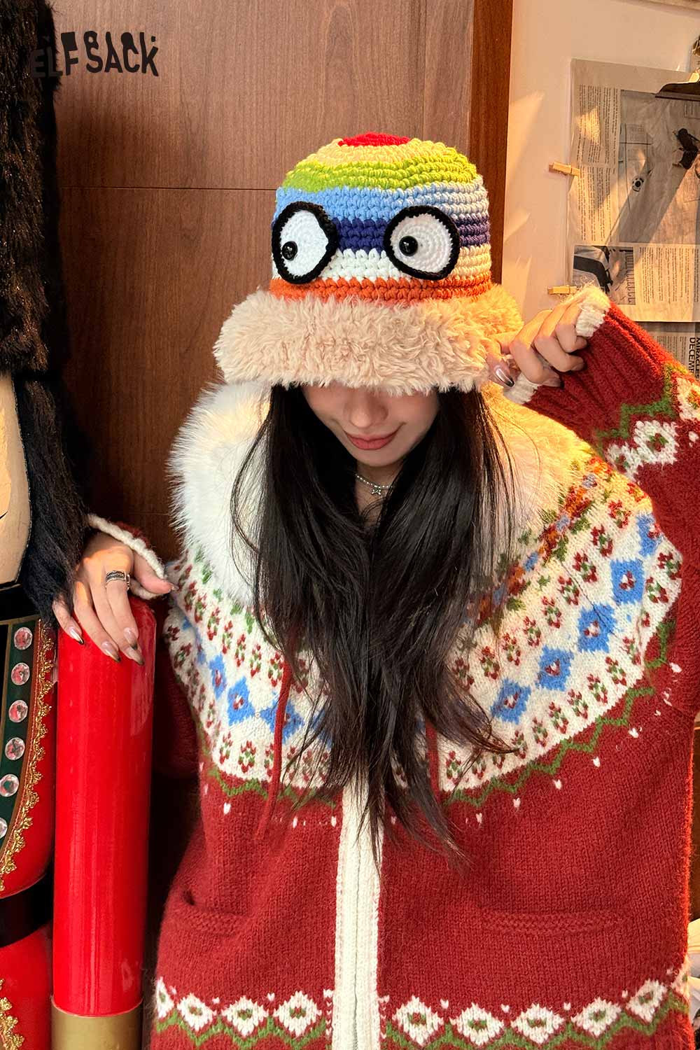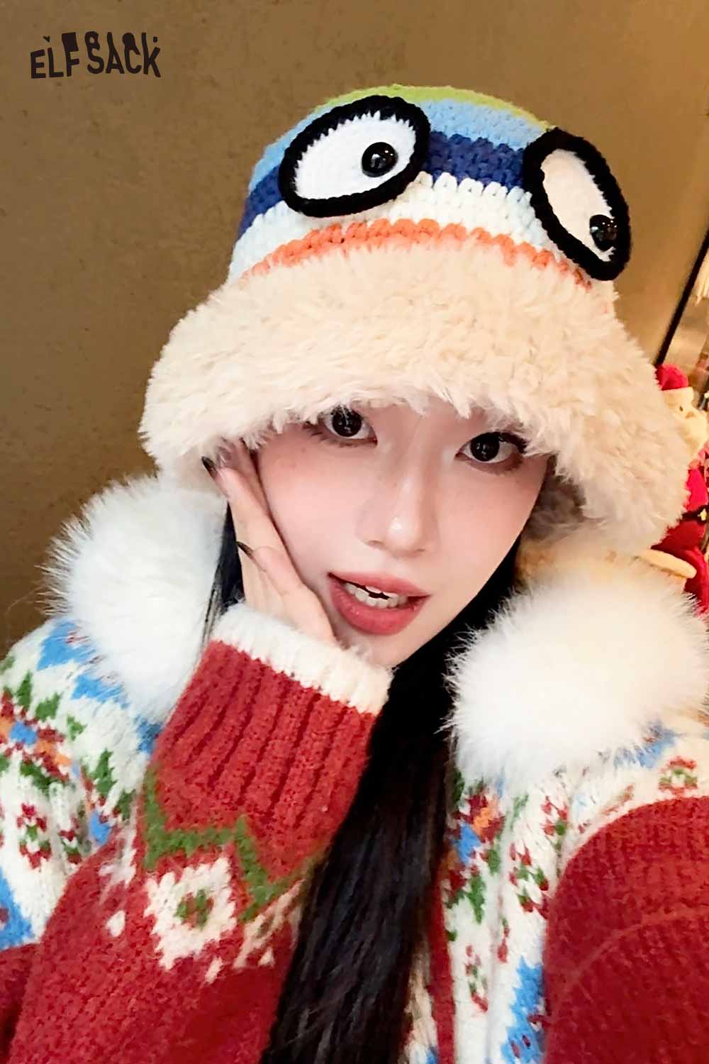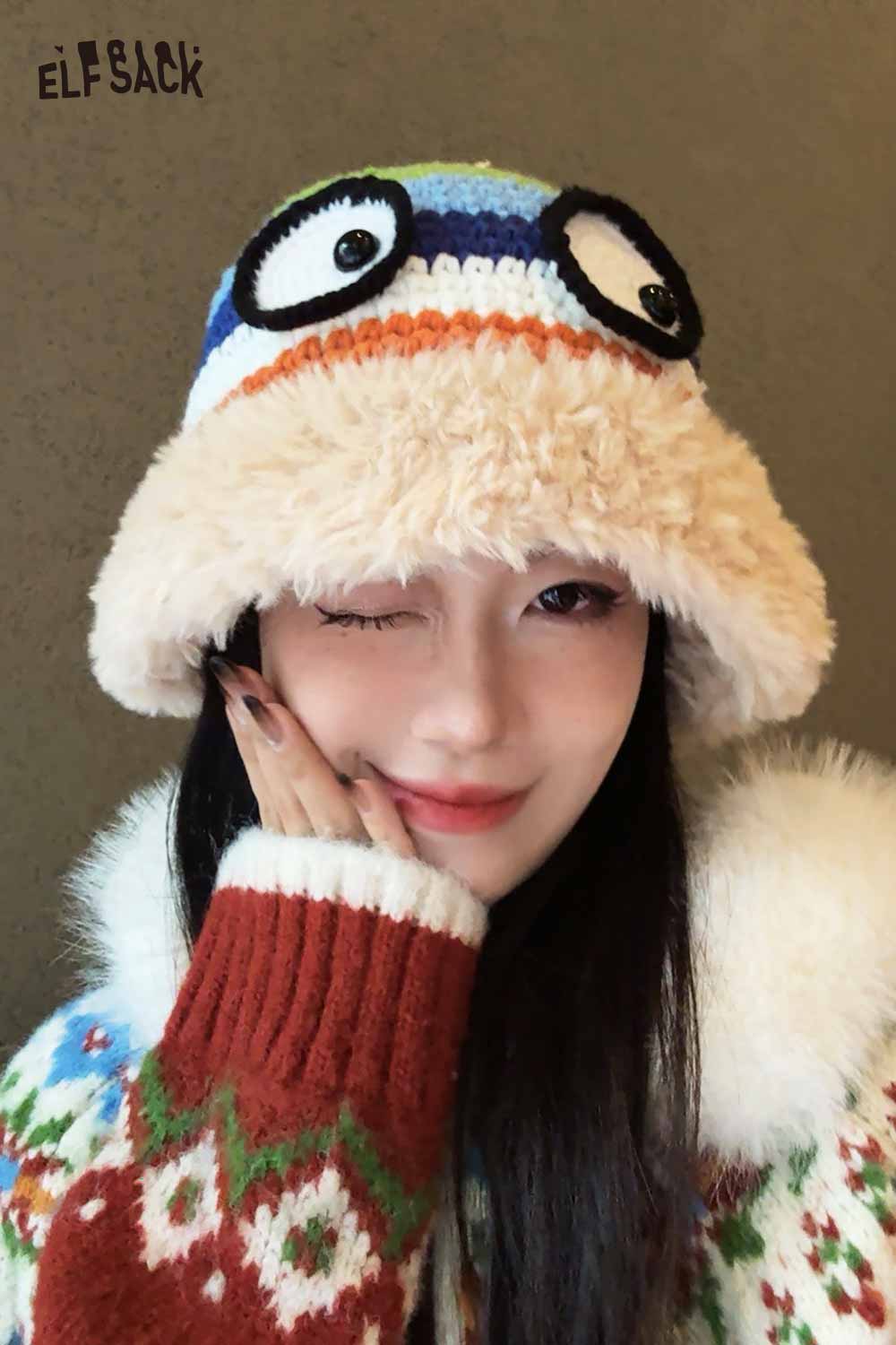かわいいレインボーストライプのかぎ針編みのアイプラッシュブリムハット
