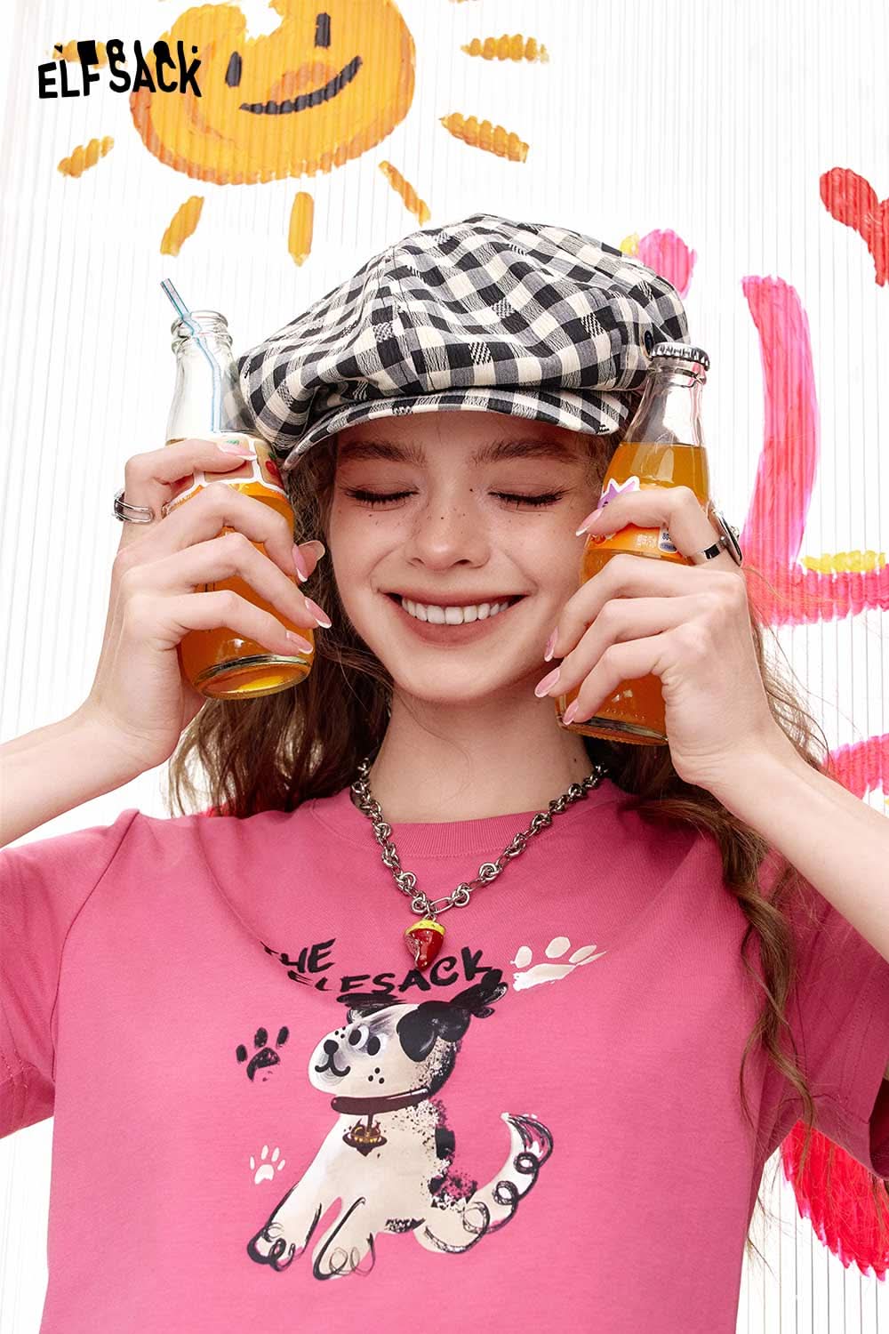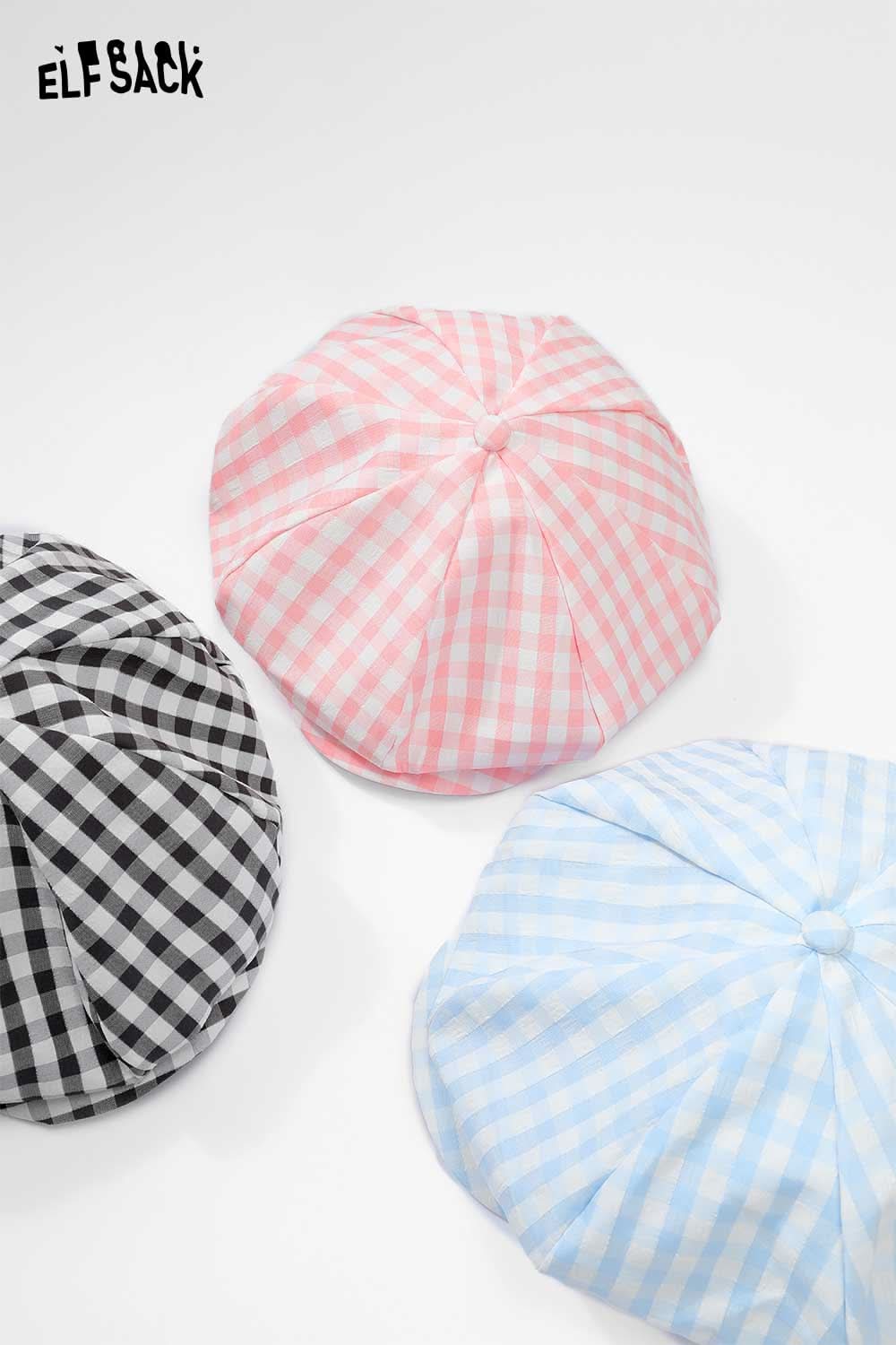フレッシュなチェック柄ベレー帽 初秋 顔痩せ 日焼け対策 文芸