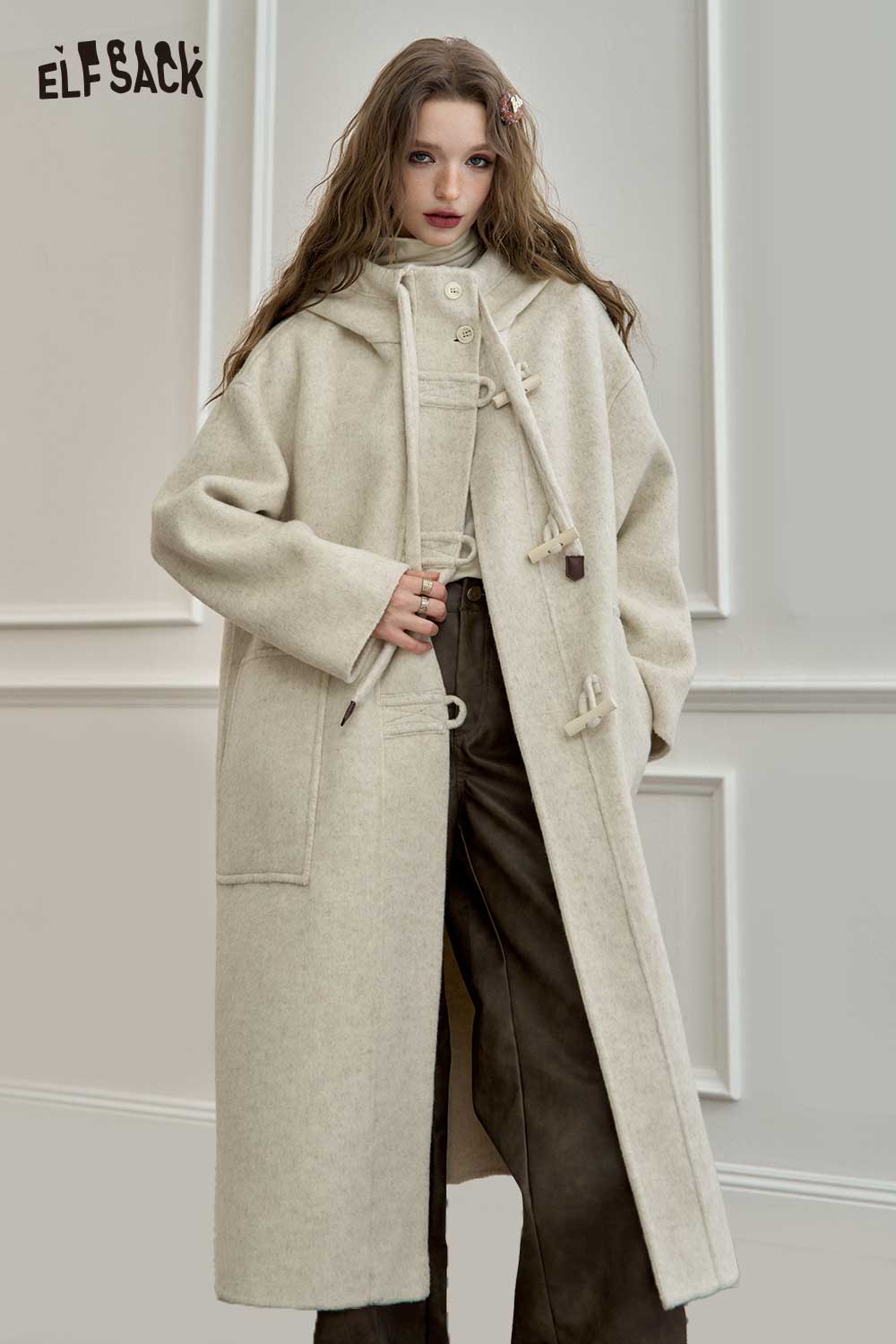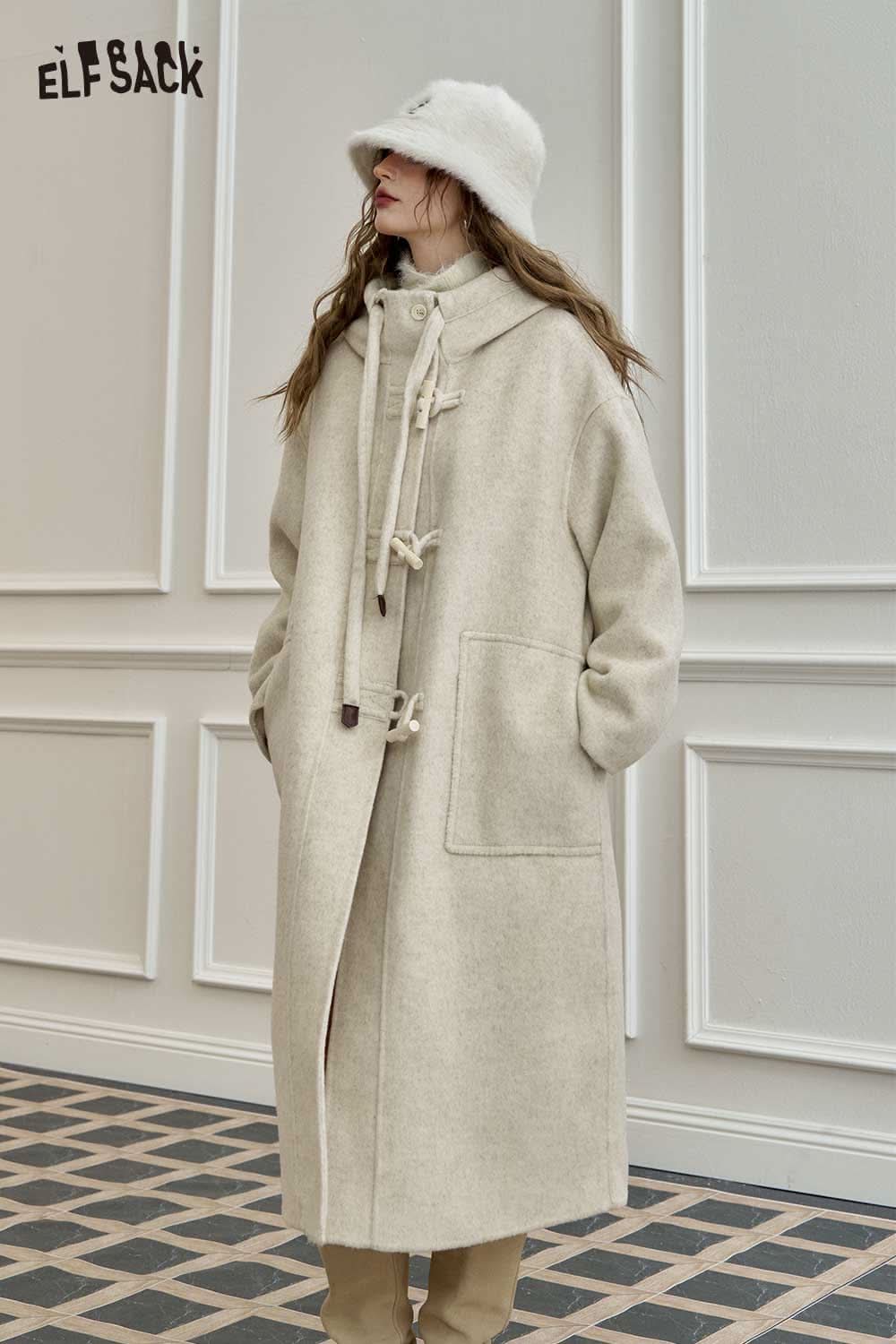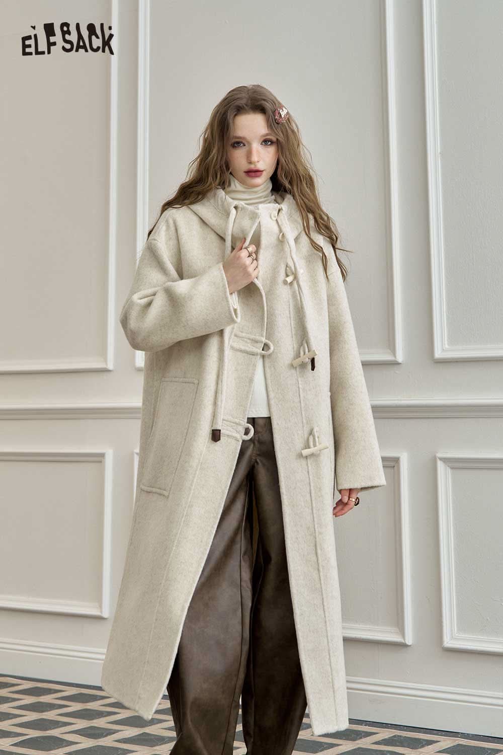 Soft Toggle Button Hooded Long Coat