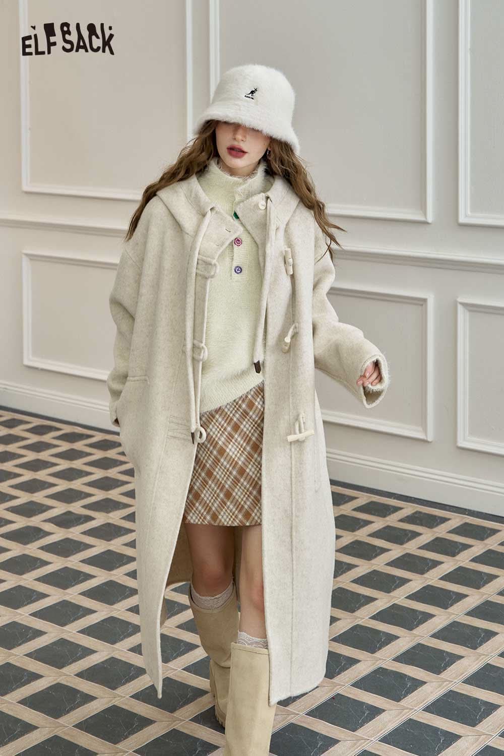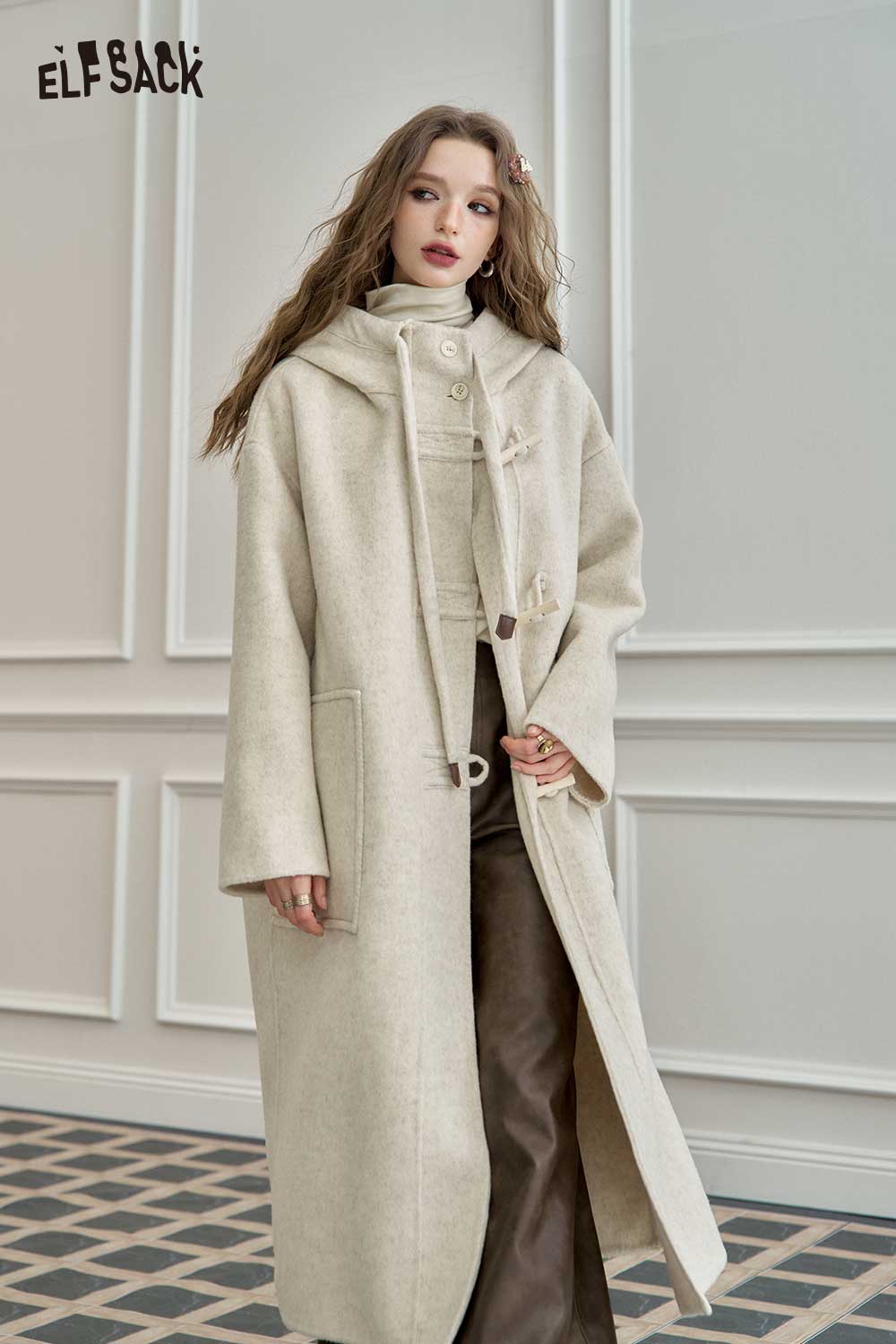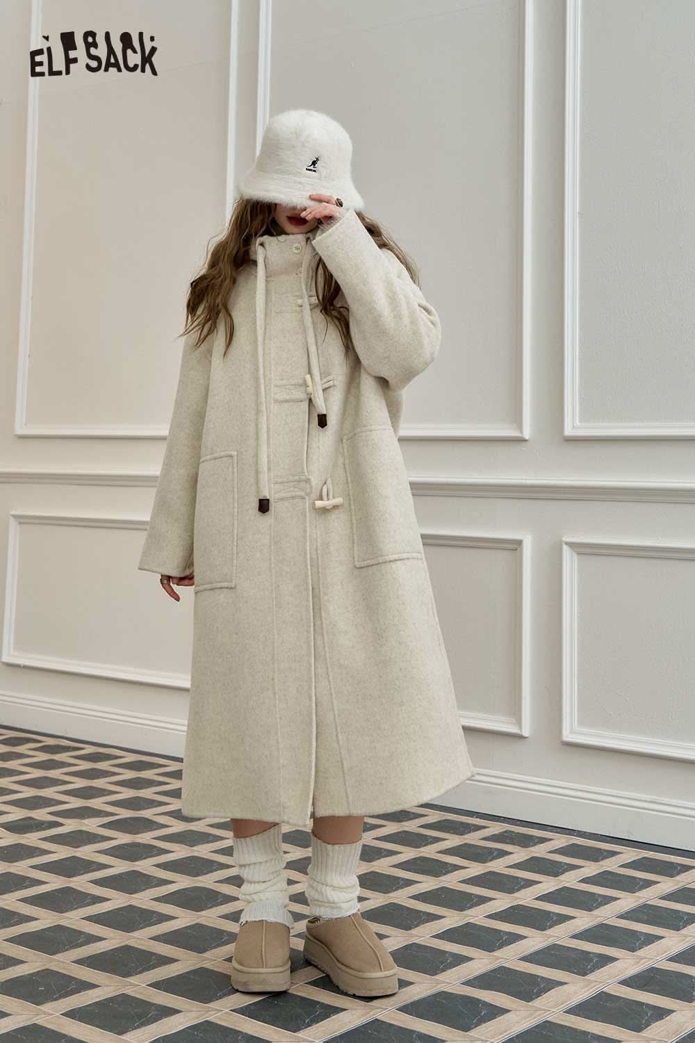 Soft Toggle Button Hooded Long Coat