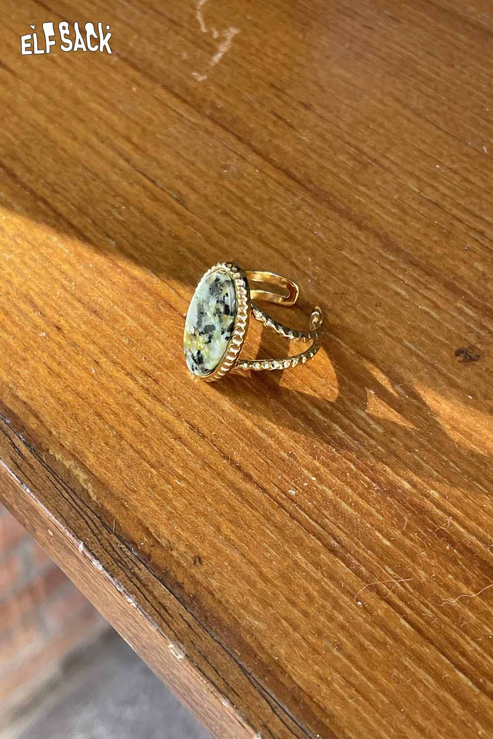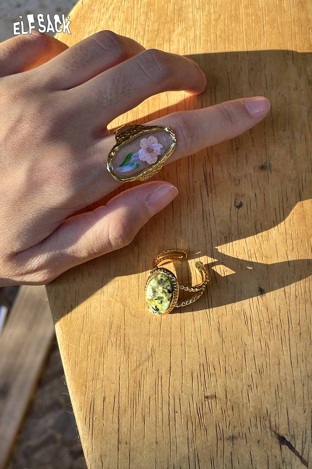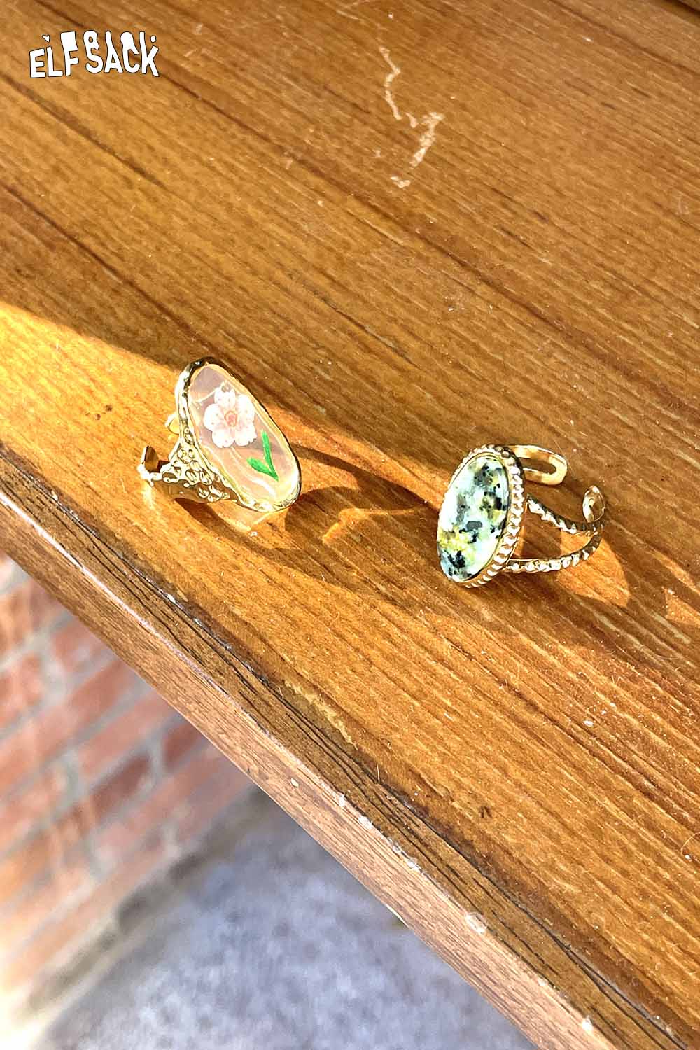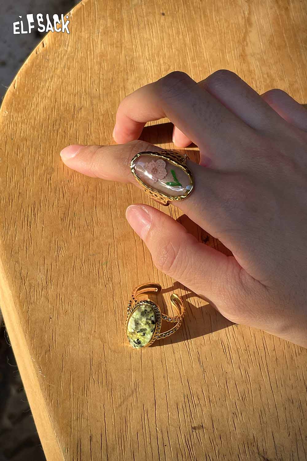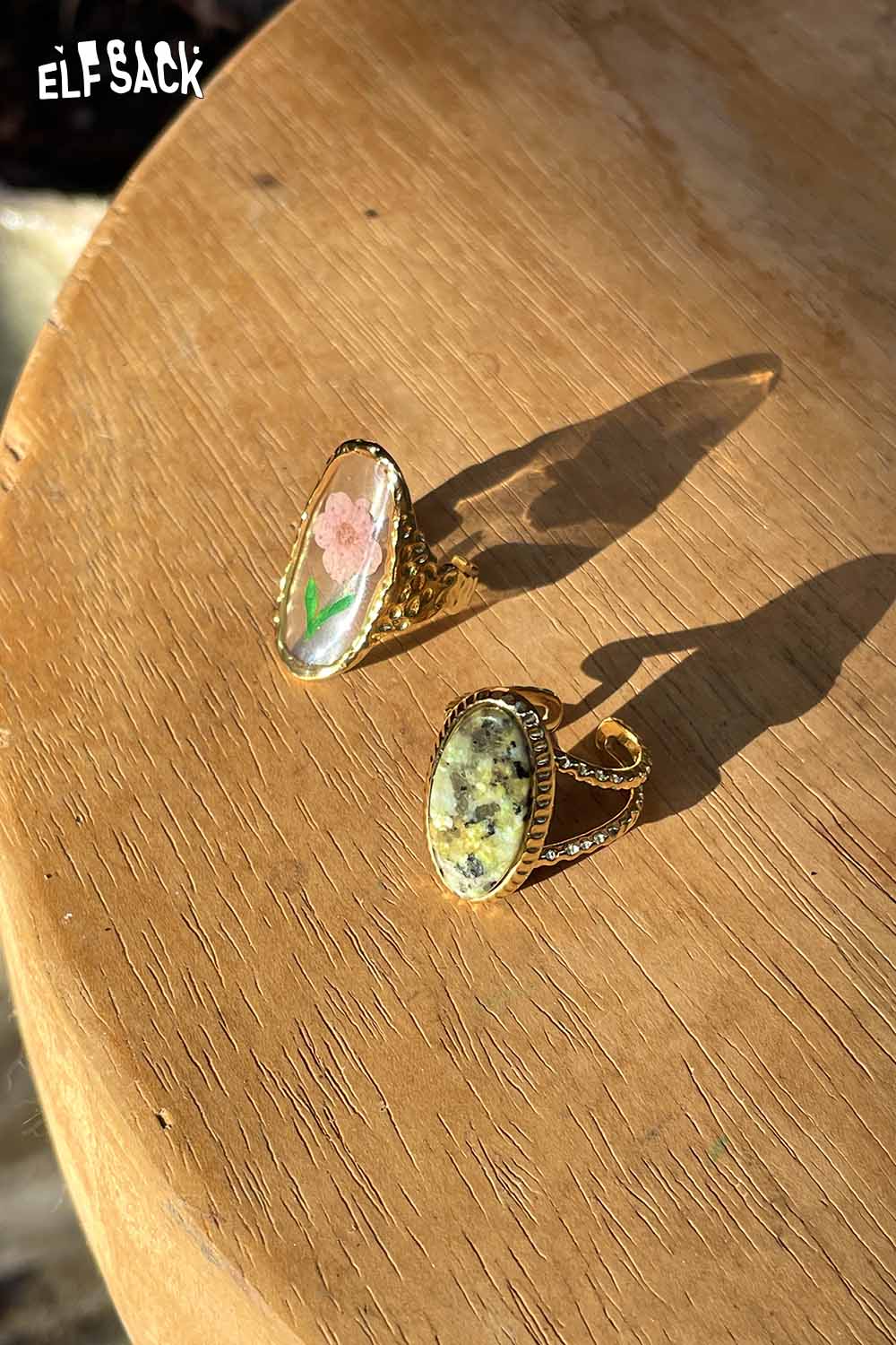 Transparent Epoxy Tulip Print Gold Retro Open Ring