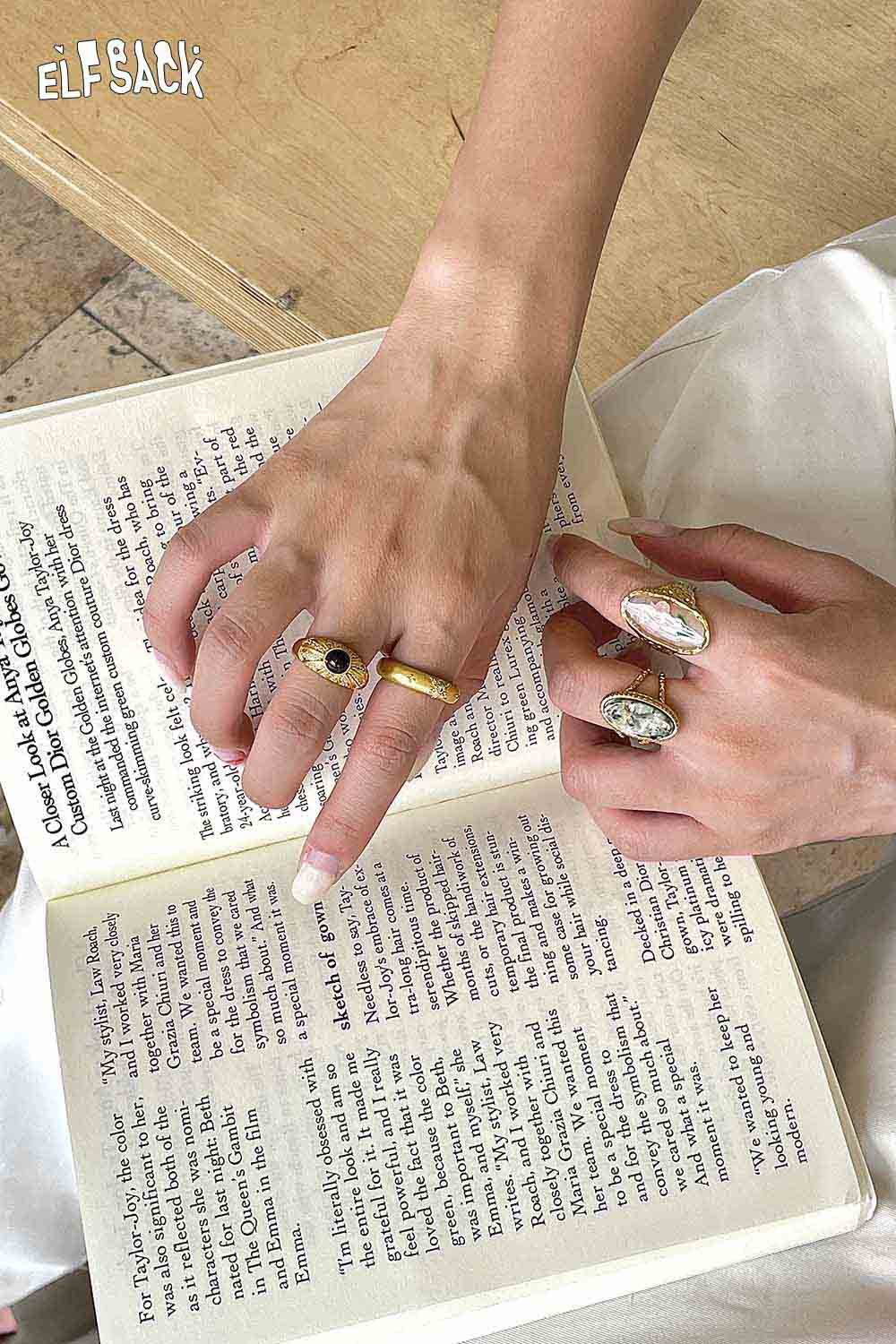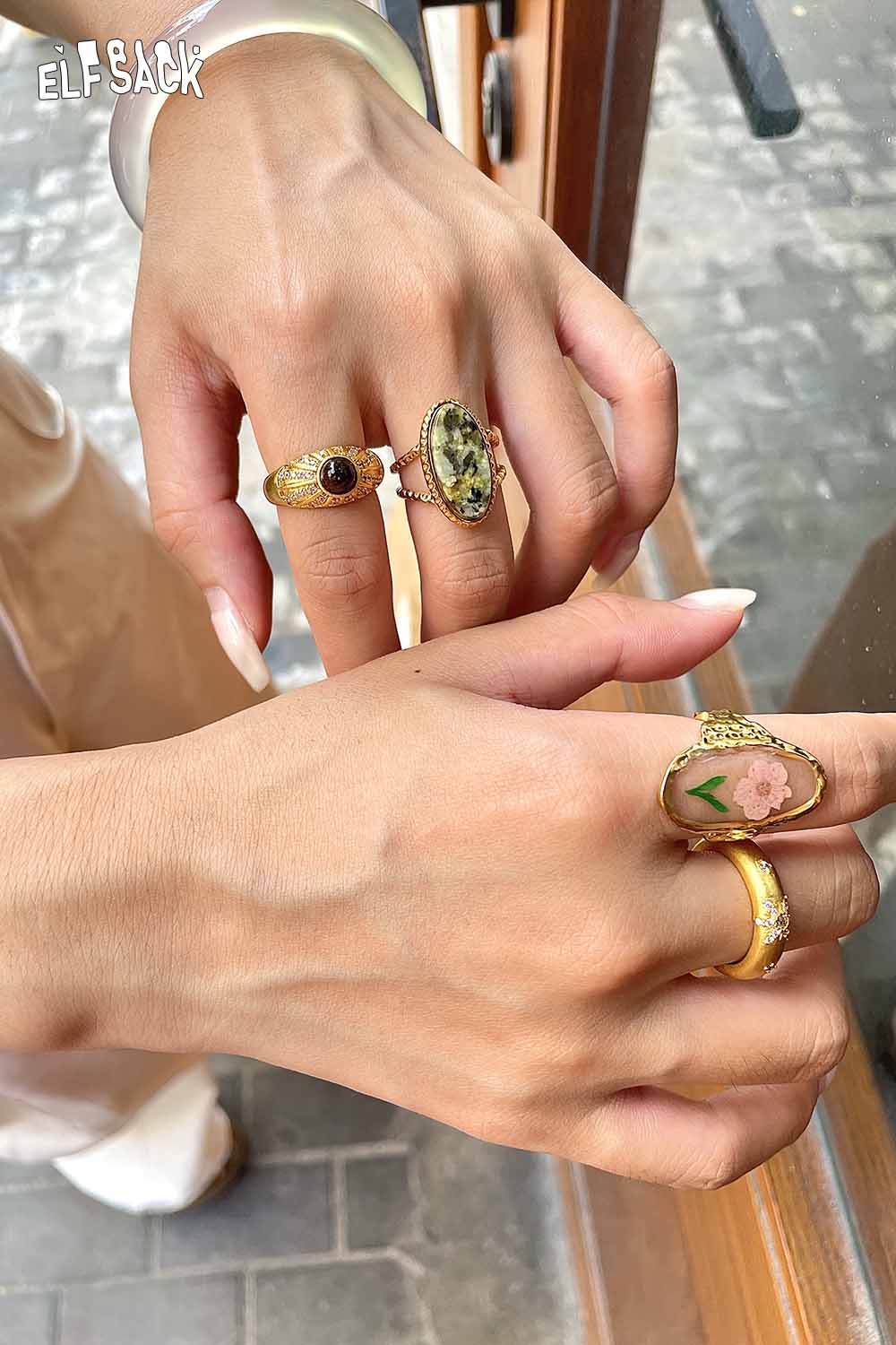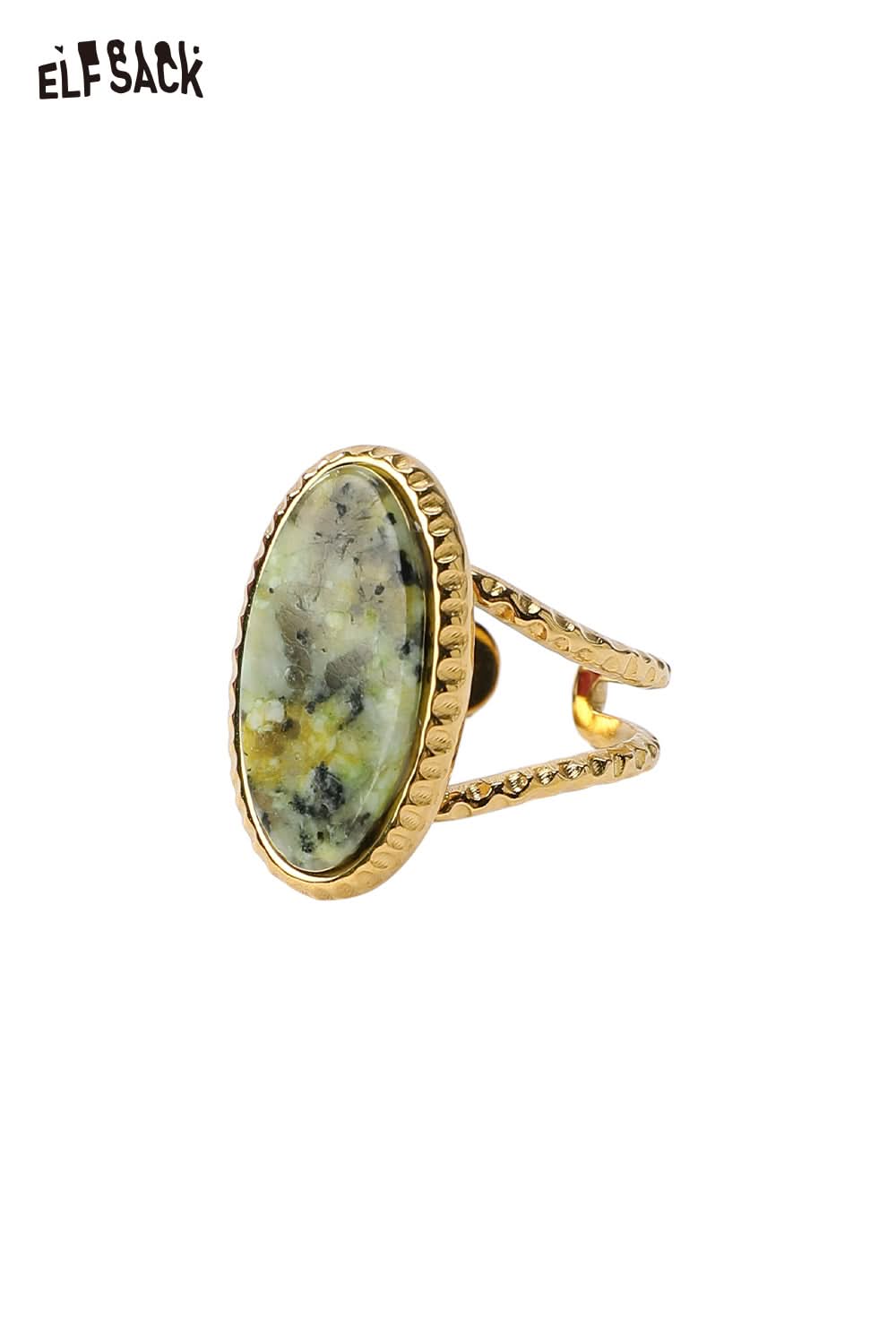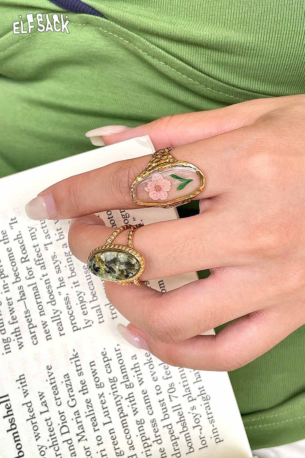Transparent Epoxy Tulip Print Gold Retro Open Ring