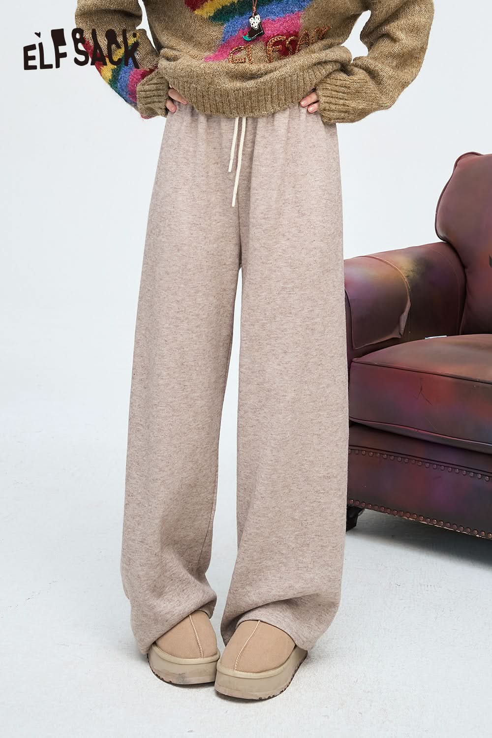Relaxed straight casual sweatpants, drapey wide-leg loose long pants