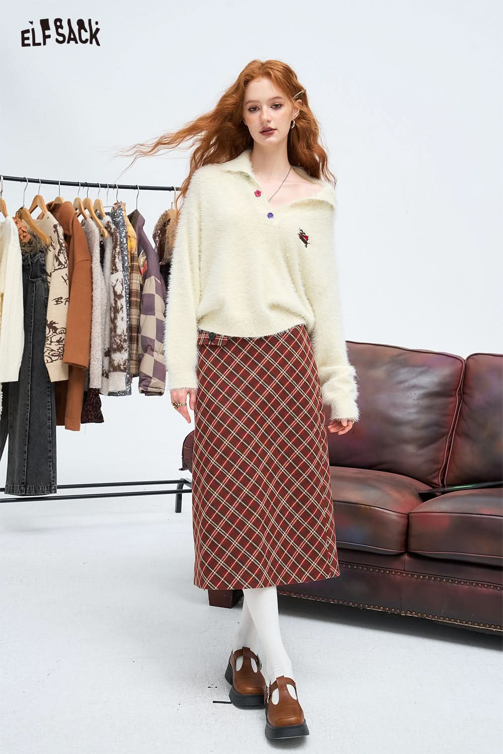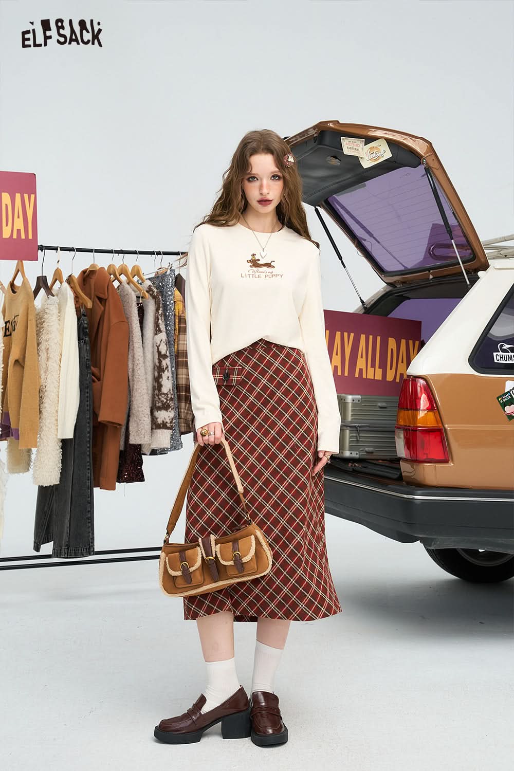 Retro plaid A-line skirt, sweet Preppy Style long skirt short skirt