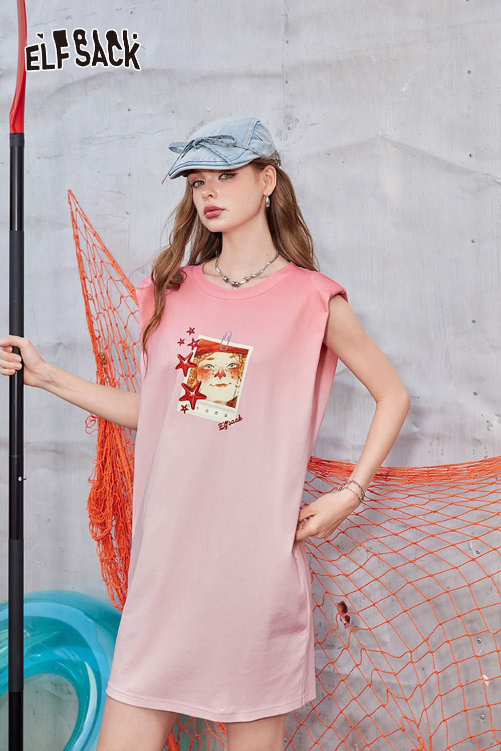 Sleeveless dress with gradient printed back and hollowed out women's casual skirt