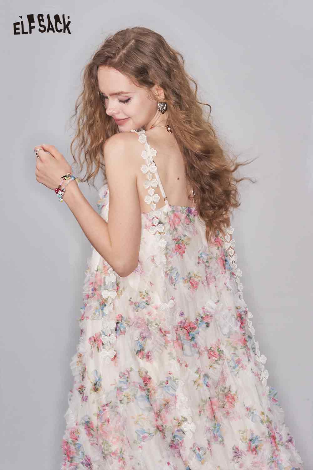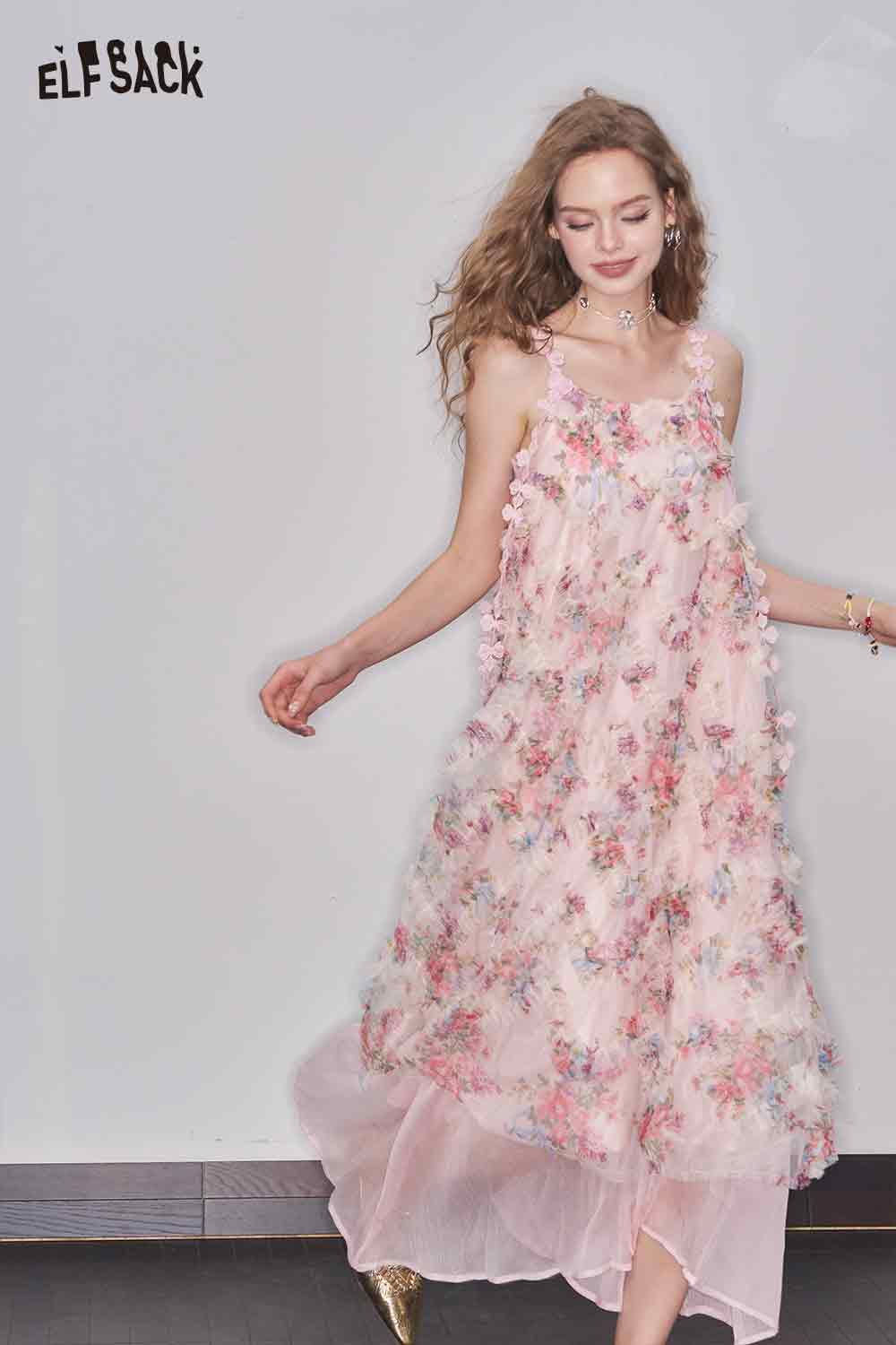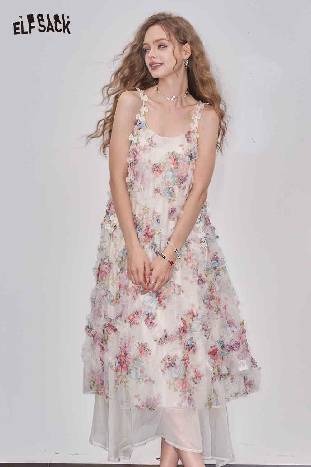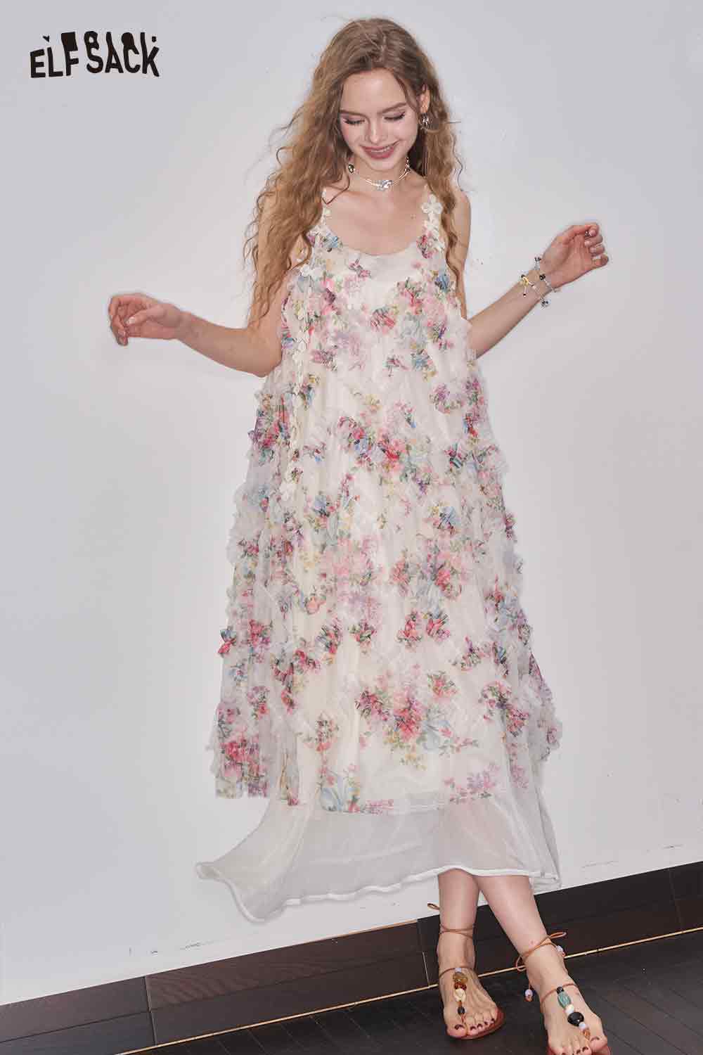 Cute Floral Elegant Slip Premium Holiday Maxi Dress