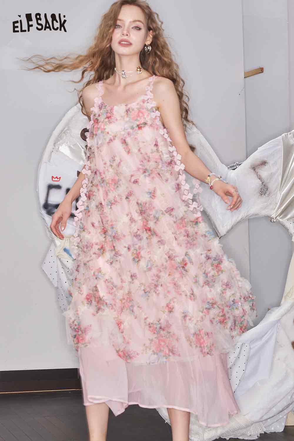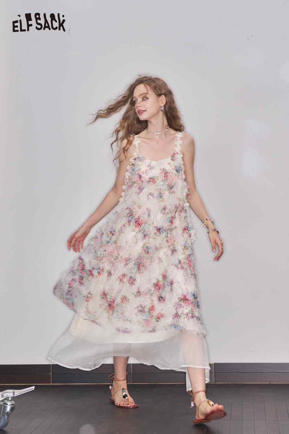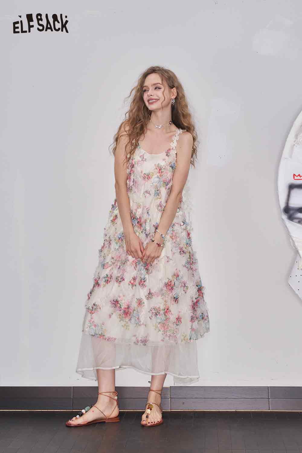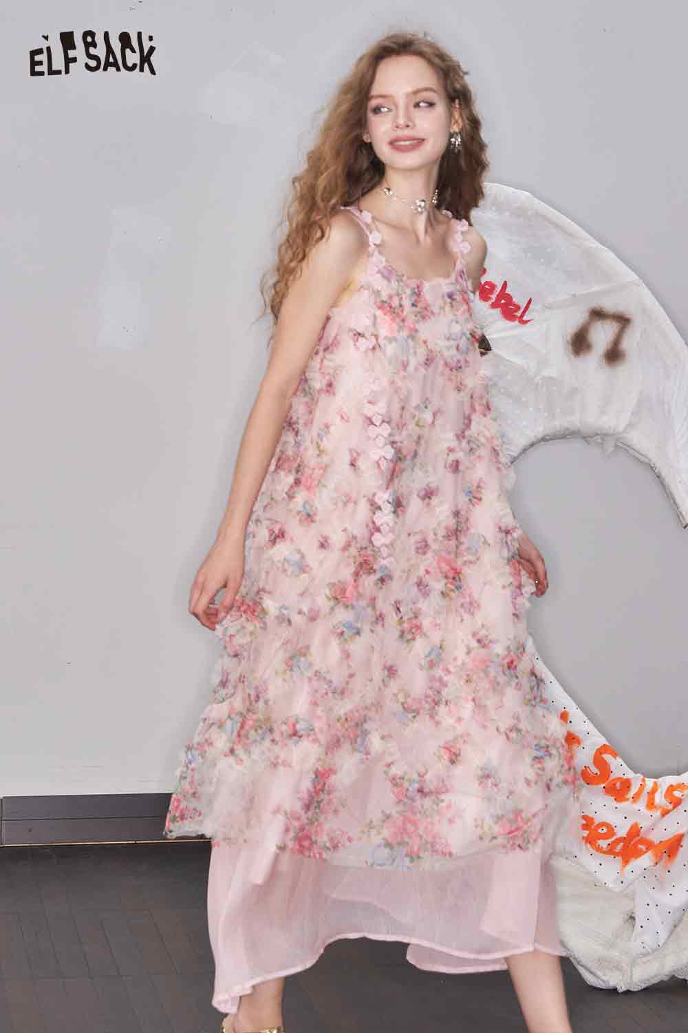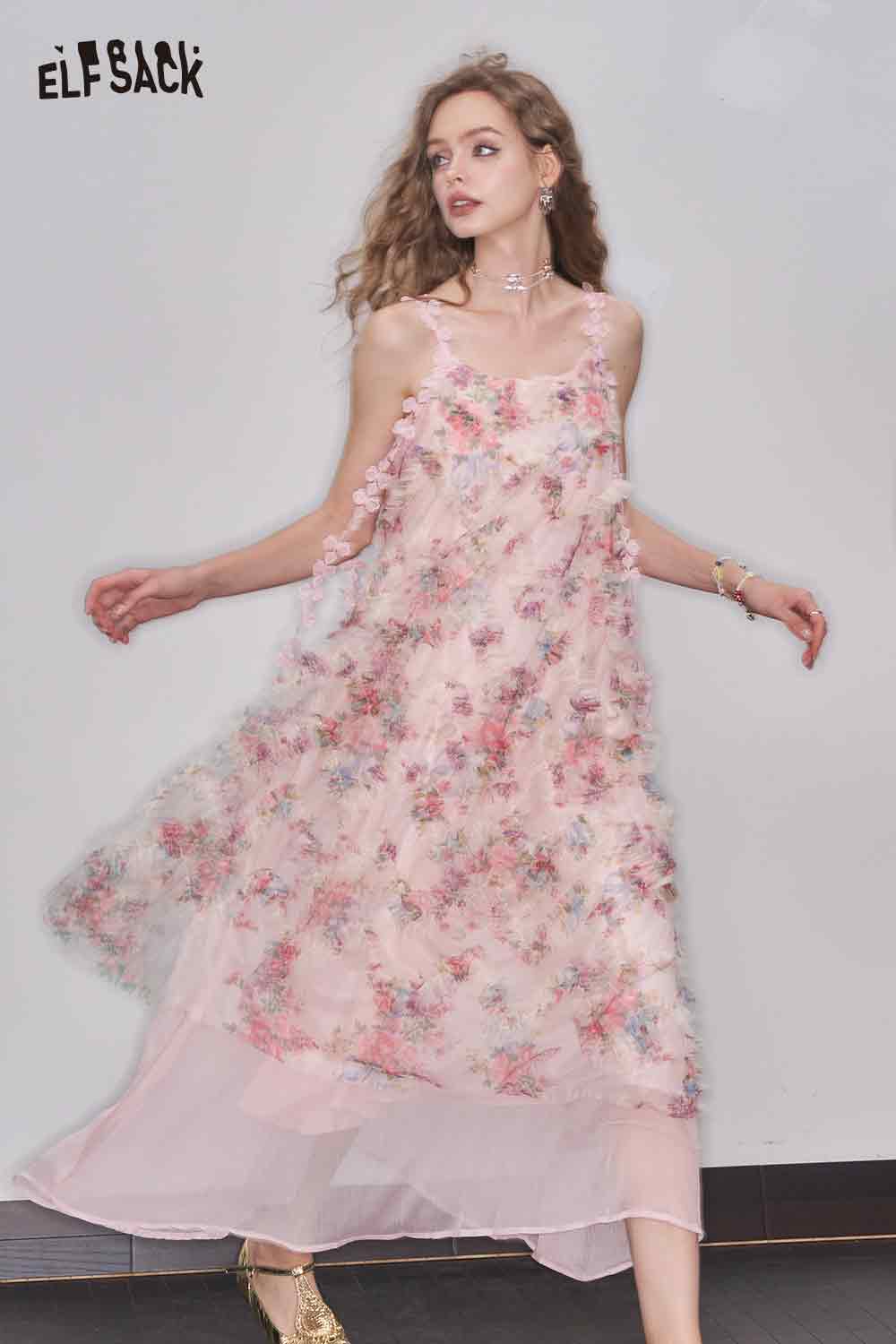 Cute Floral Elegant Slip Premium Holiday Maxi Dress