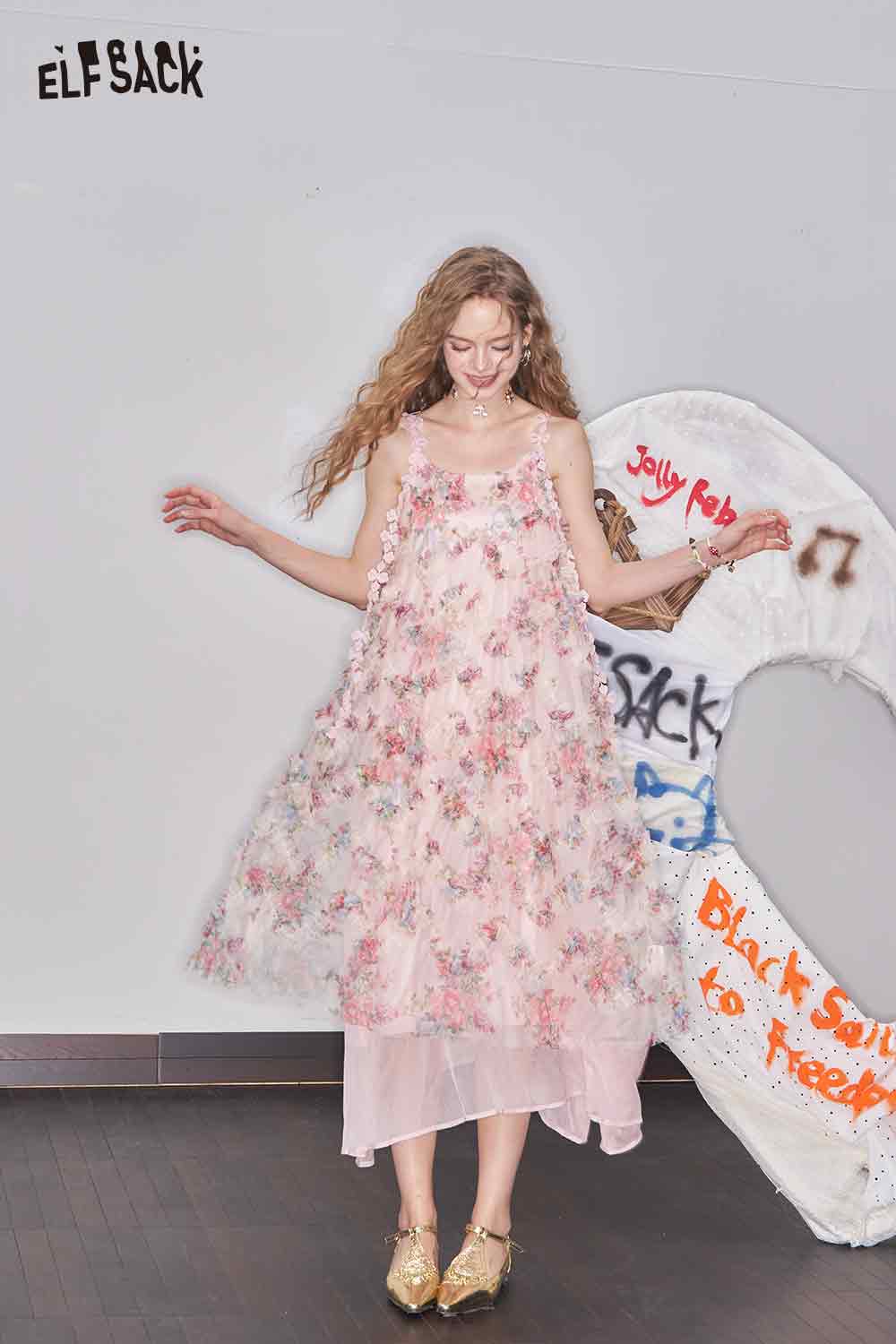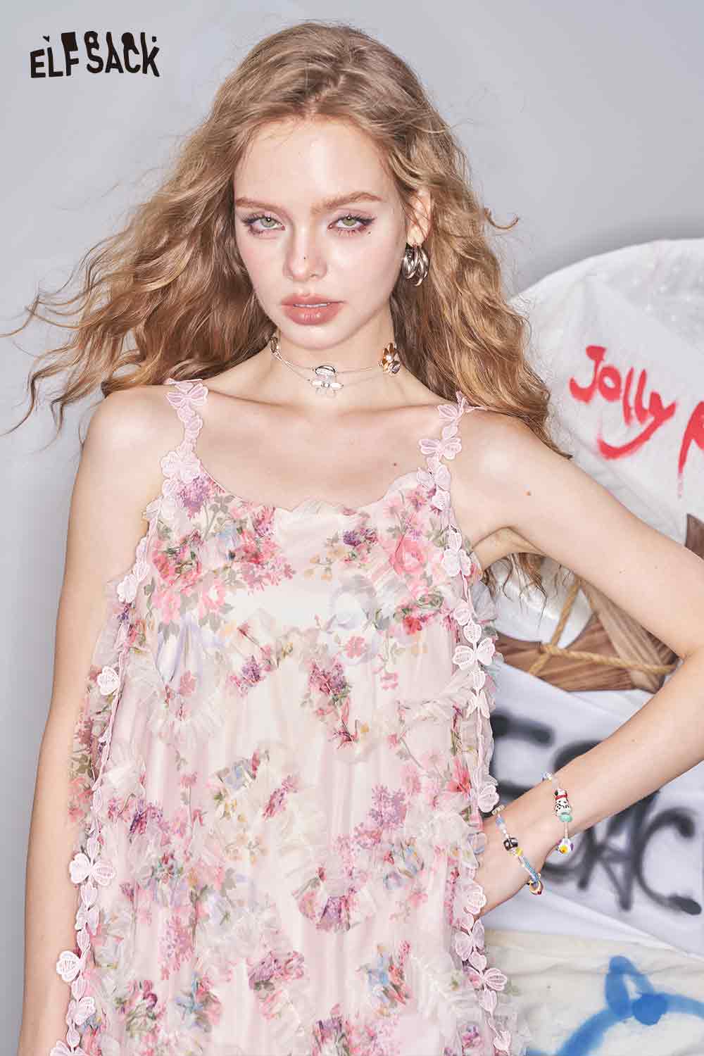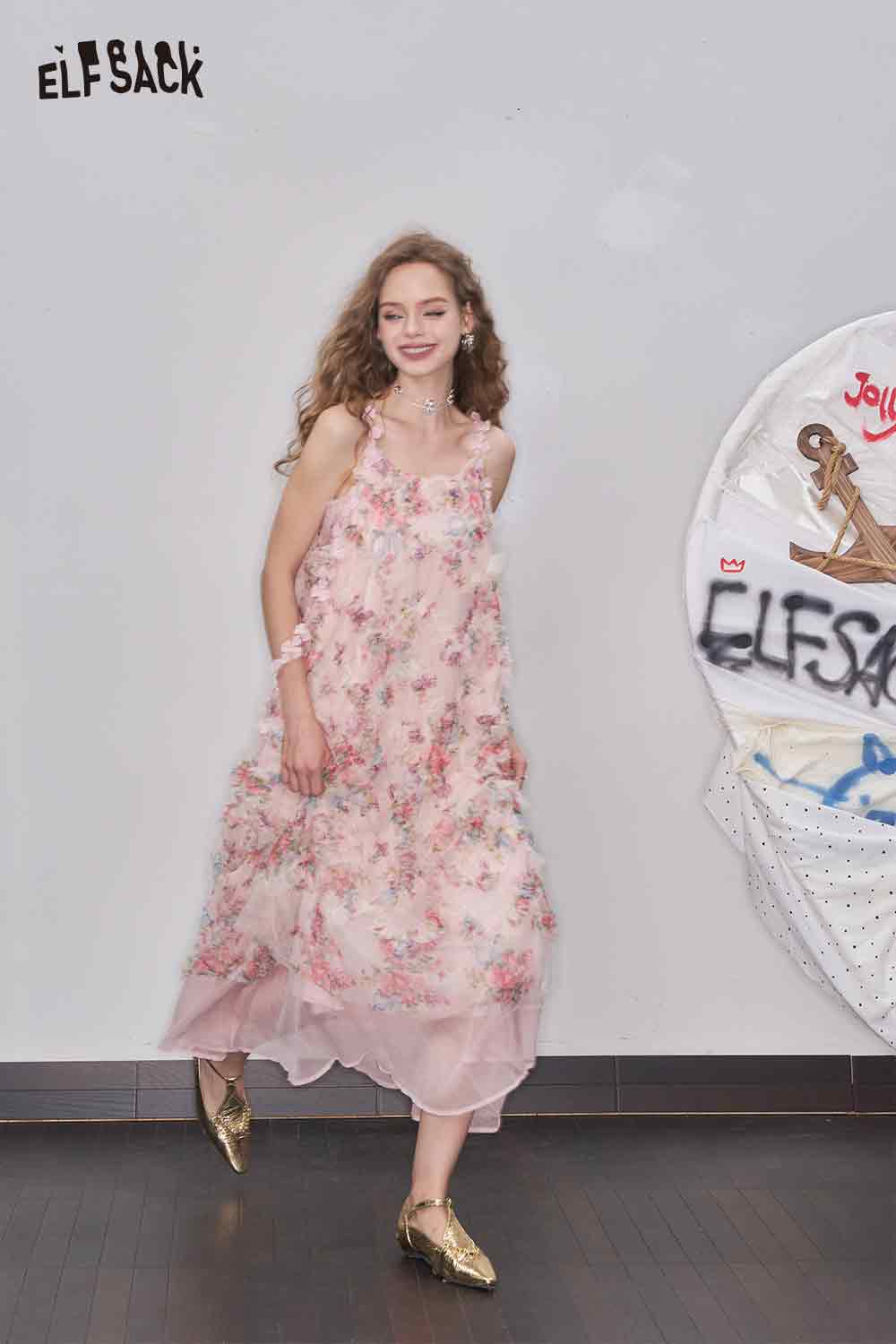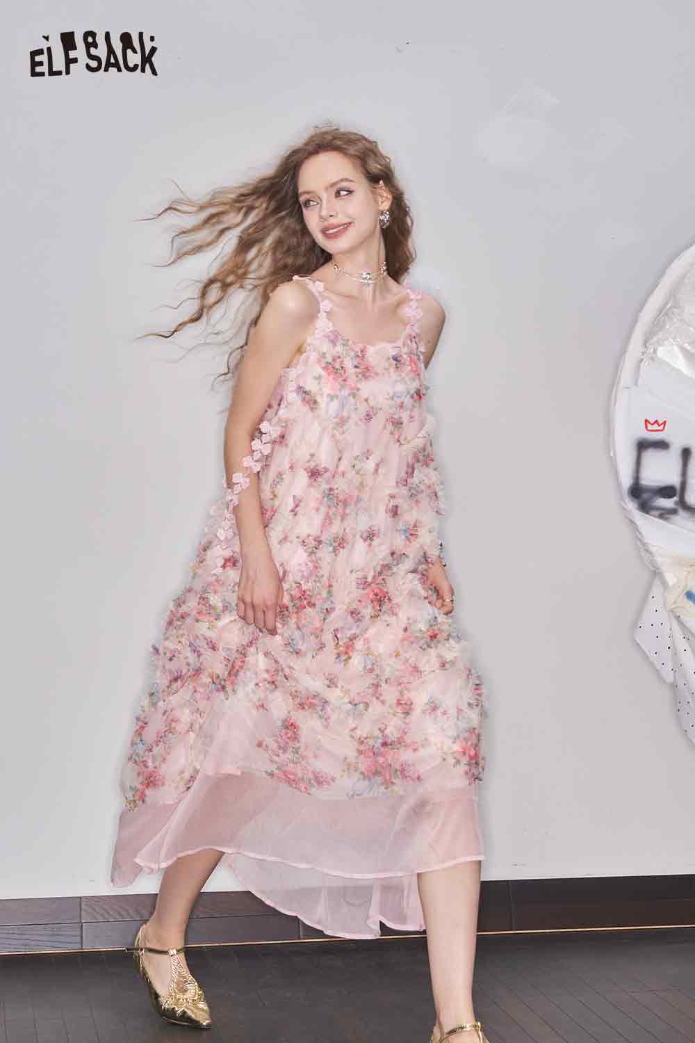 Cute Floral Elegant Slip Premium Holiday Maxi Dress