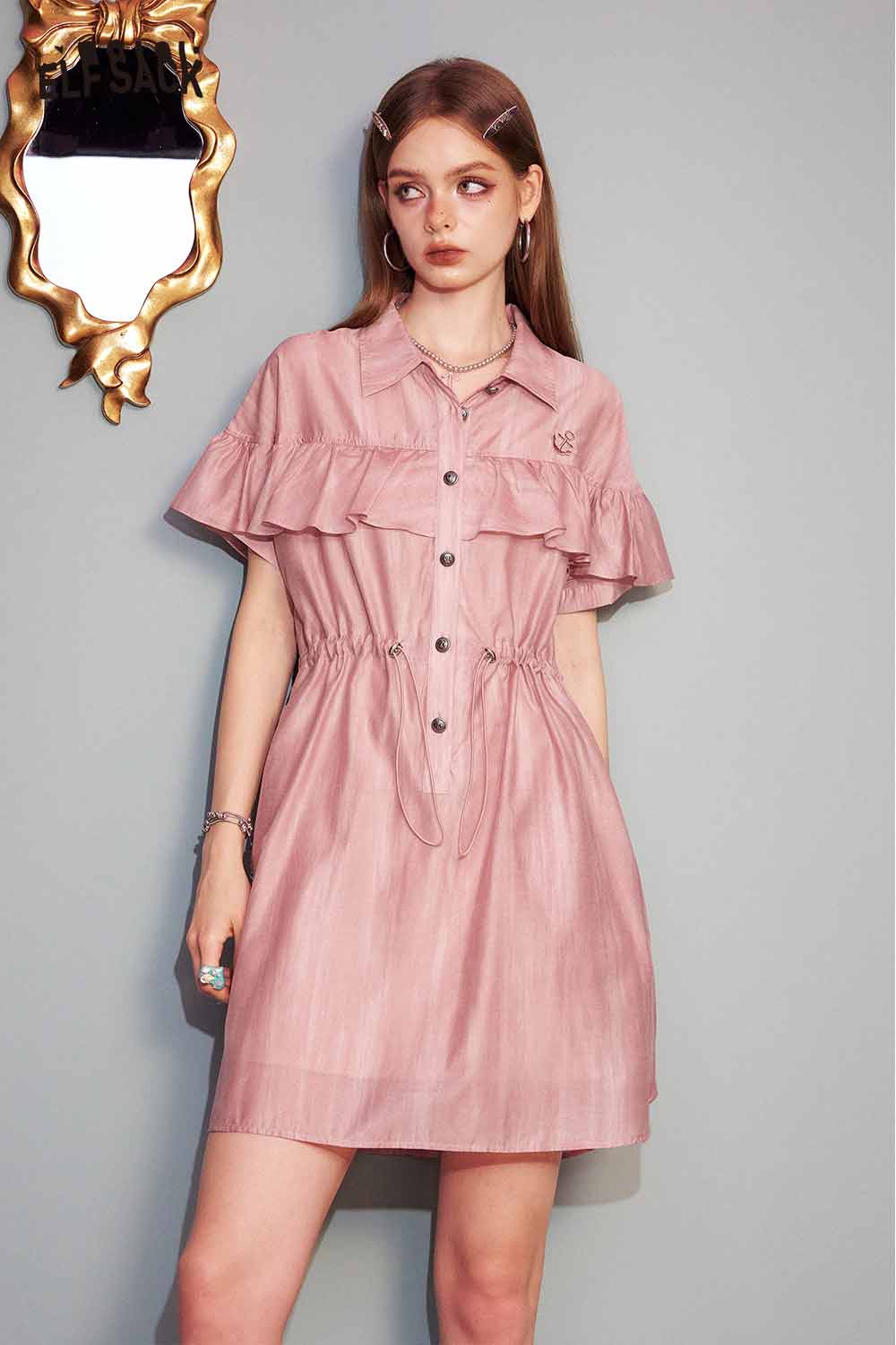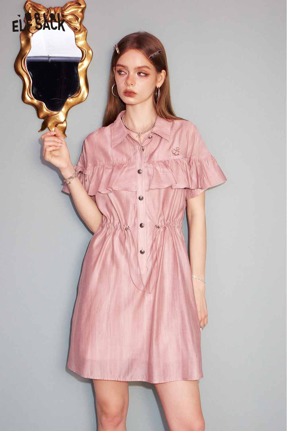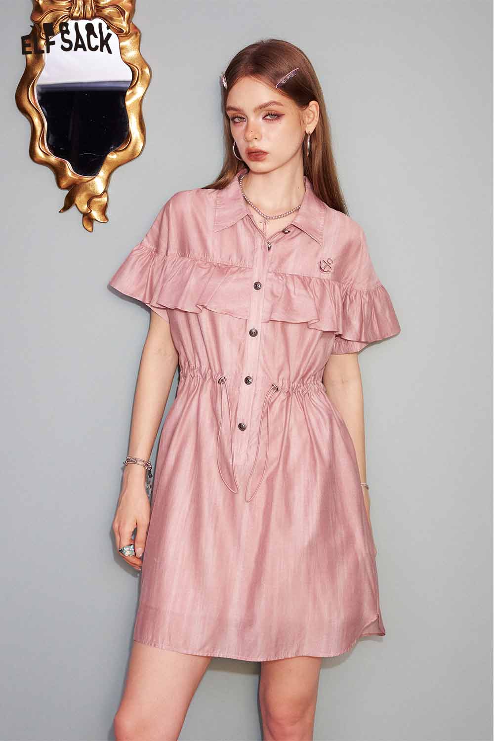 Cute Pink Sweet Shirt Casual Waist Tie Dress