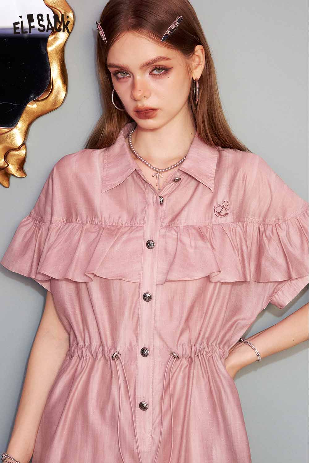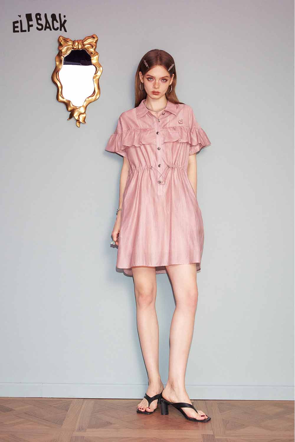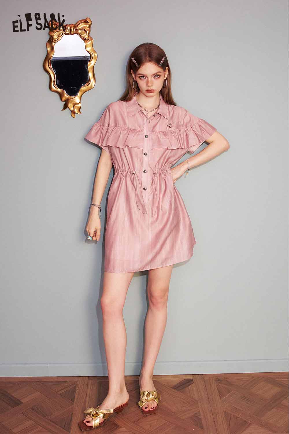 Cute Pink Sweet Shirt Casual Waist Tie Dress