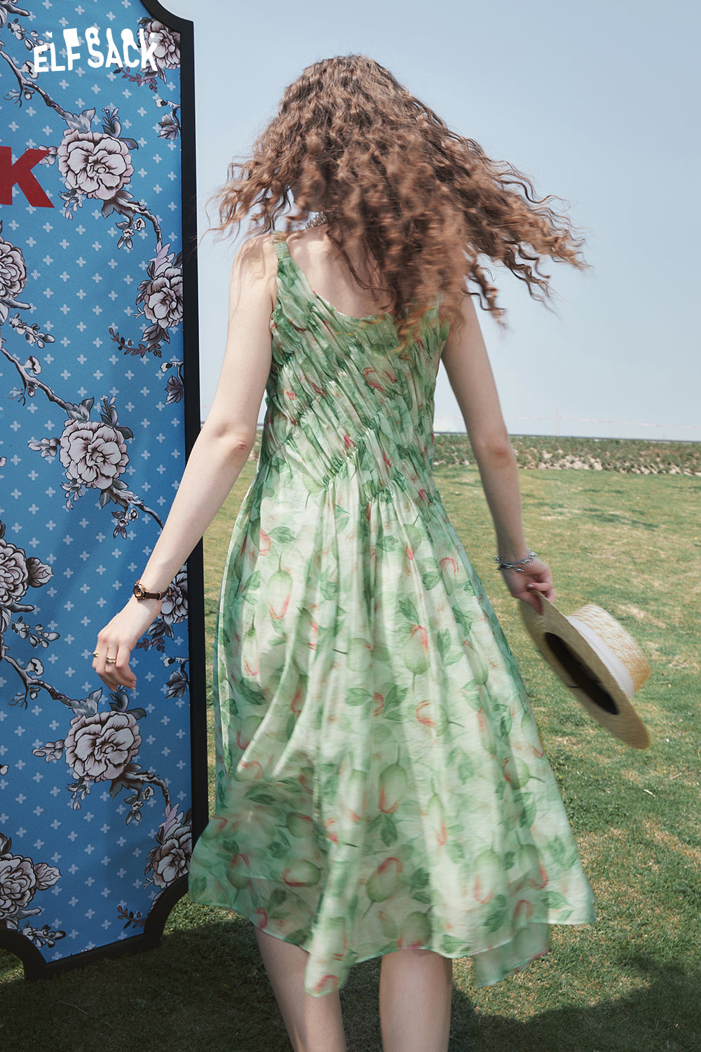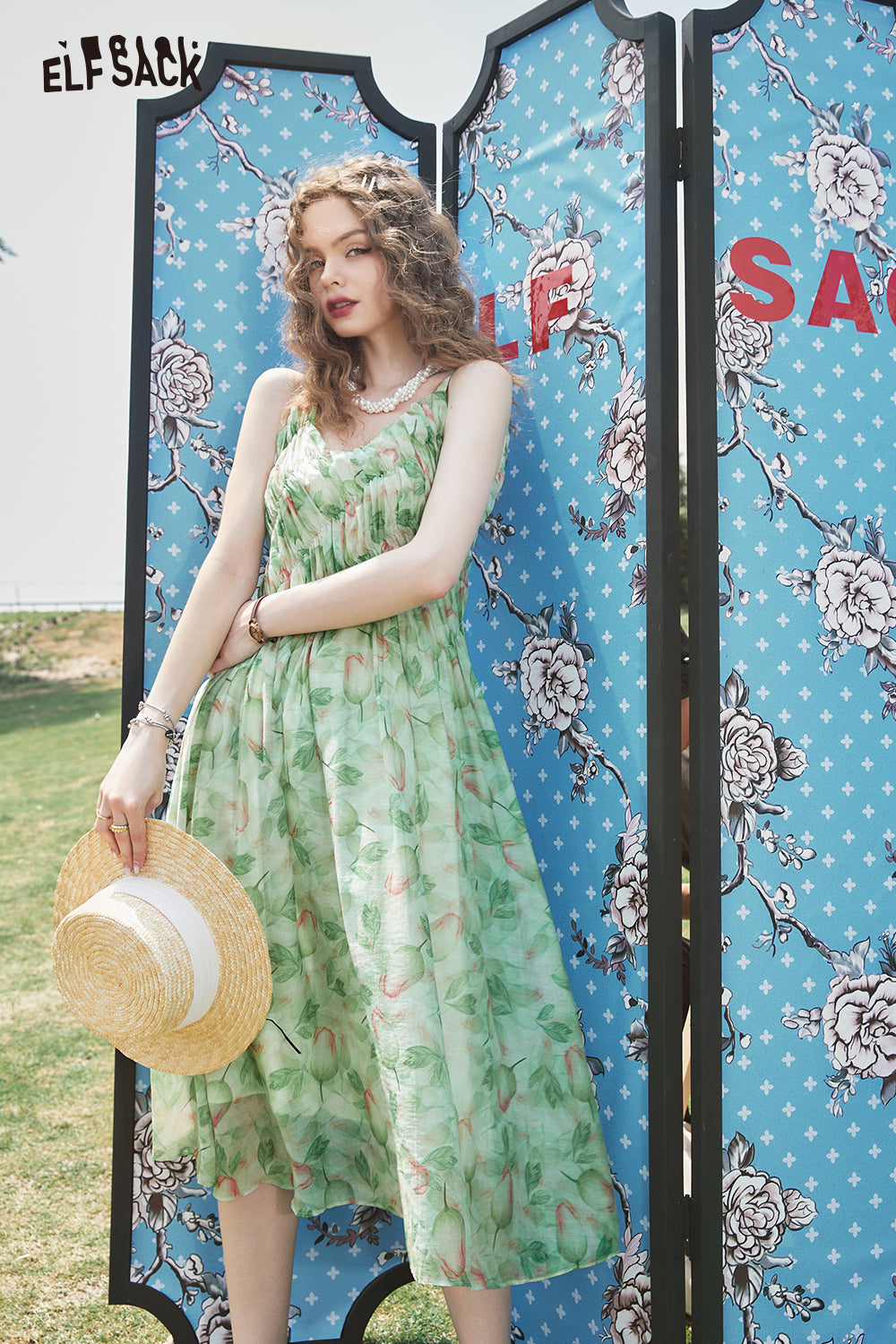 Green Floral V Neck Slip Dress