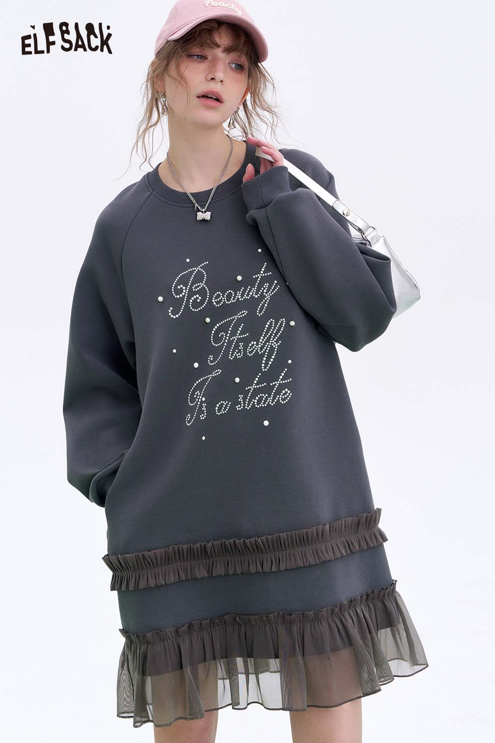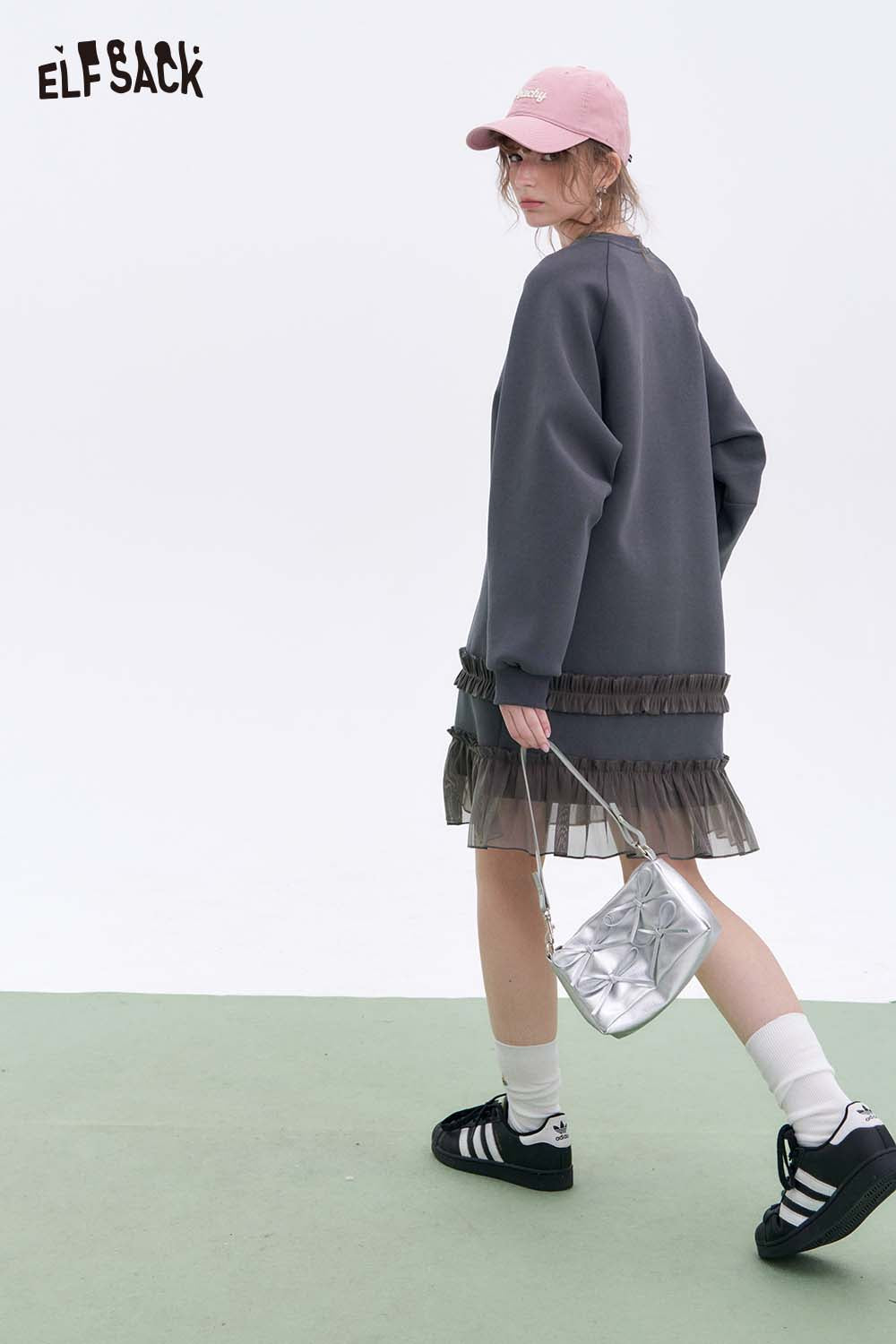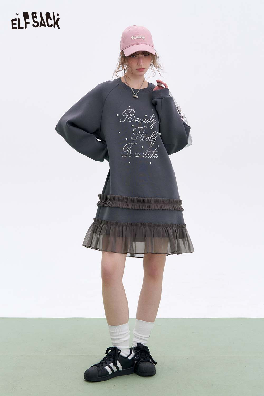 Sweet Petite Bodycon Organza Panel Hoodie Dress