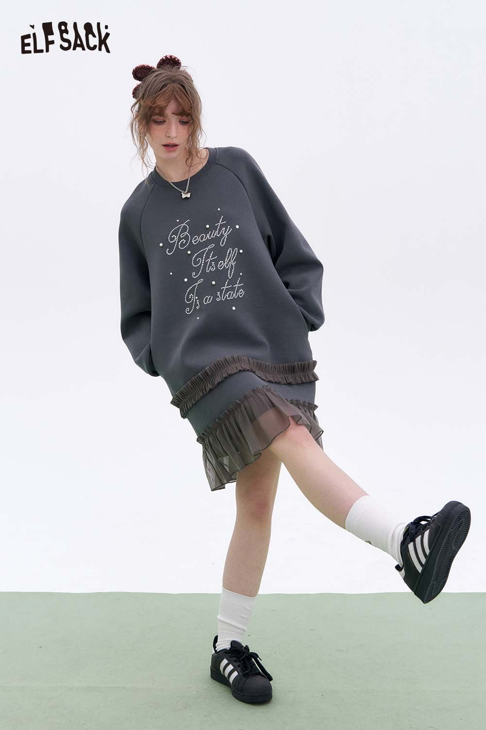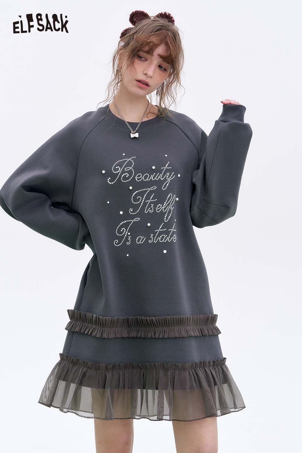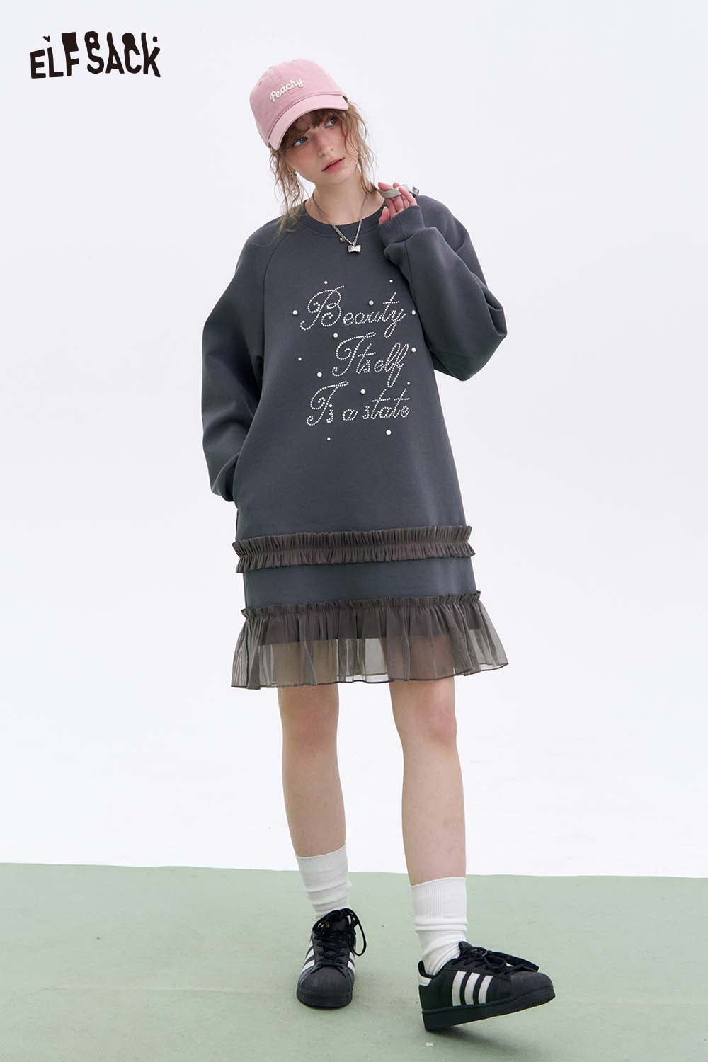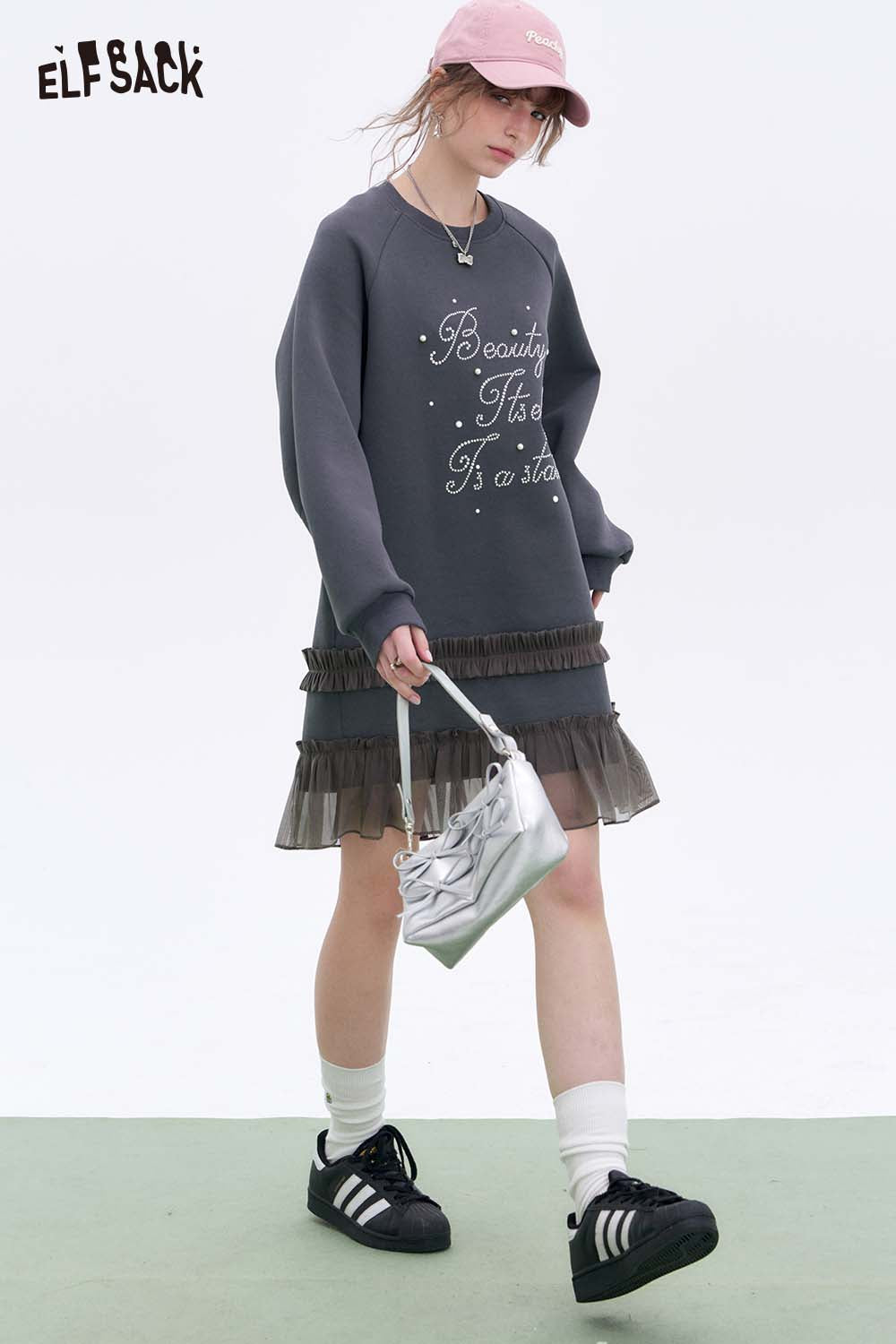 Sweet Petite Bodycon Organza Panel Hoodie Dress