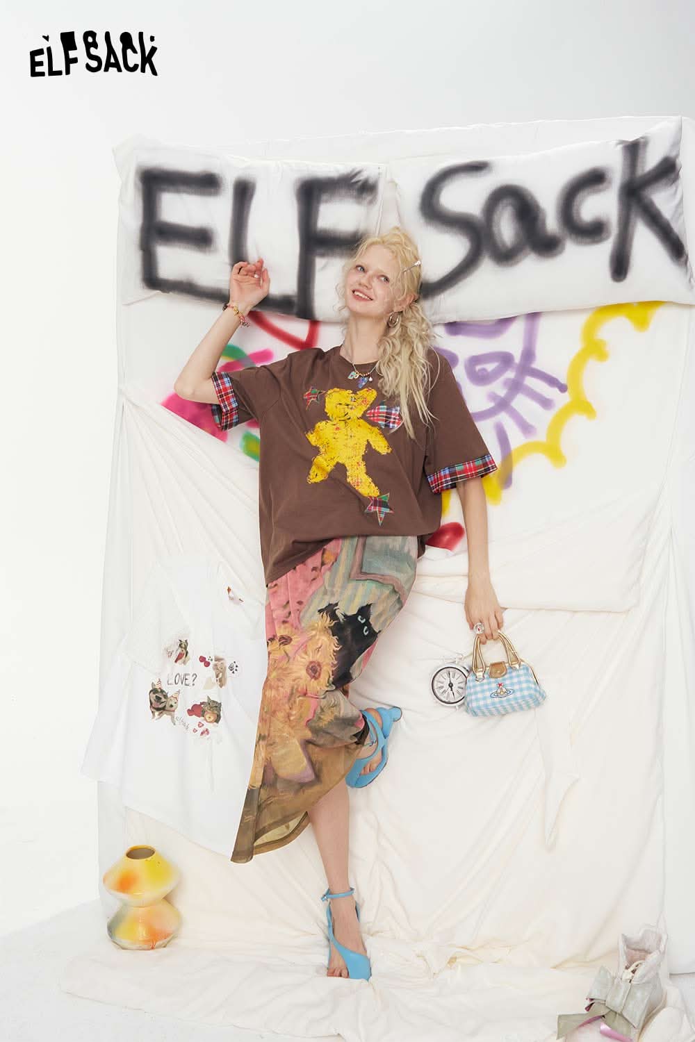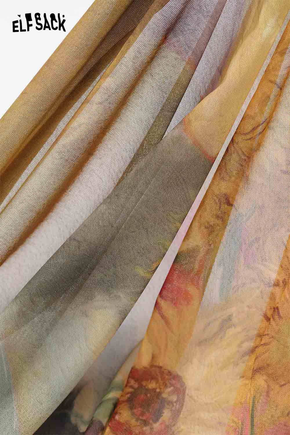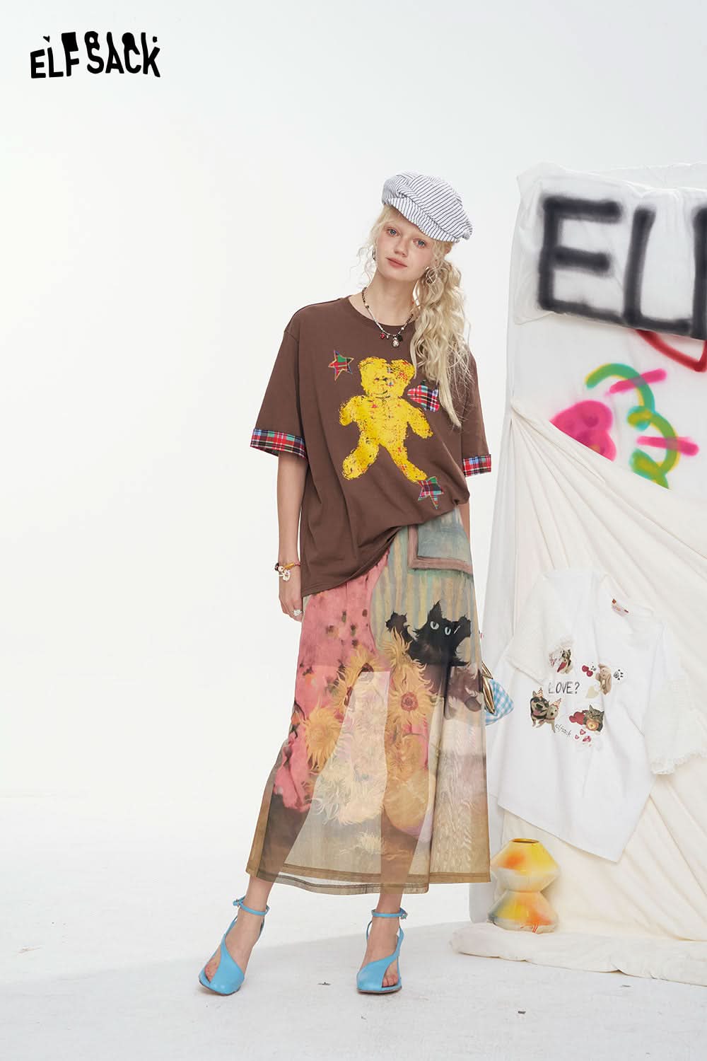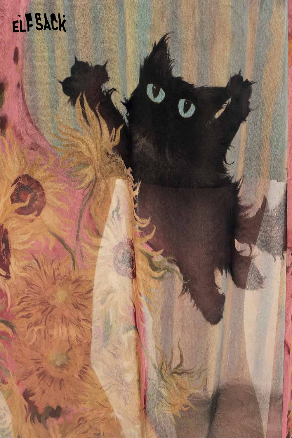 Cat Print Mesh Design A-Line High-Waist Skirt