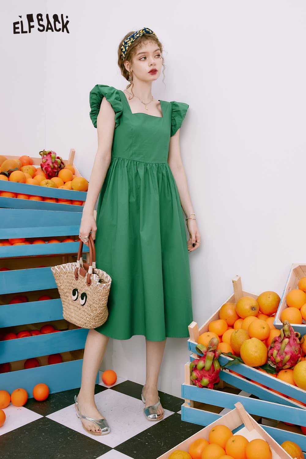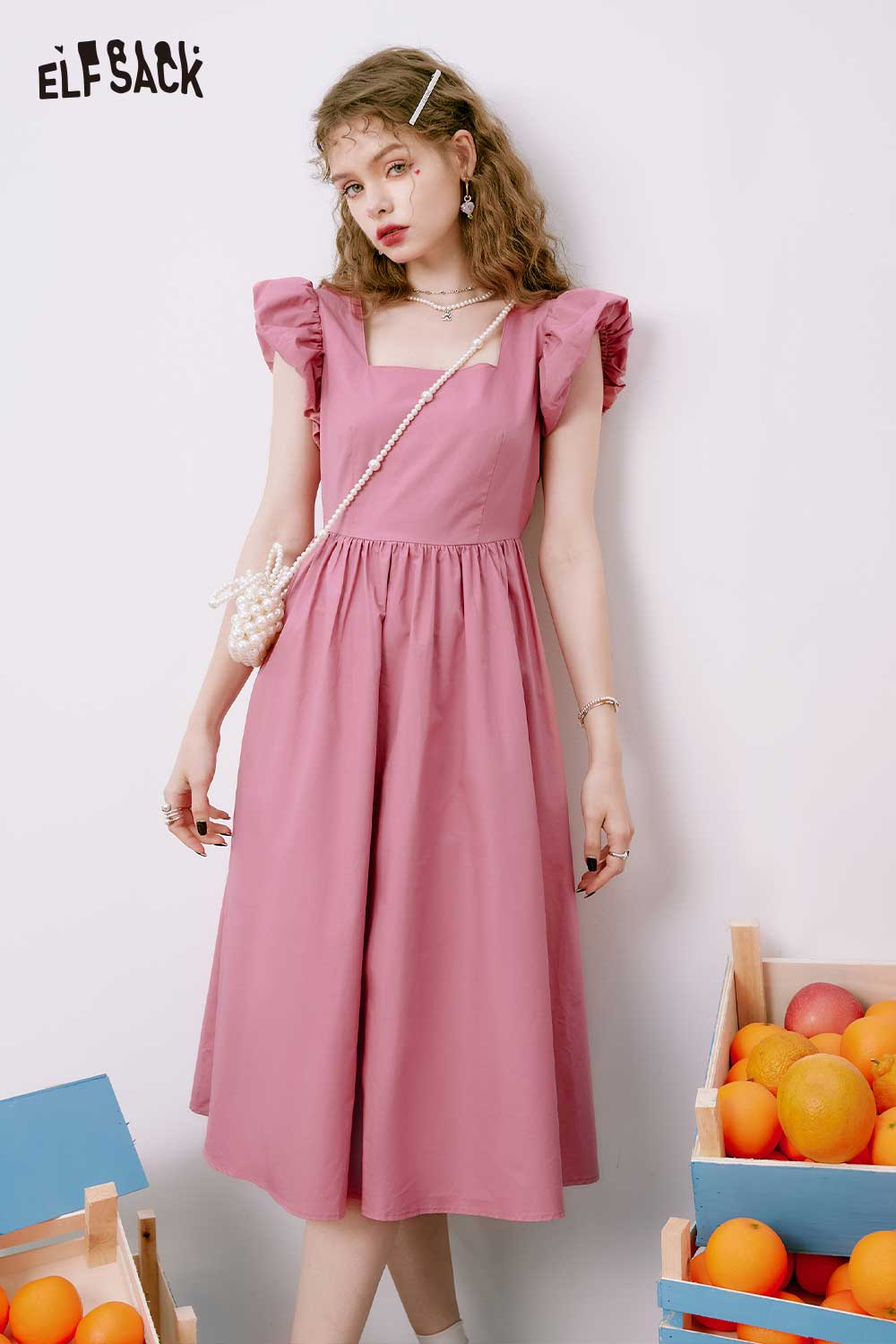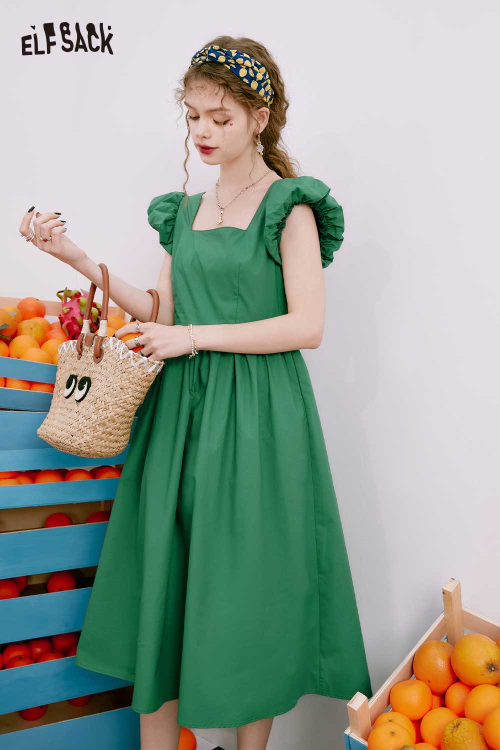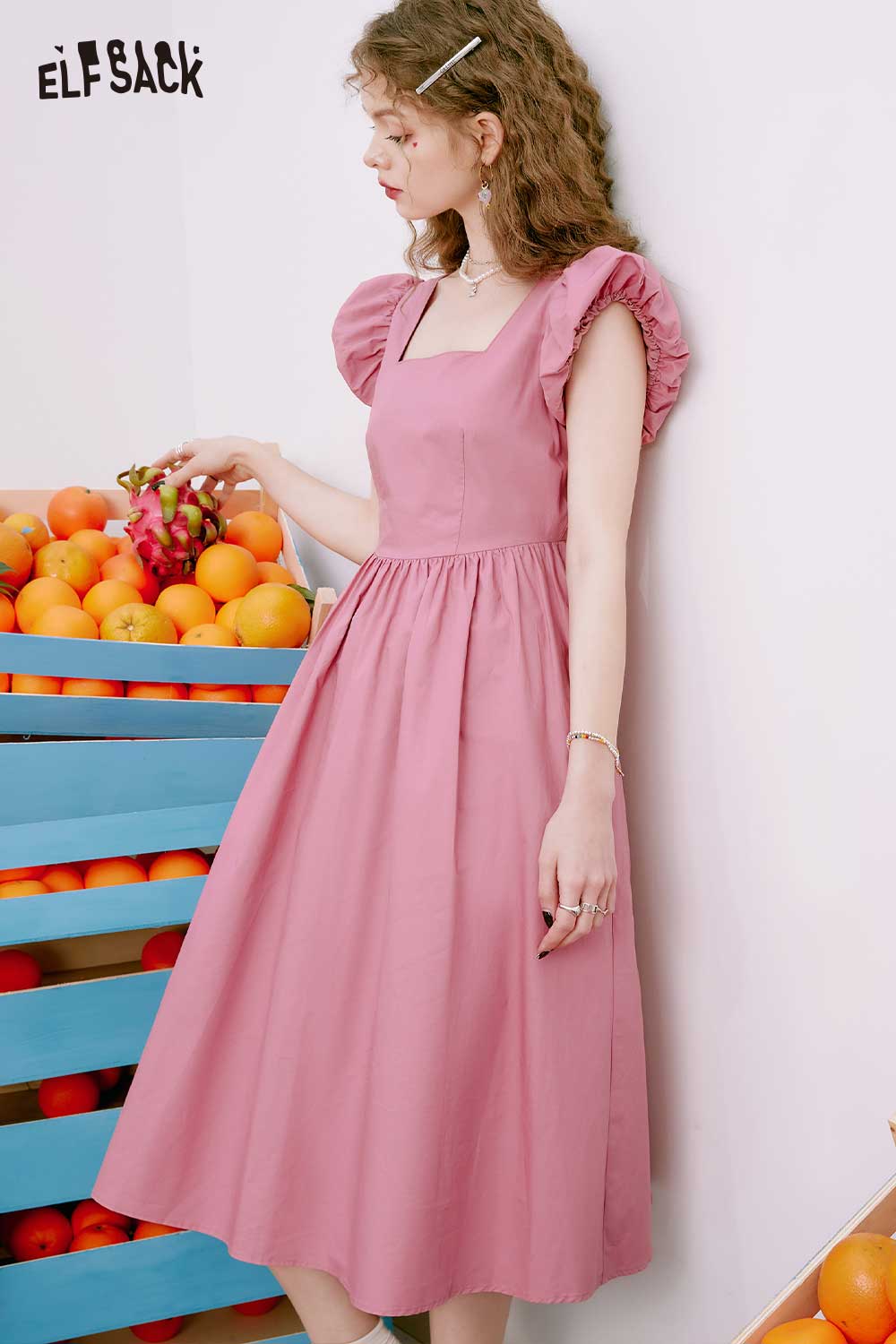 Light Square Neck Puff Sleeve Waist Princess Dress