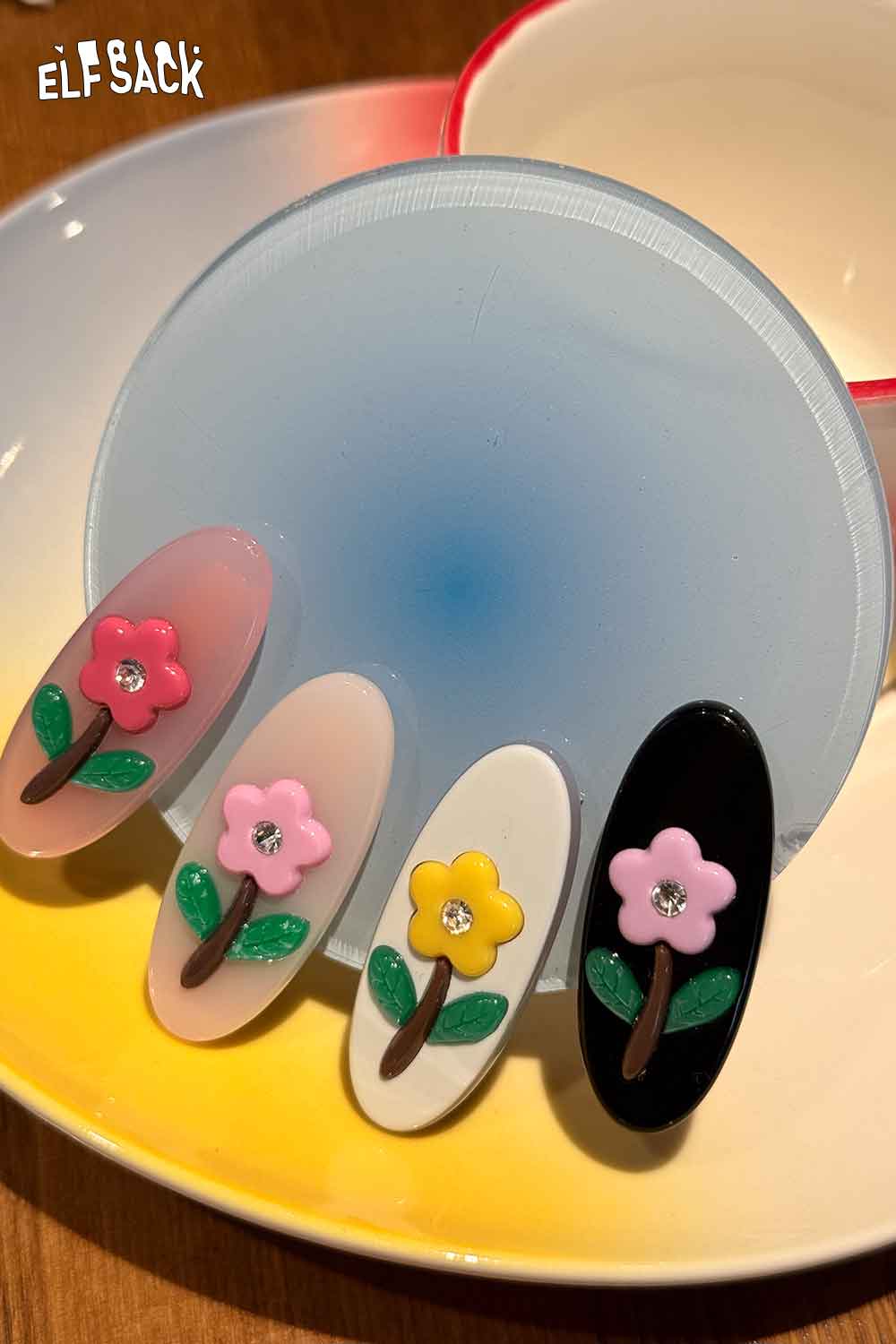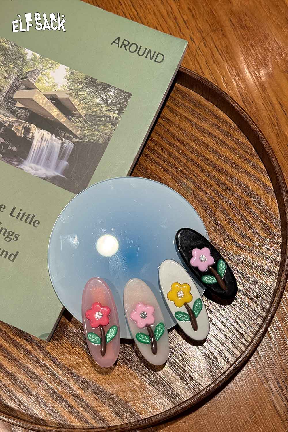Jelly Color Rhinestone Flower Hair Clip Cute Versatile Design Bangs