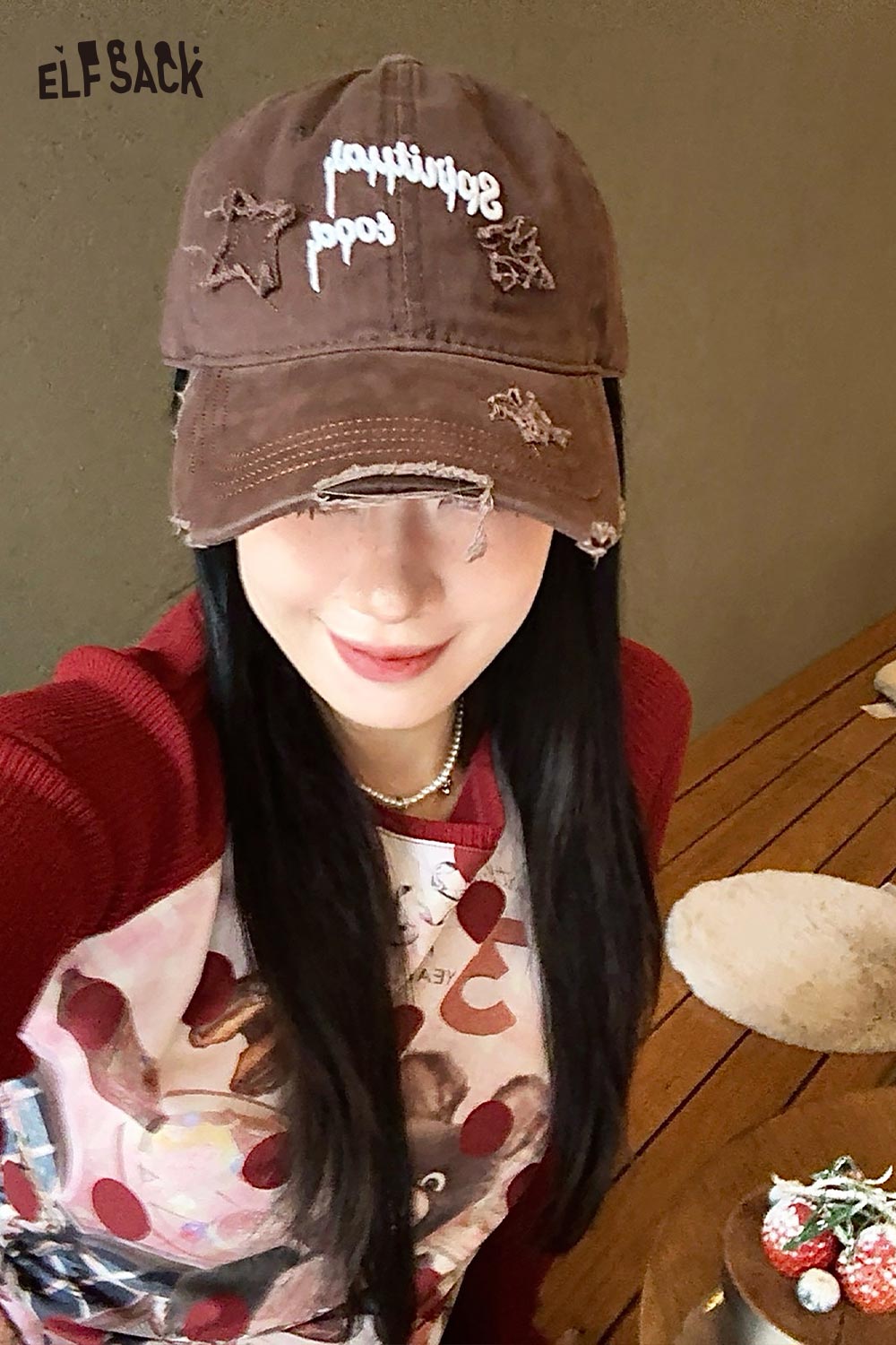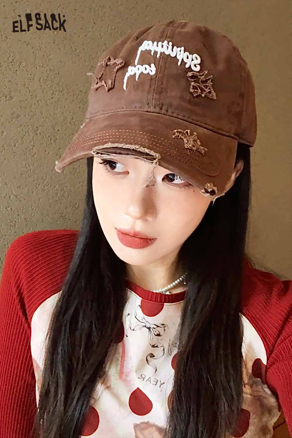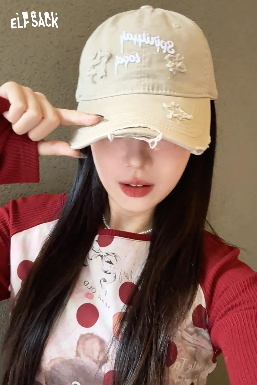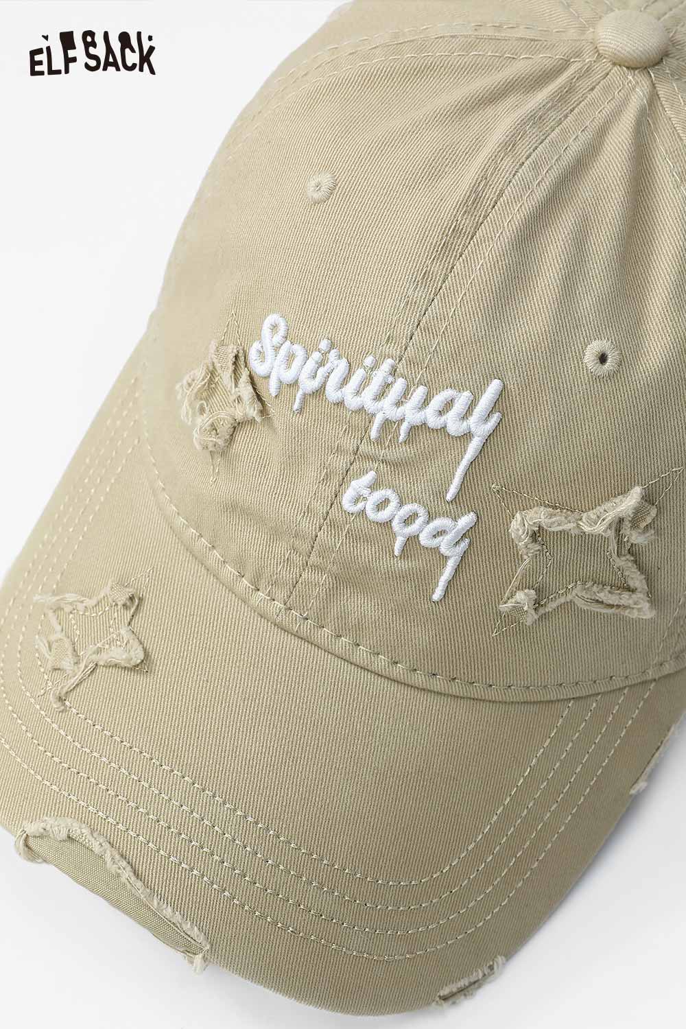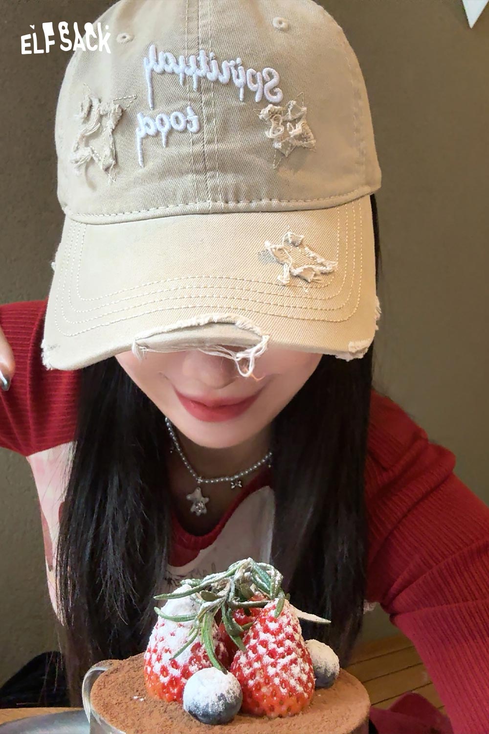 韓国風のダメージ加工を施した無地の文字刺繍が特徴の調節可能なベースボールキャップ