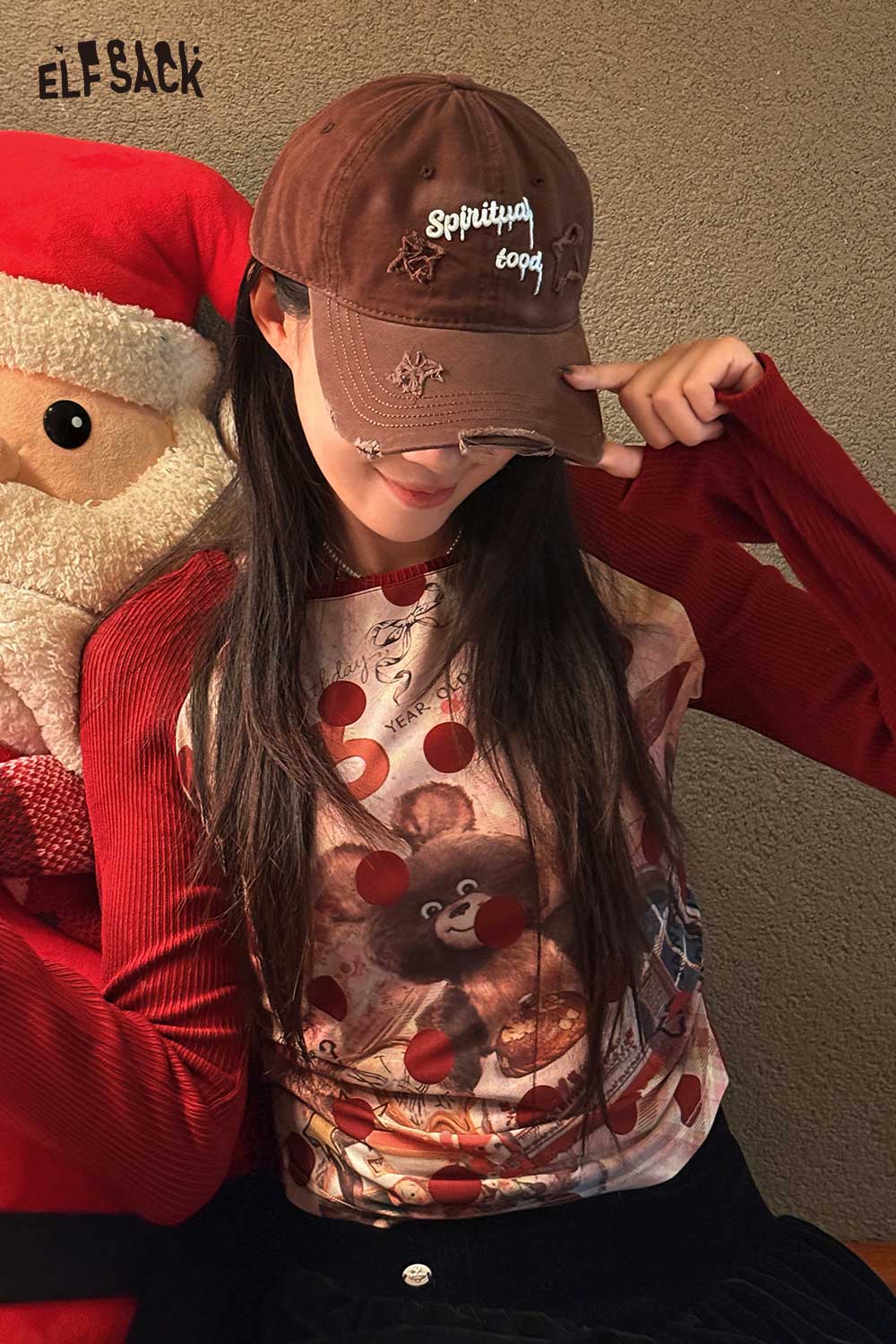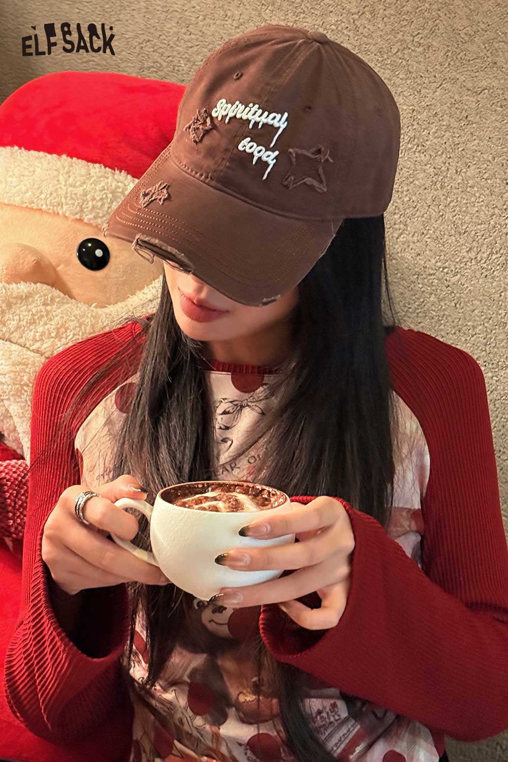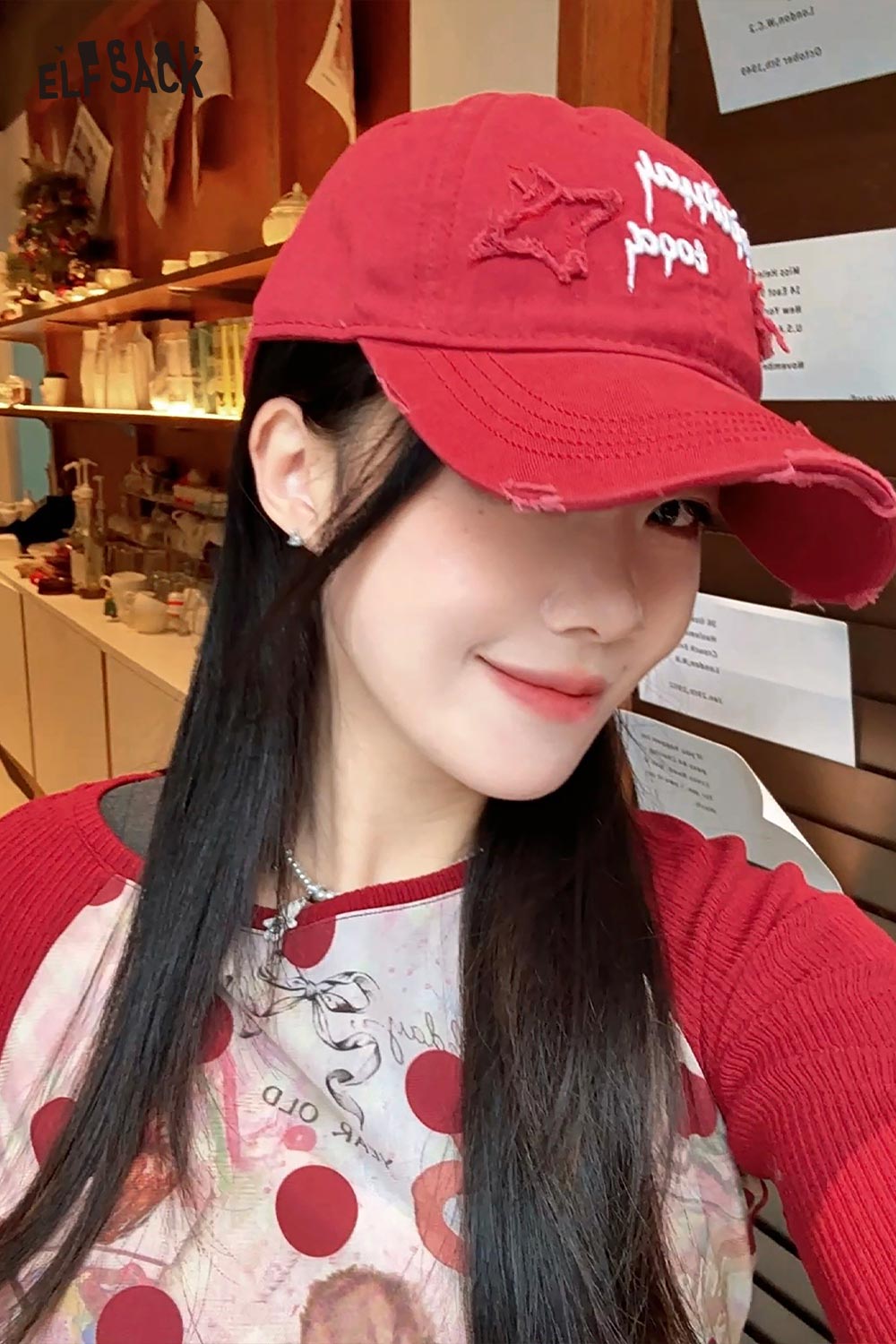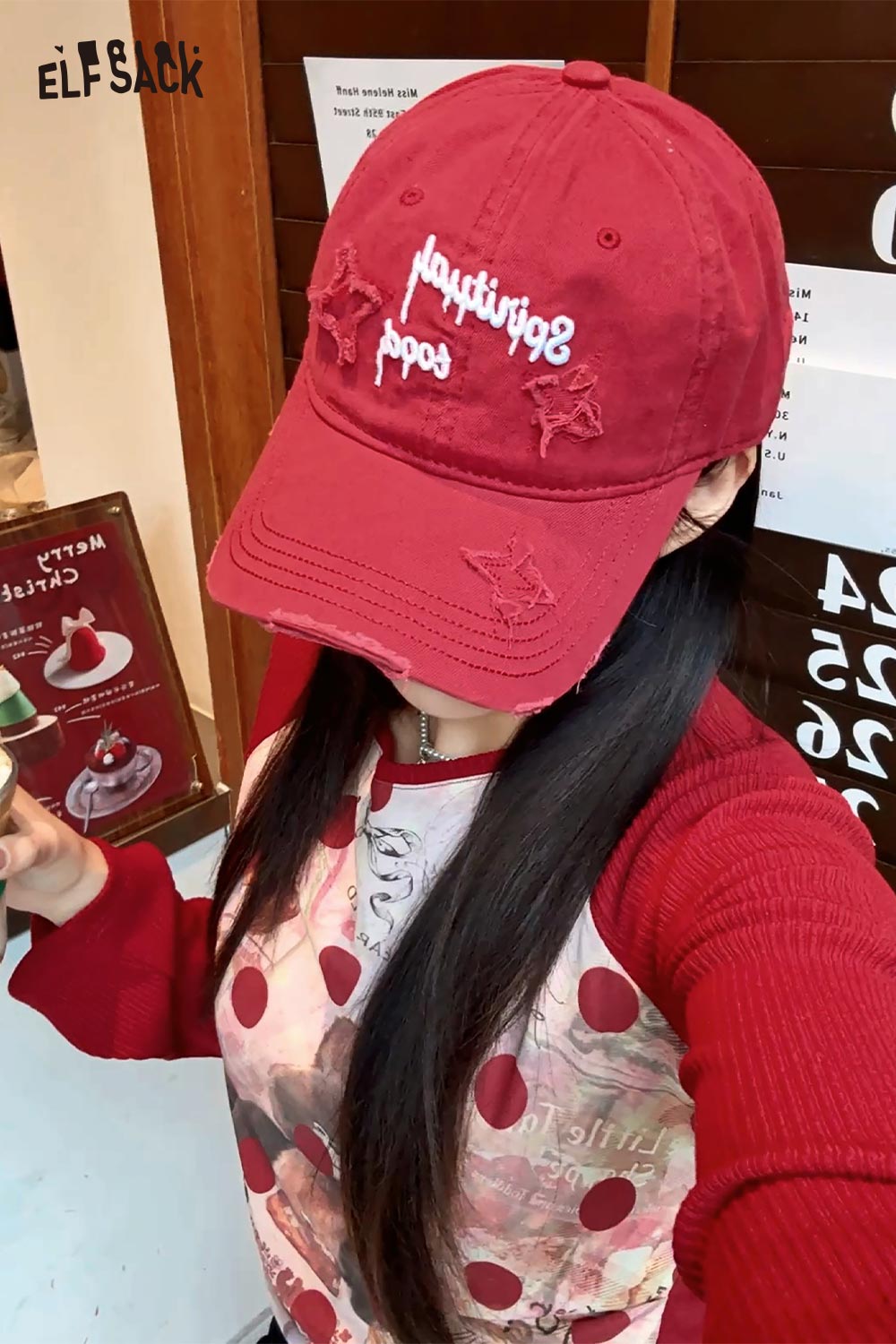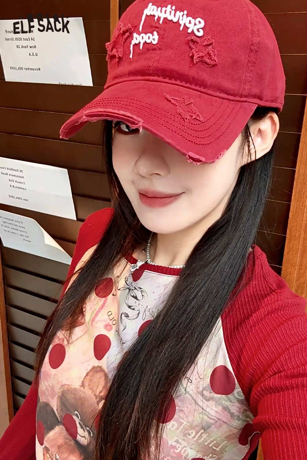 韓国風のダメージ加工を施した無地の文字刺繍が特徴の調節可能なベースボールキャップ