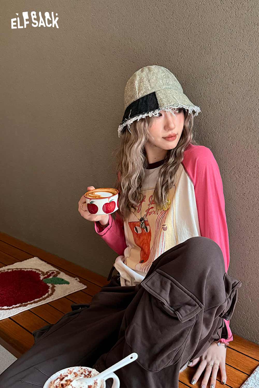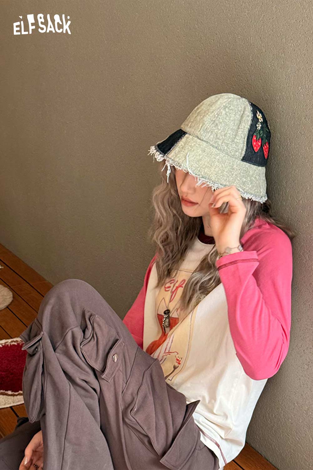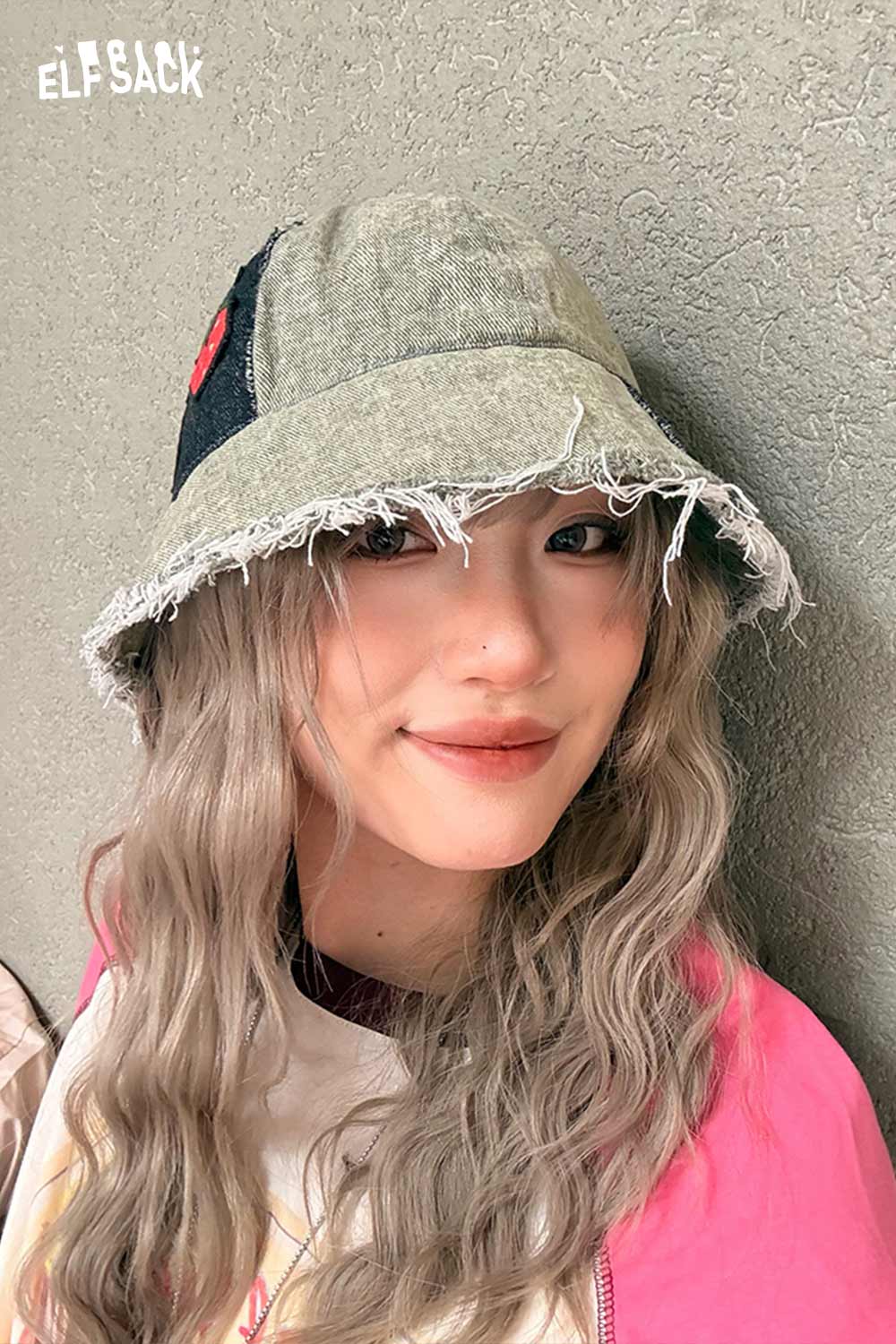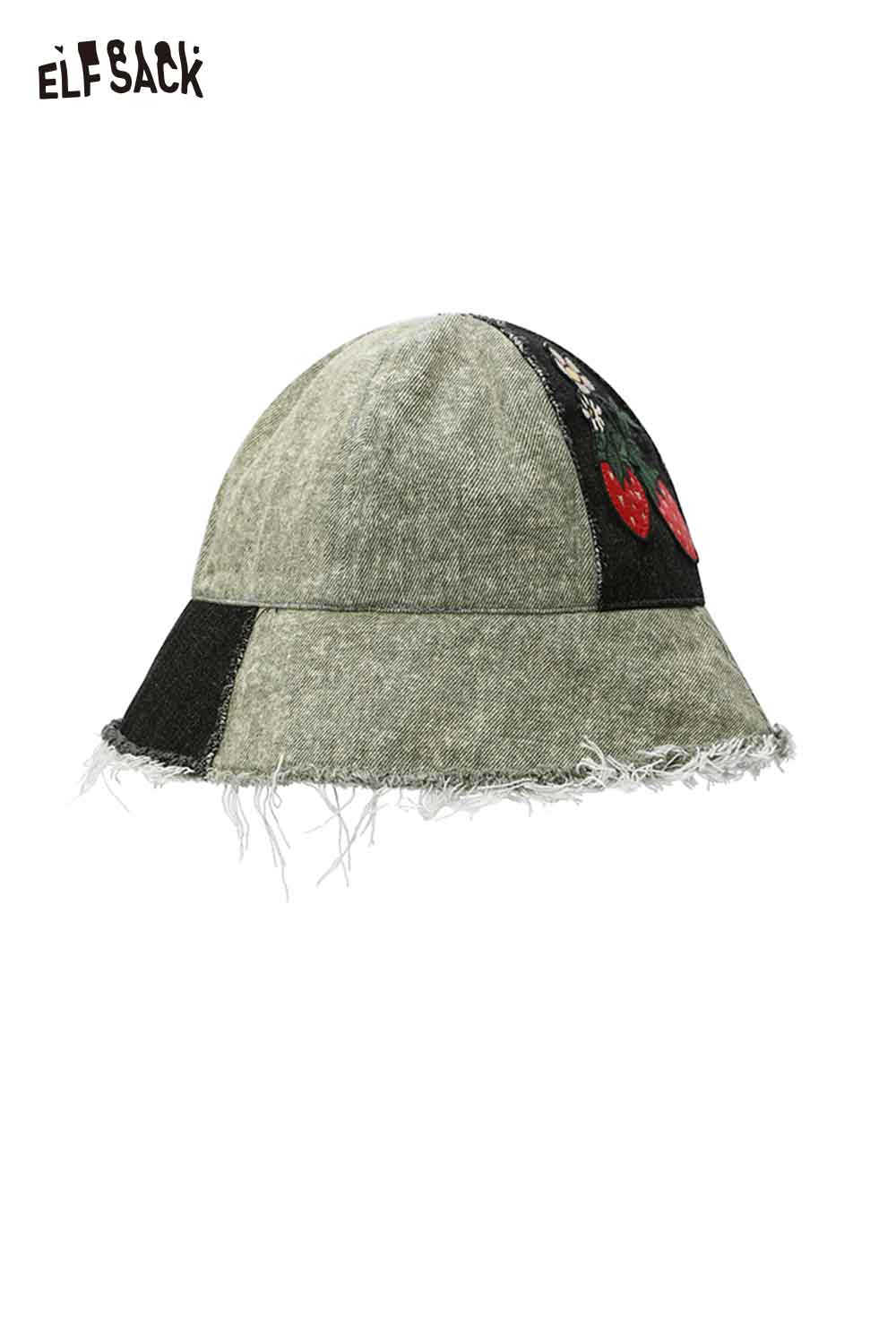 Strawberry Embroidery Frayed Denim Bucket Hat With Daisies