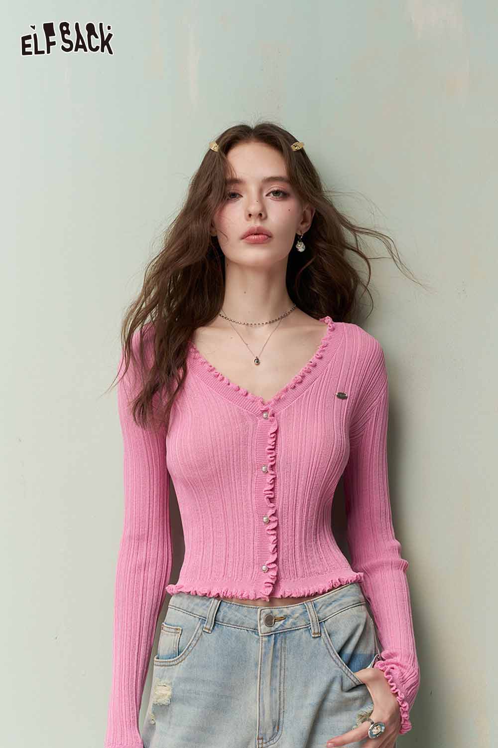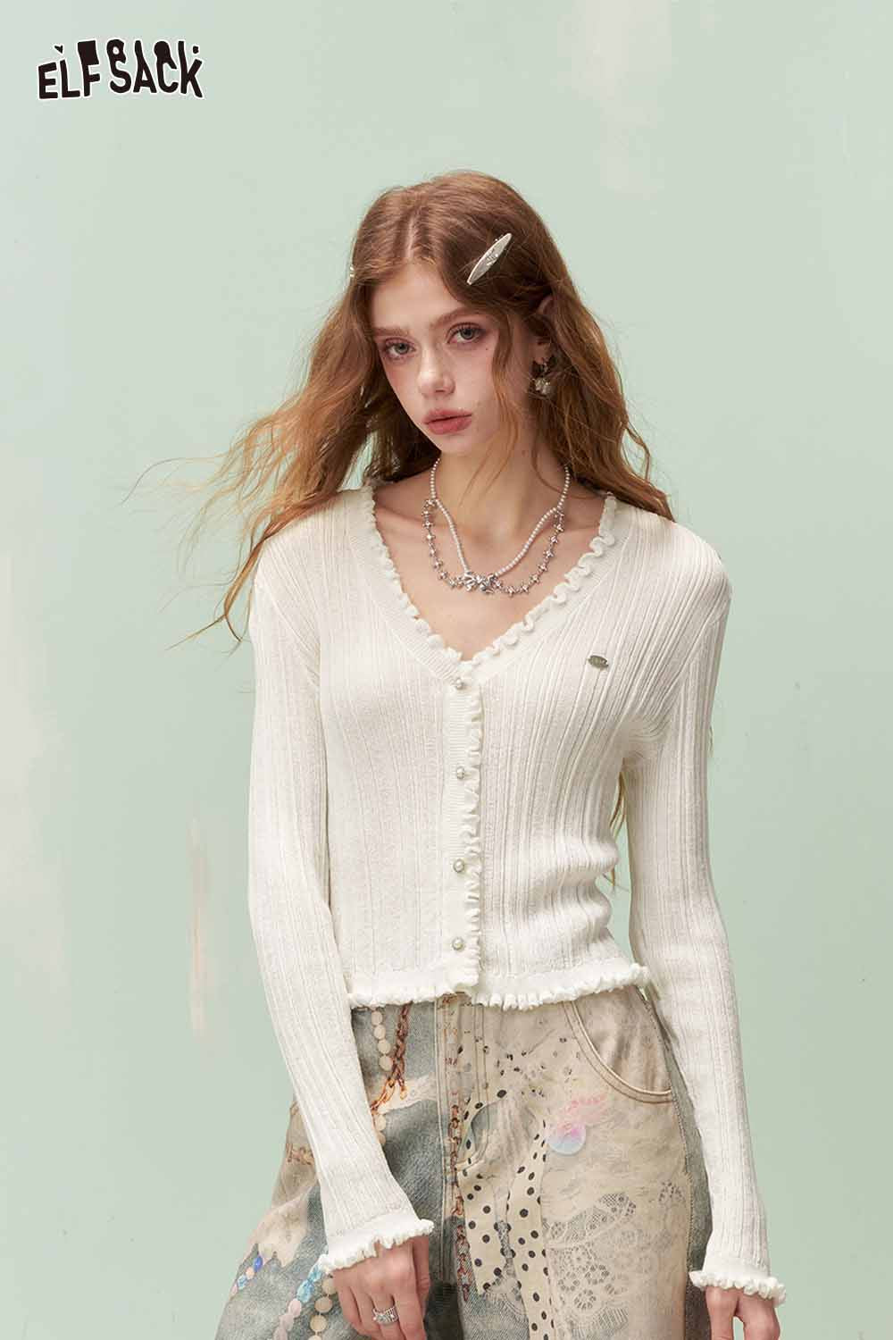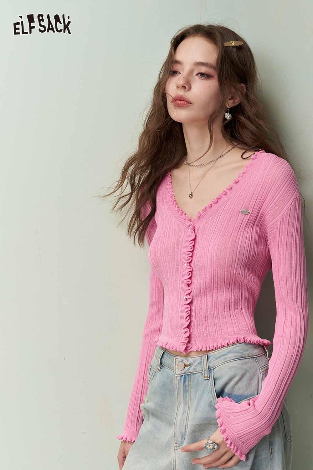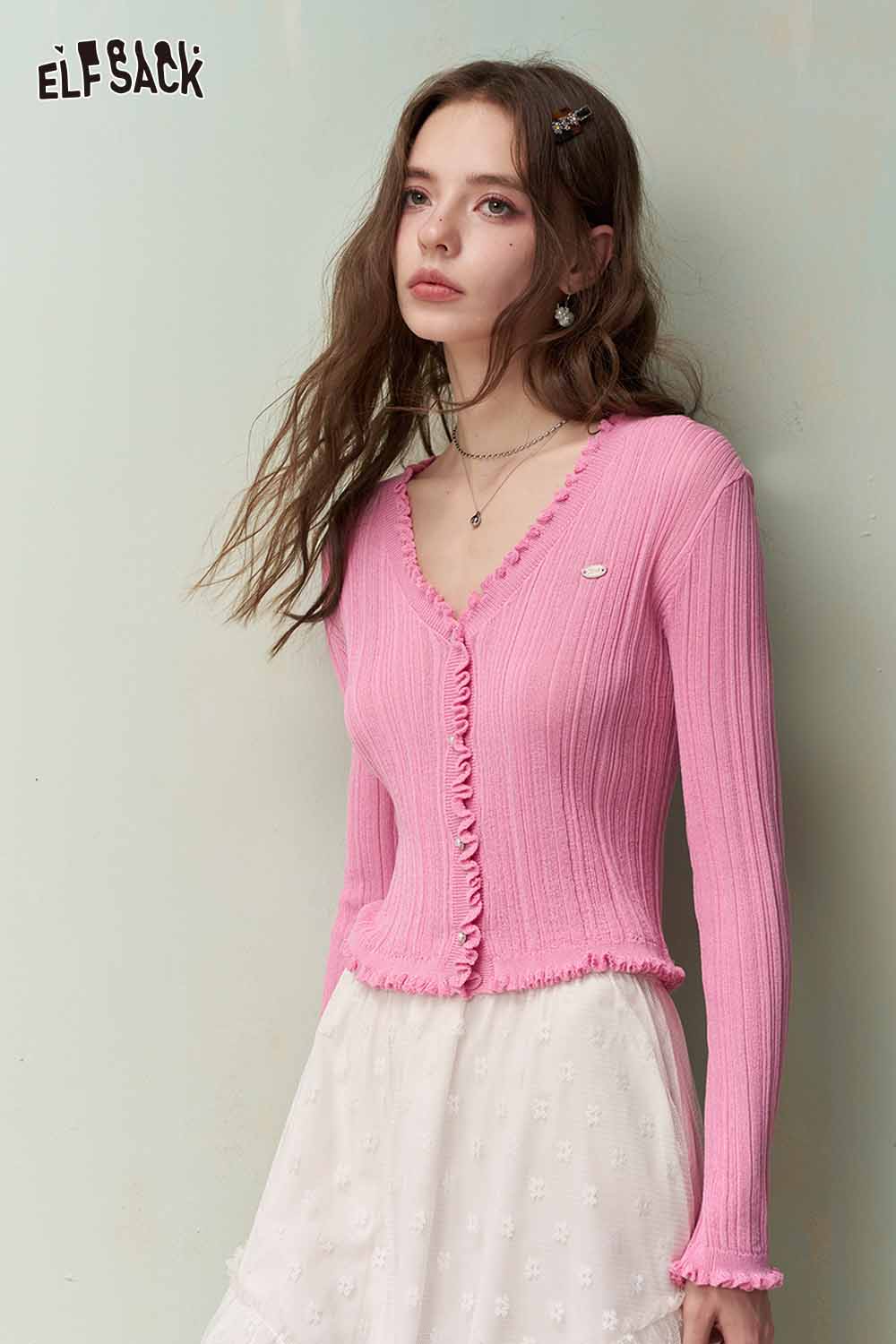 Cute Knit Cardigan with Ruffled Trim & Ribbed Texture