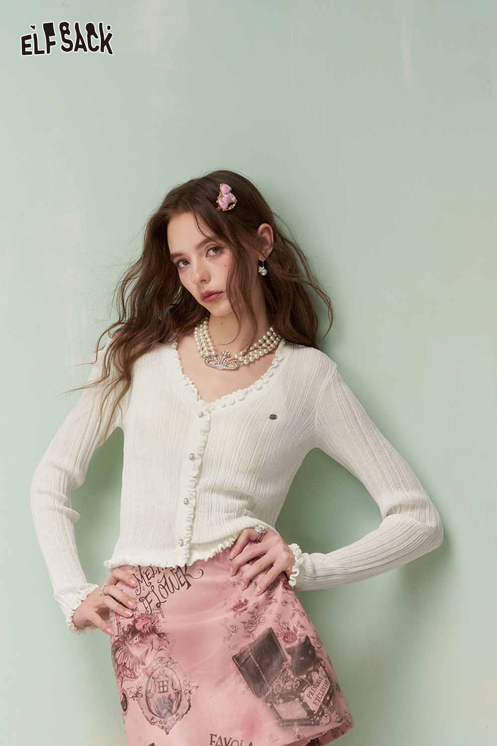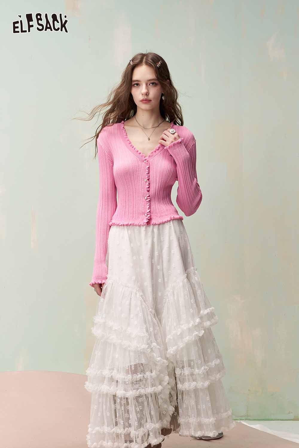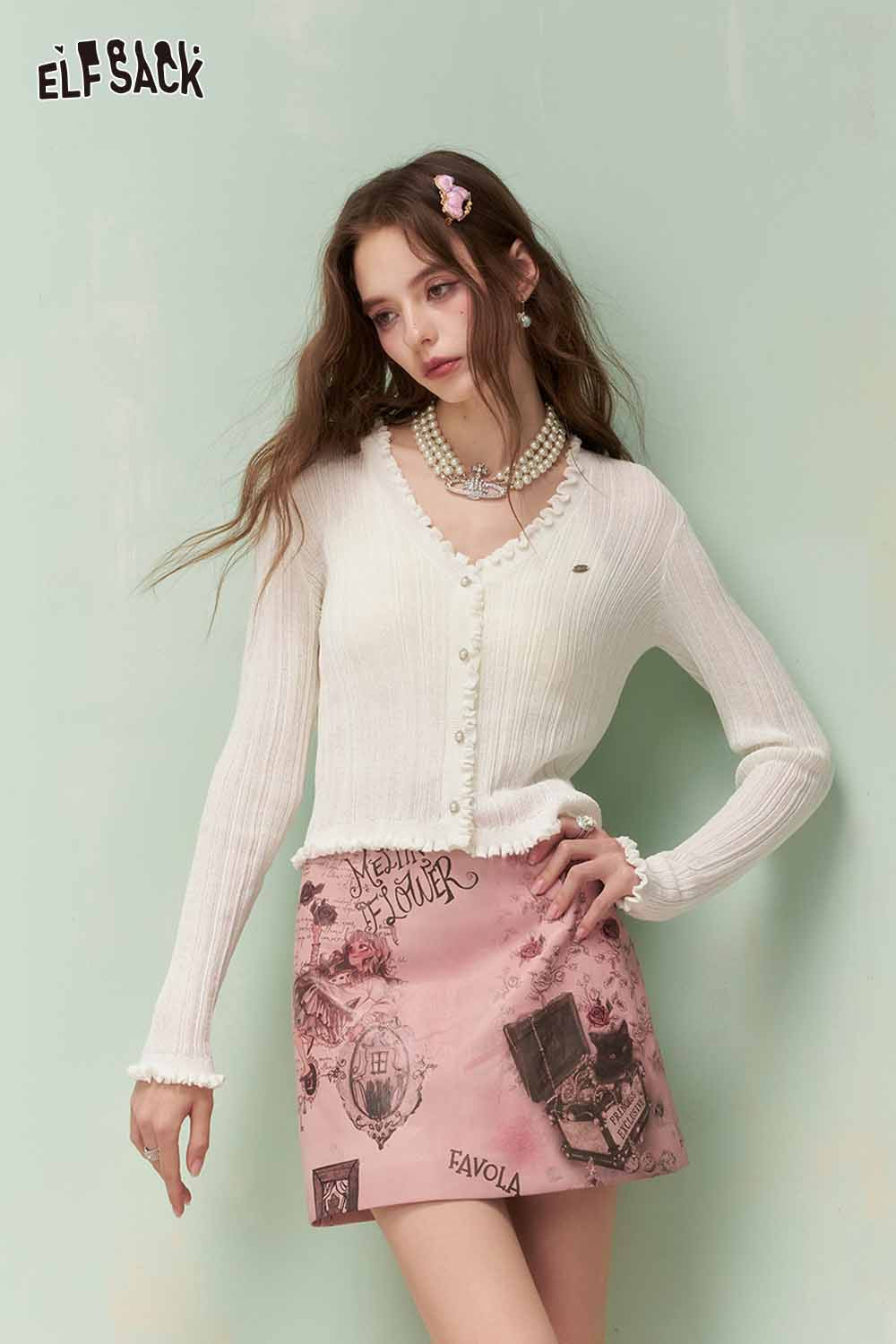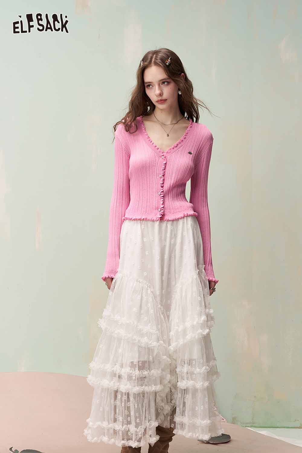 Cute Knit Cardigan with Ruffled Trim & Ribbed Texture