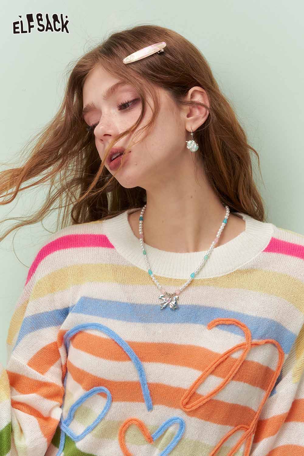 Colorful Striped Sweater with Embroidery