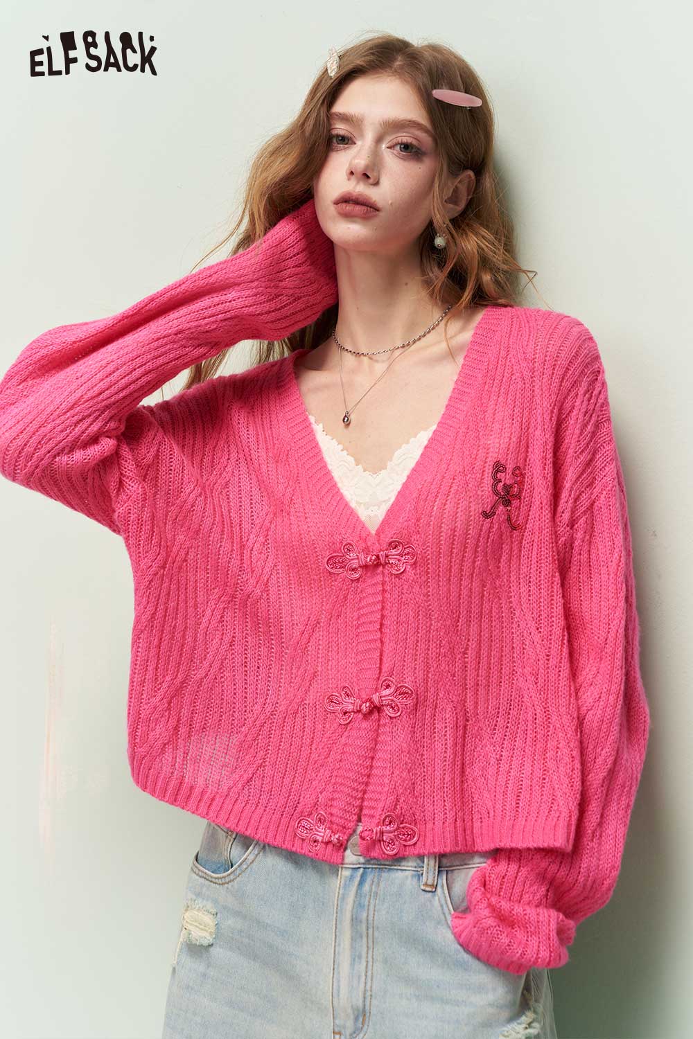 Cute Knit Cardigan with Chinese Frog Closures