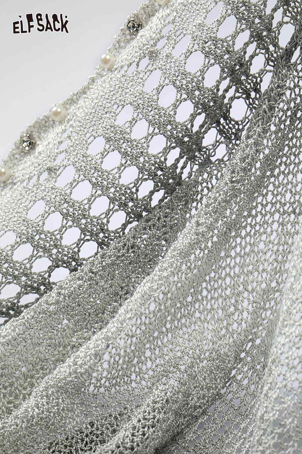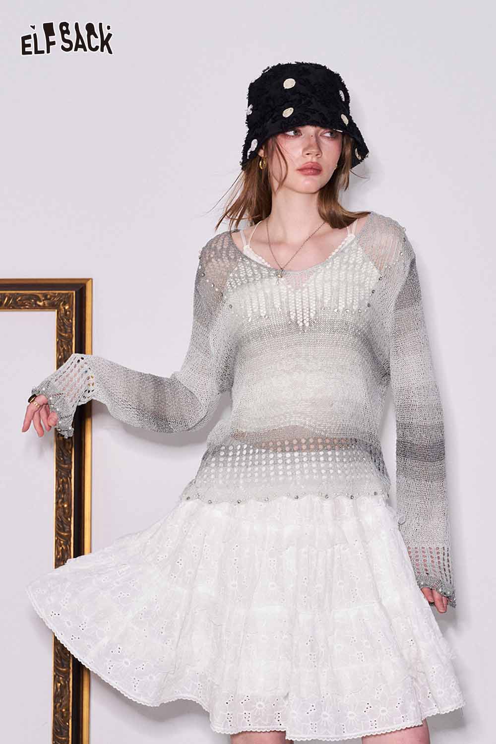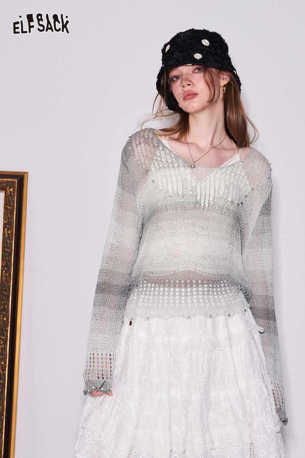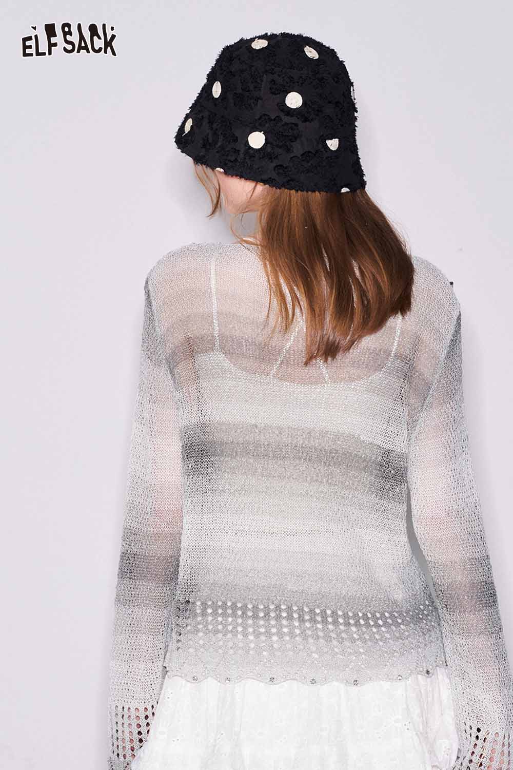 Gradient Pointelle Rhinestone Knit Sweater