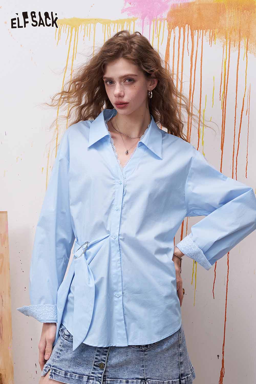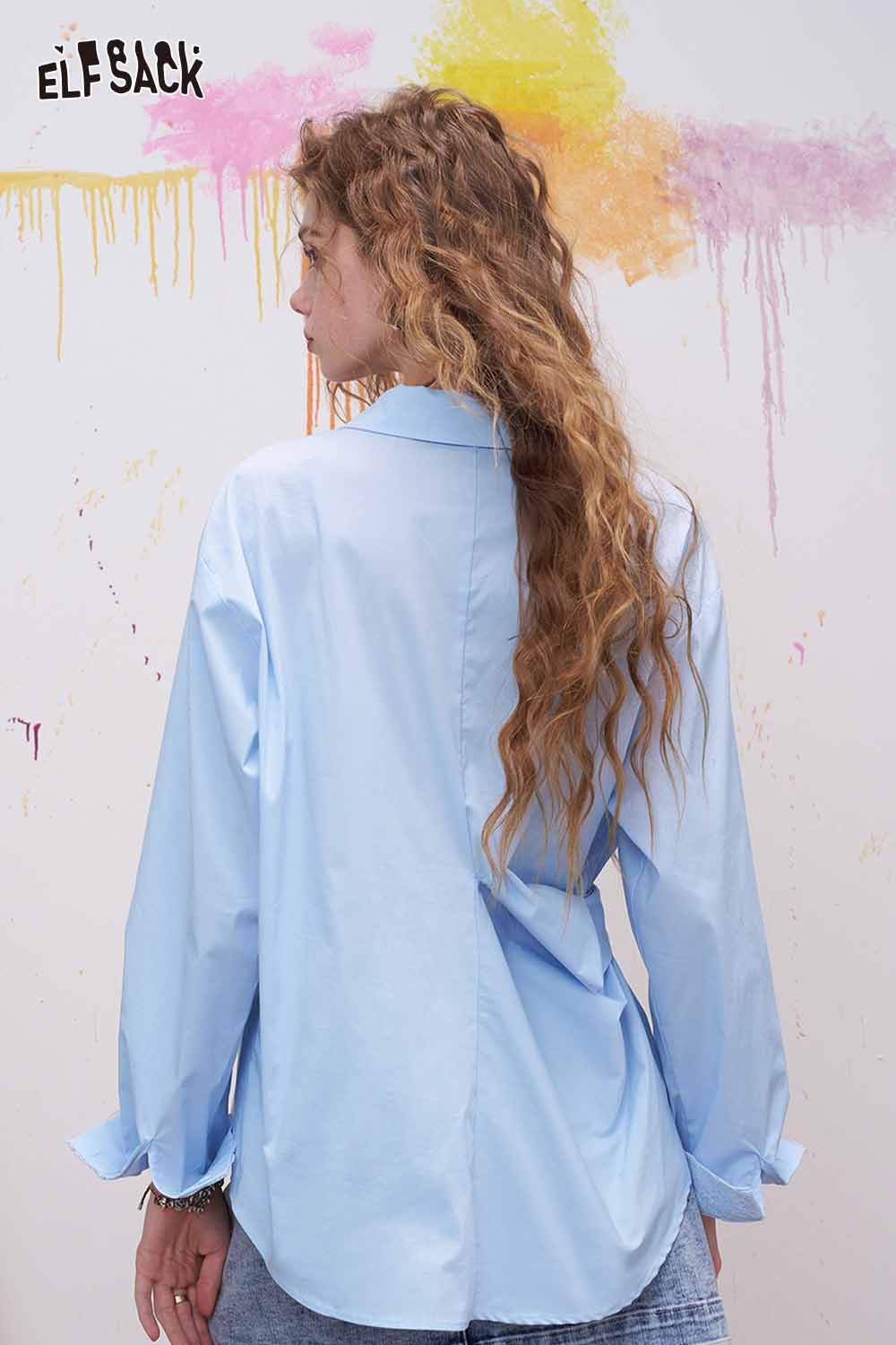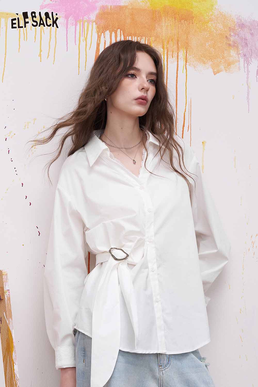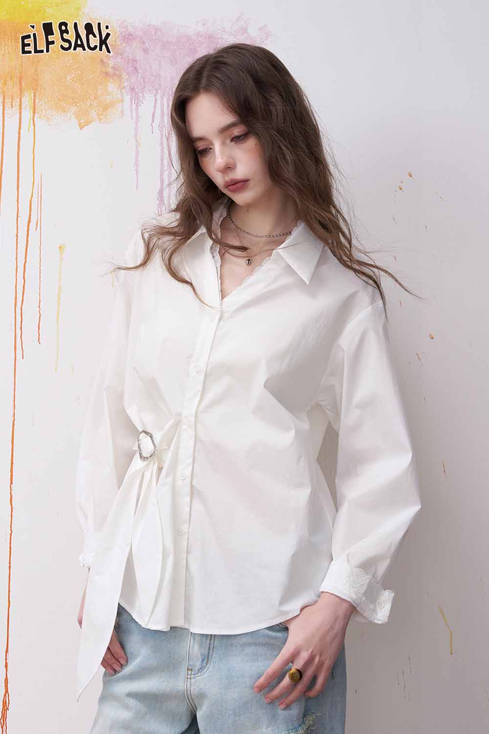 Lapel Long Sleeve Shirt Irregular Drawstring Design Sense Blouse Daily Commute Office Wear