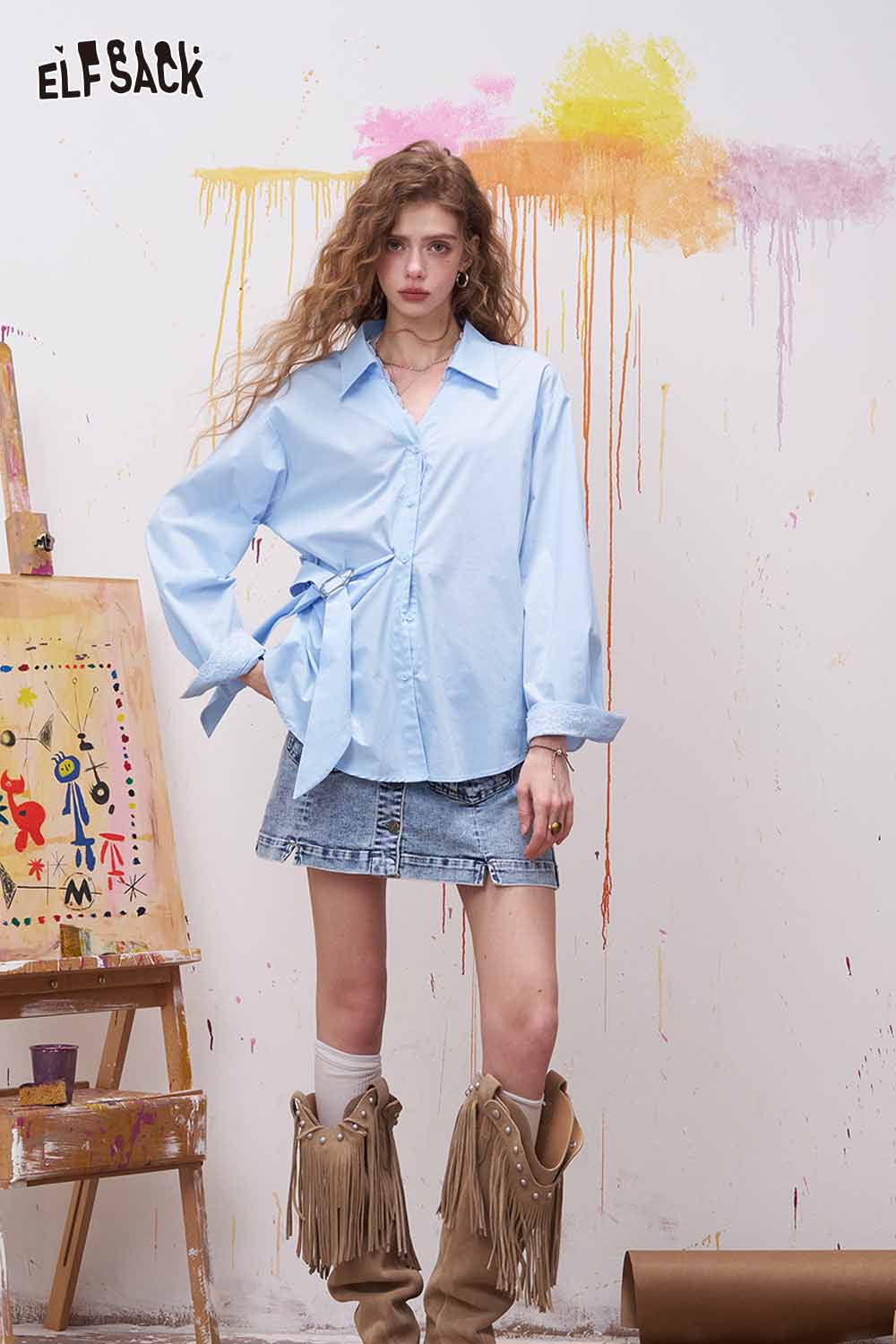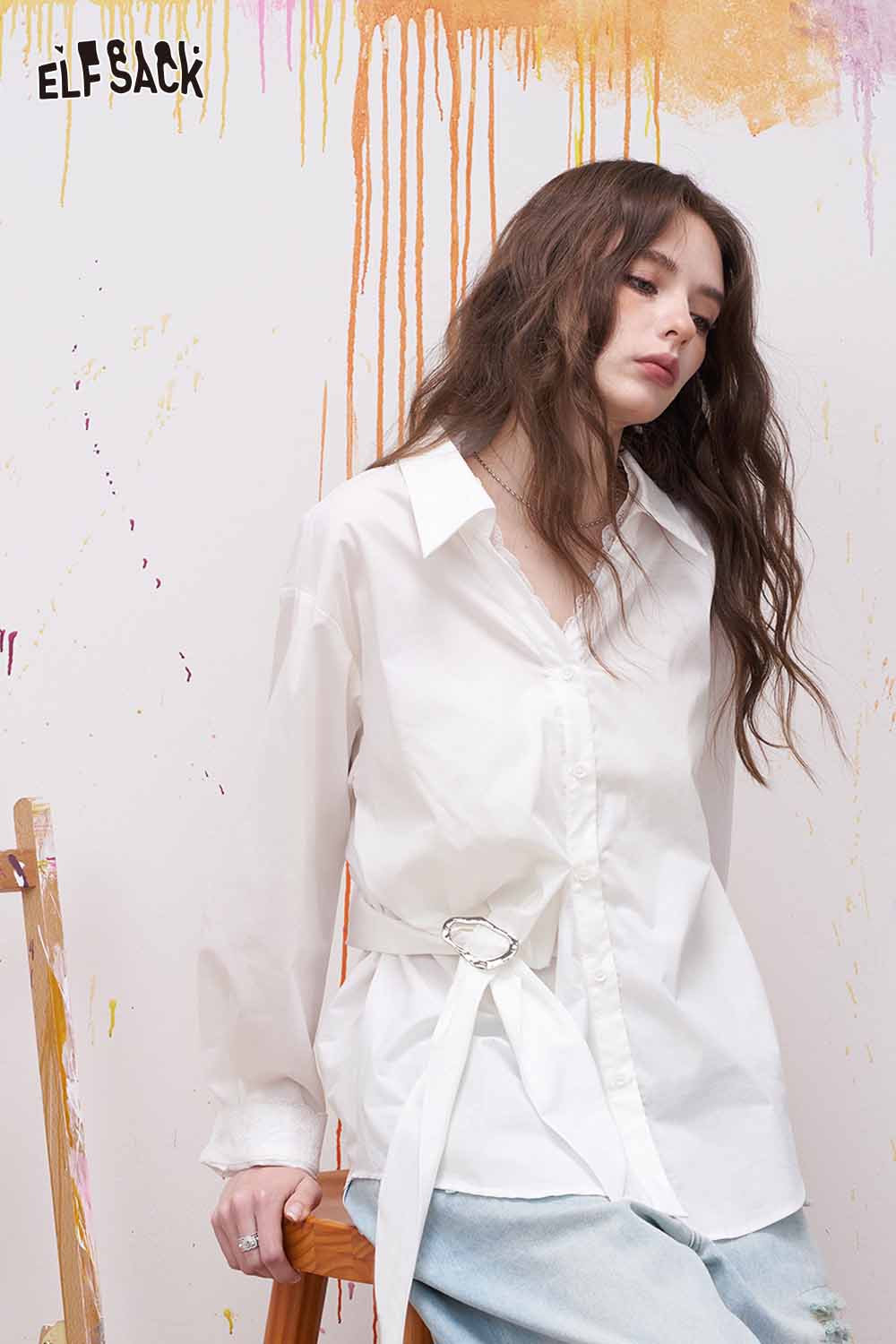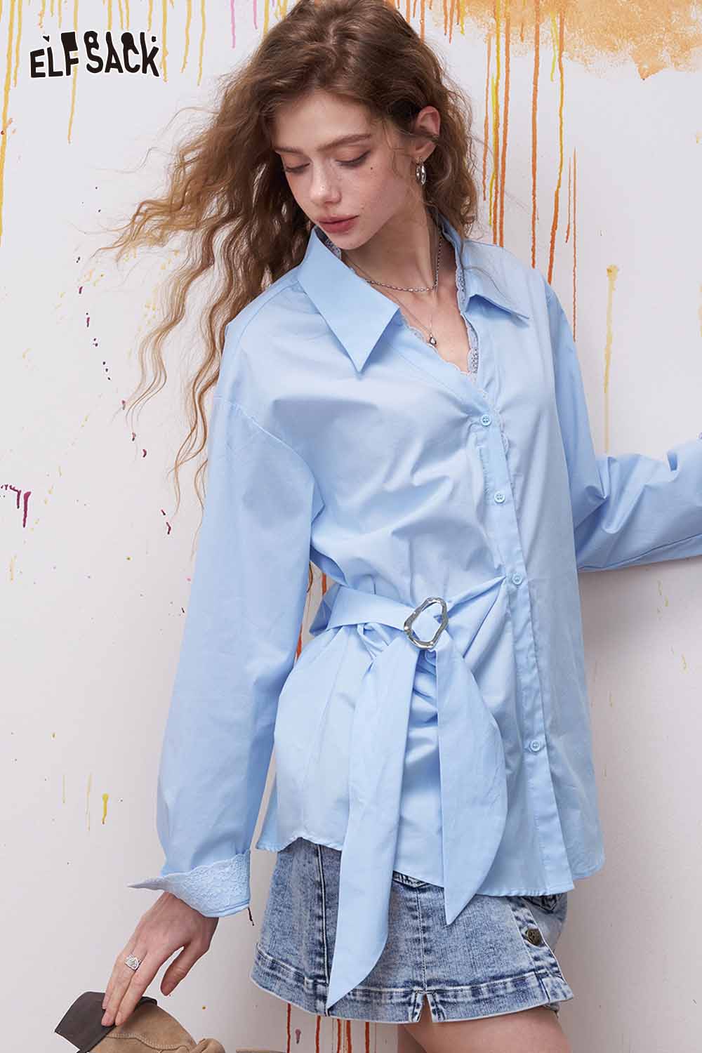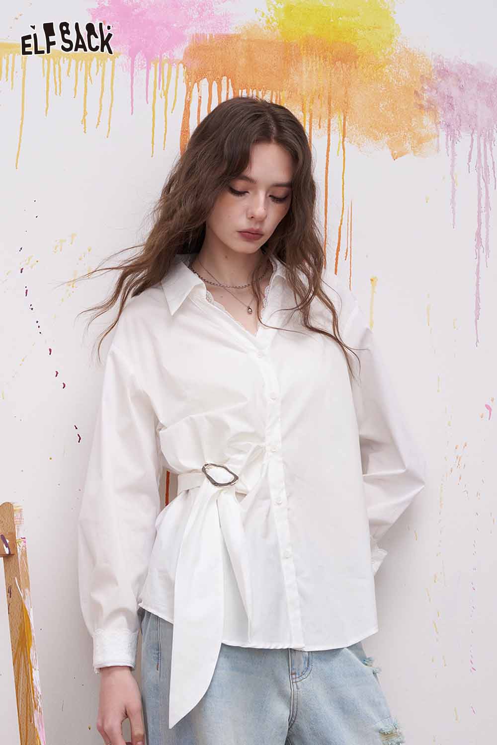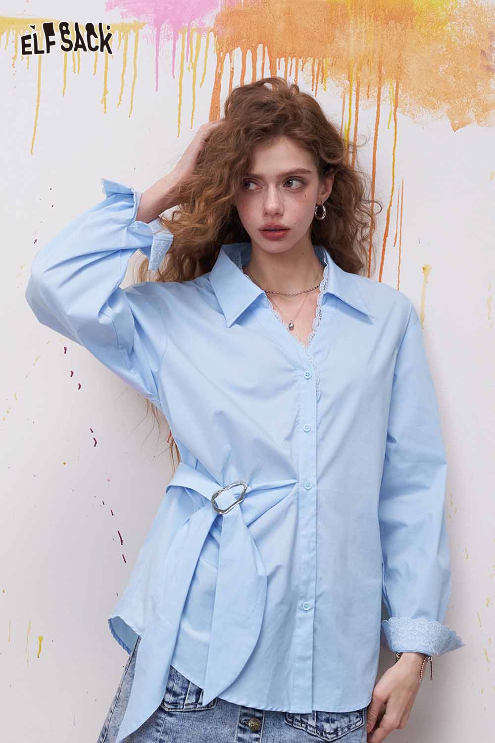 Lapel Long Sleeve Shirt Irregular Drawstring Design Sense Blouse Daily Commute Office Wear