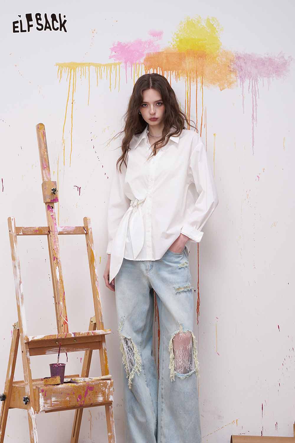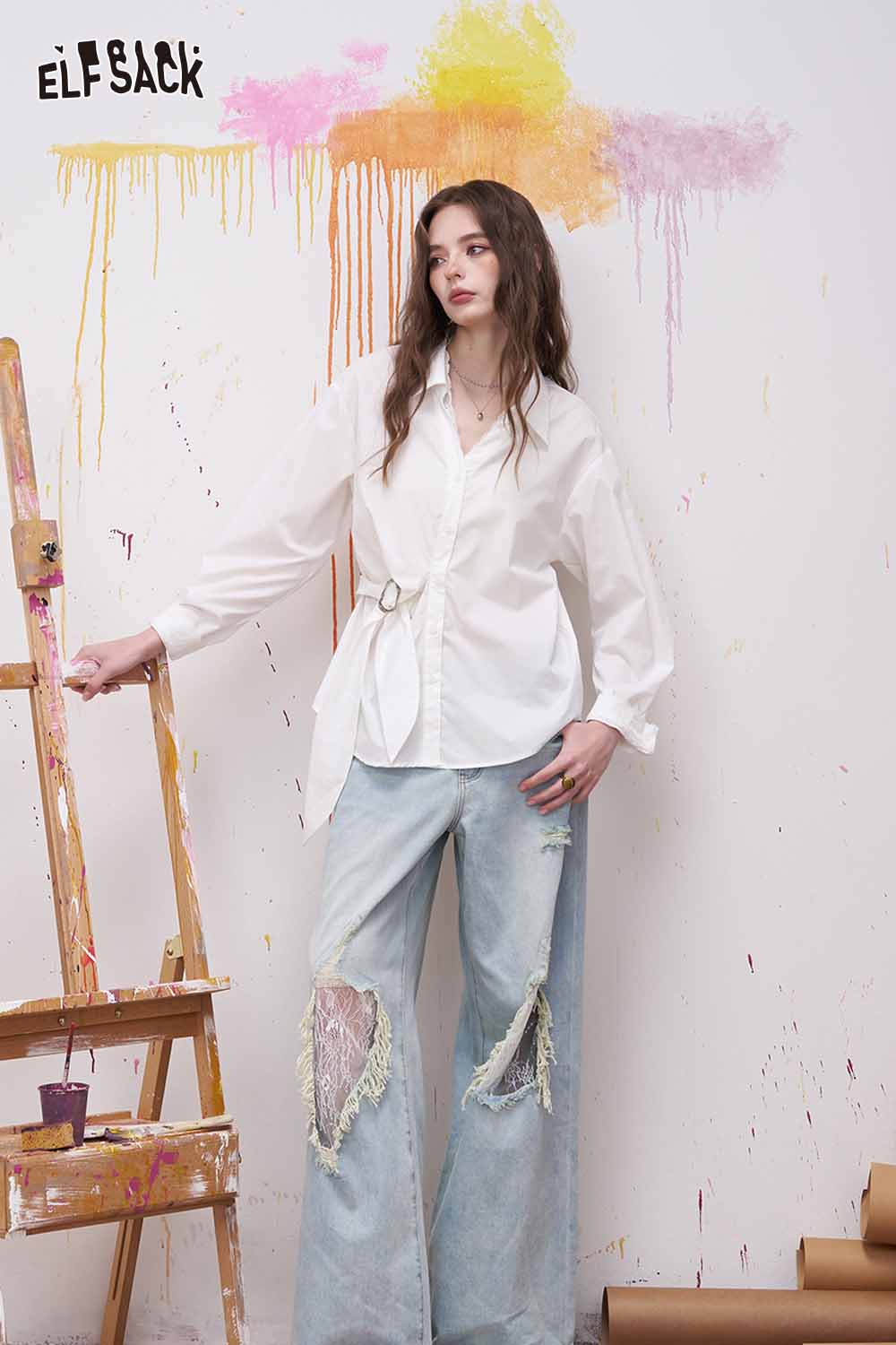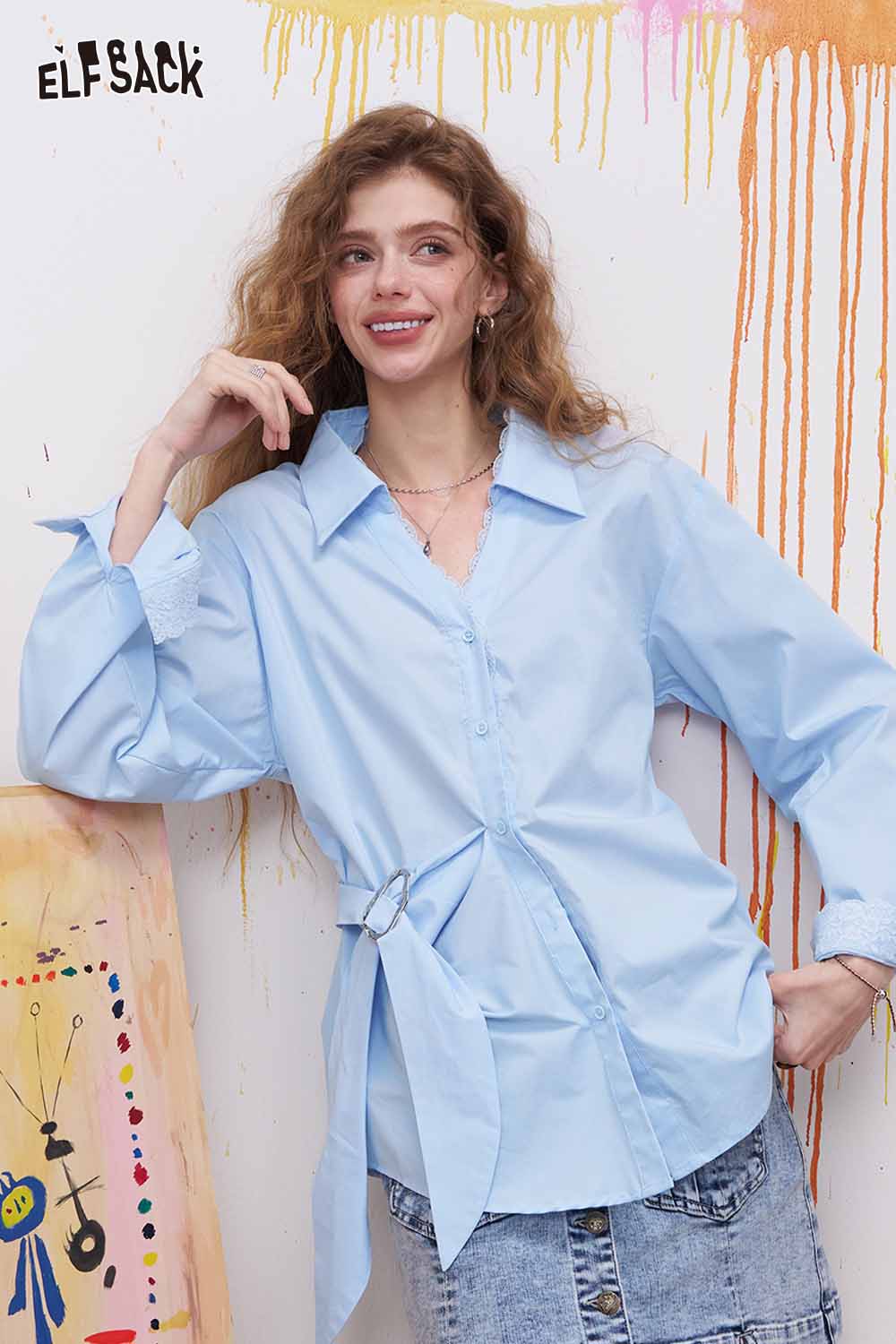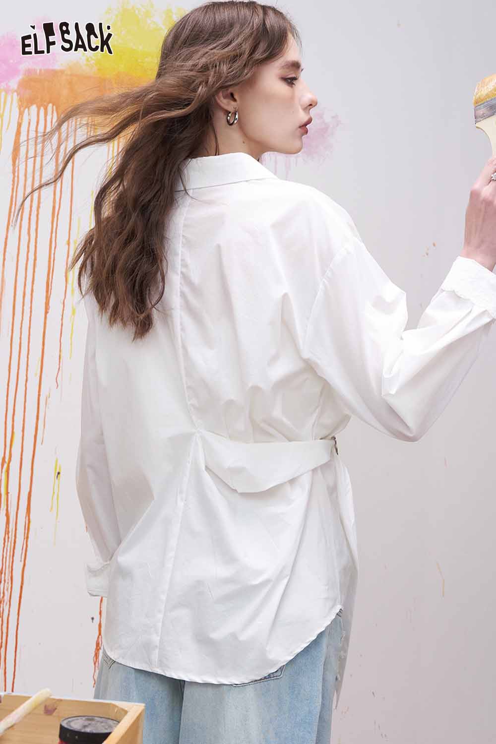 Lapel Long Sleeve Shirt Irregular Drawstring Design Sense Blouse Daily Commute Office Wear
