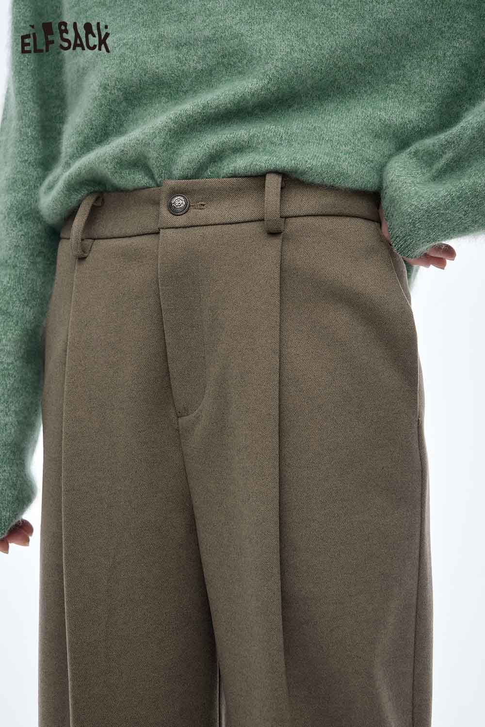 ELFSACK women's striped cuff straight pants in olive green, styled with a cozy sweater and casual shoes
