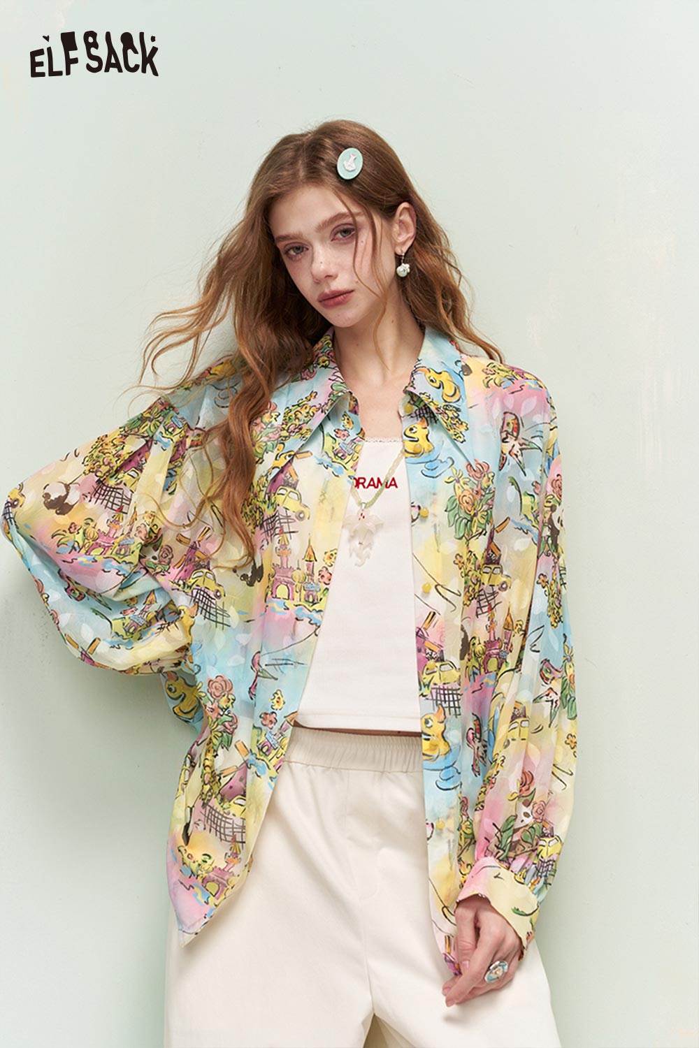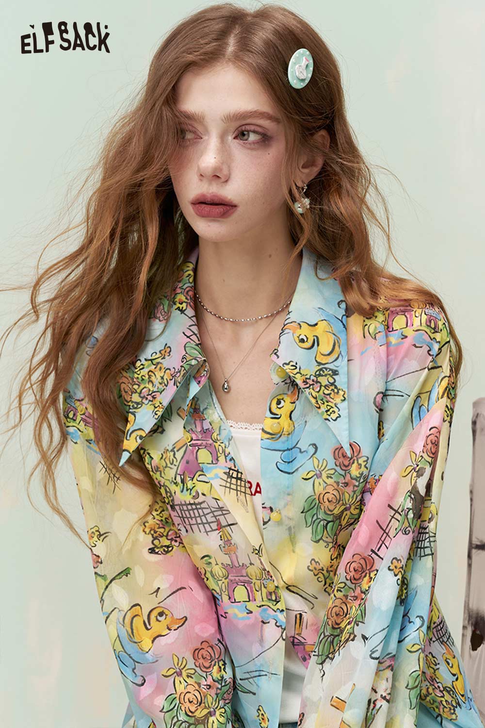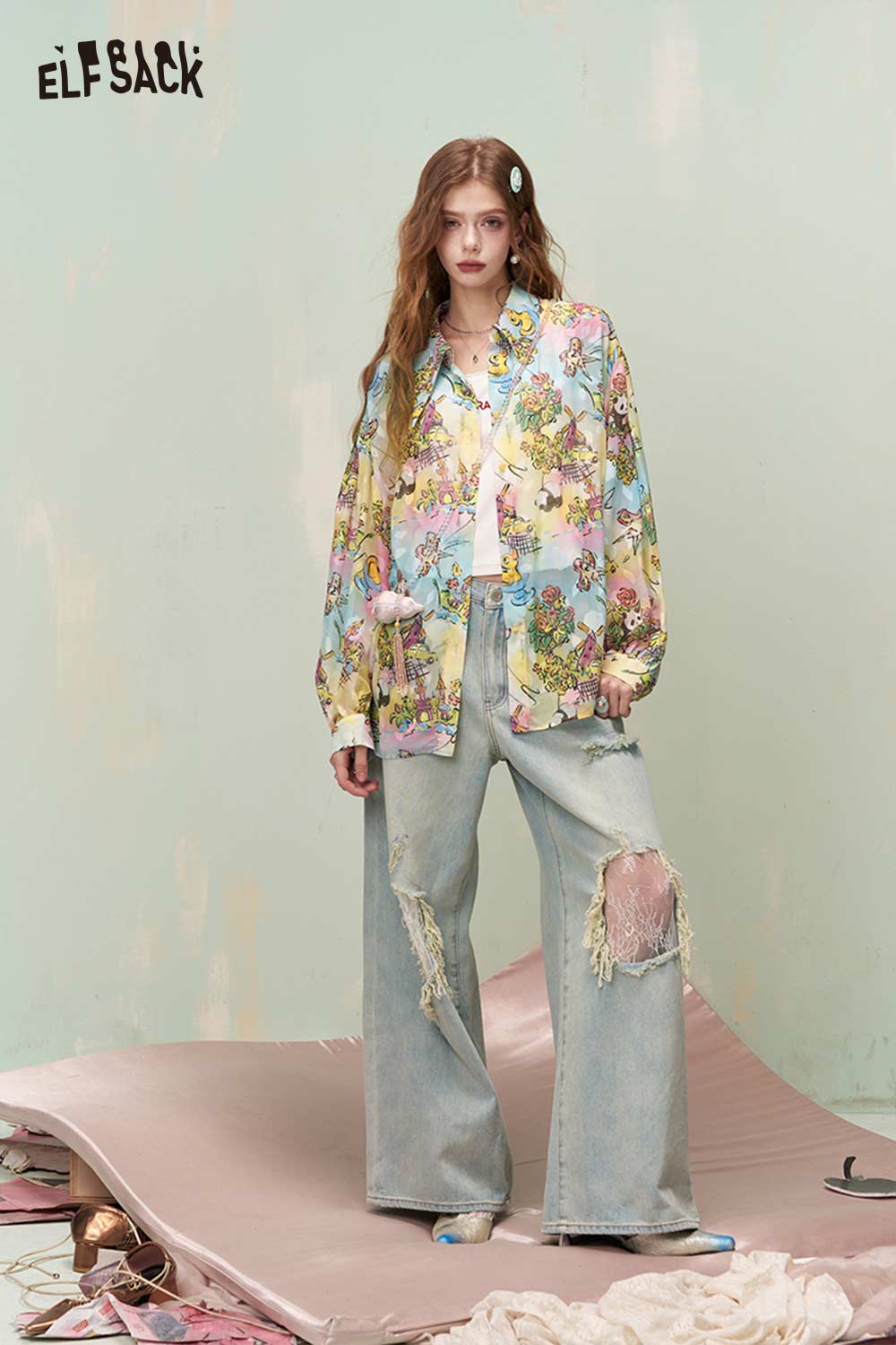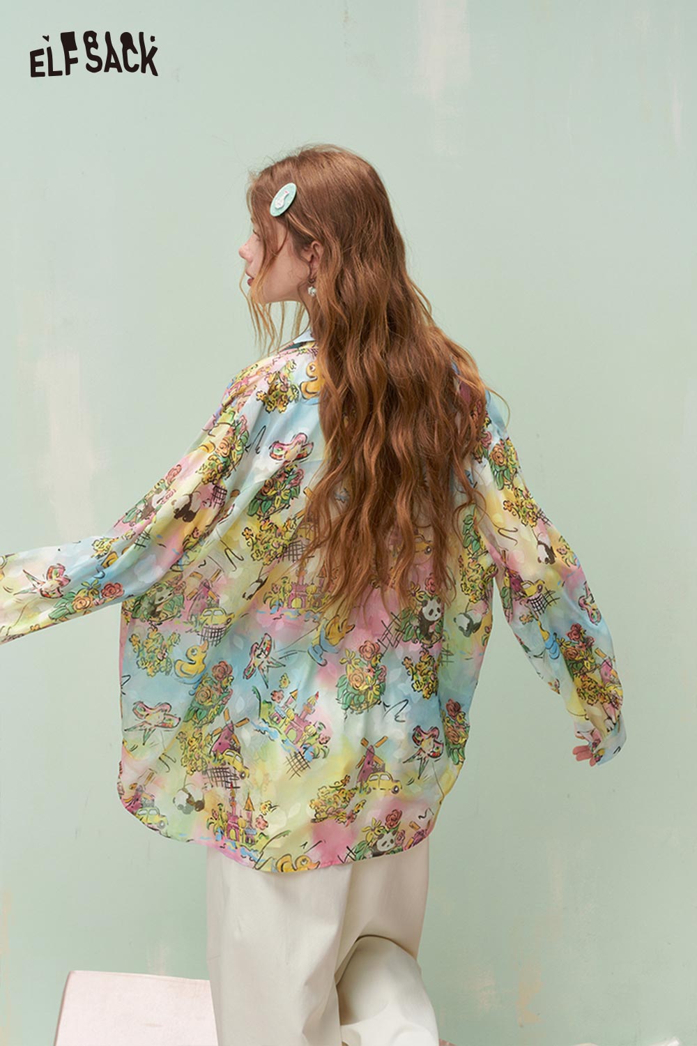 Dreamy Whimsical Graffiti Allover Print Loose Fit Long Sleeve Shirt