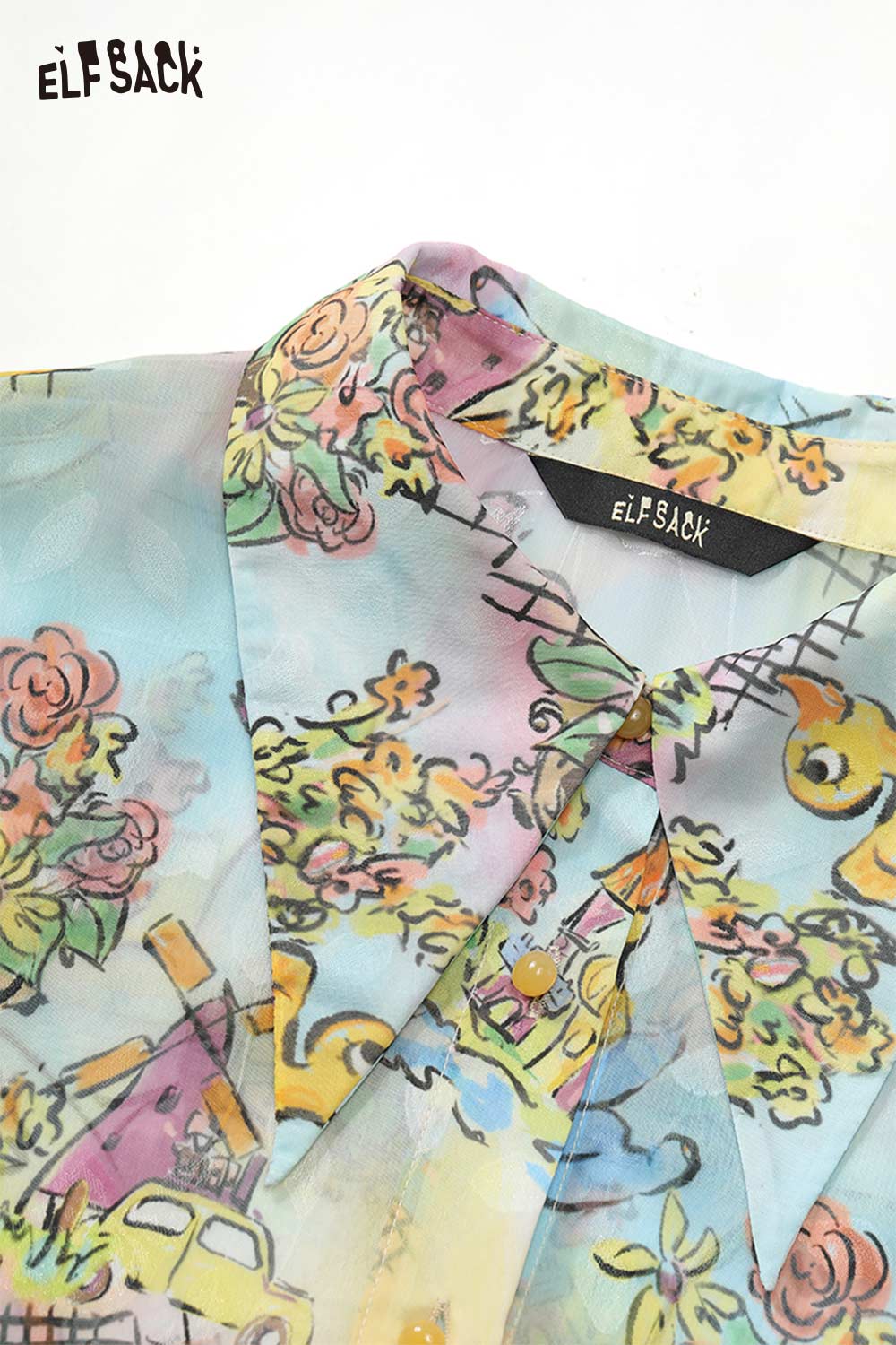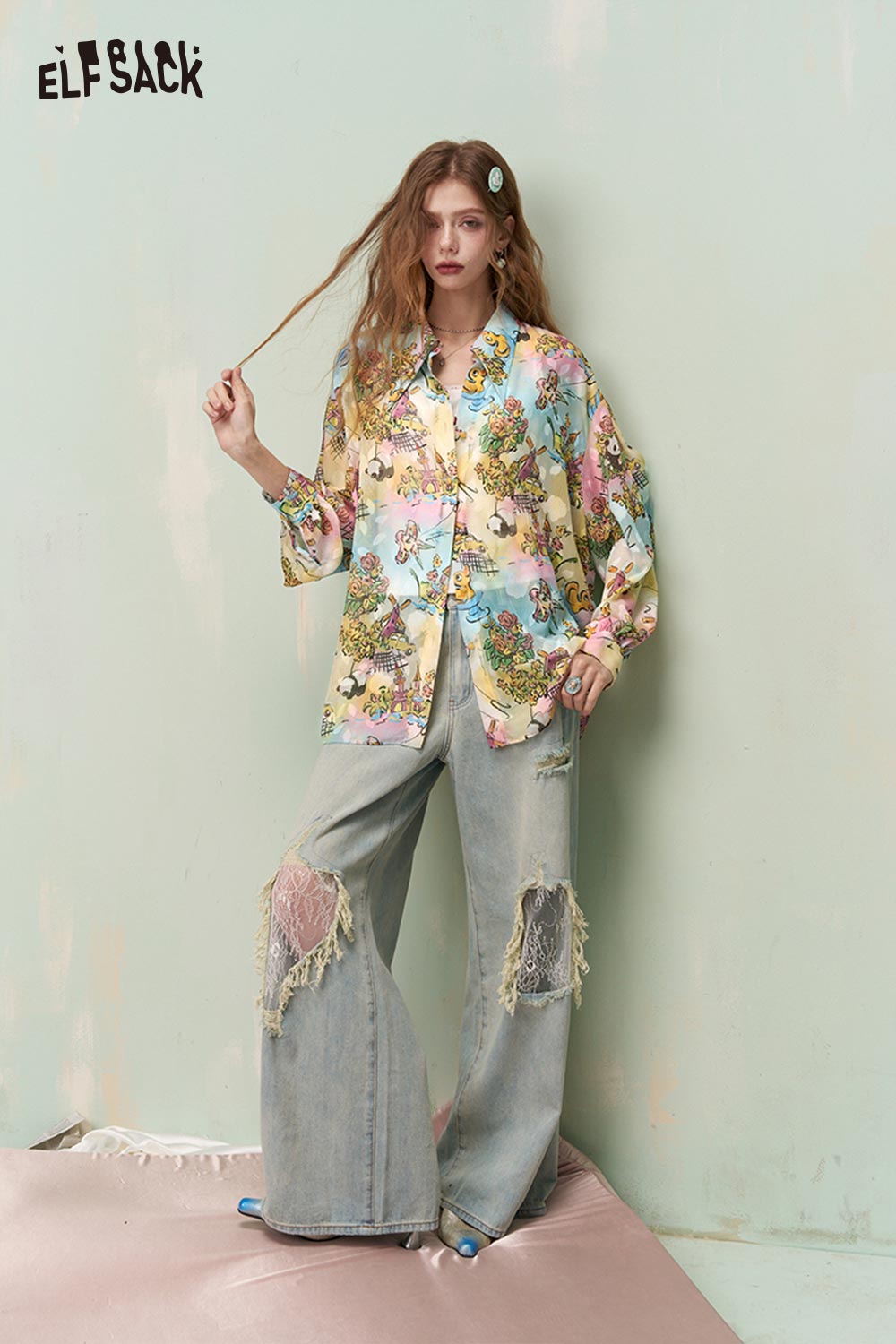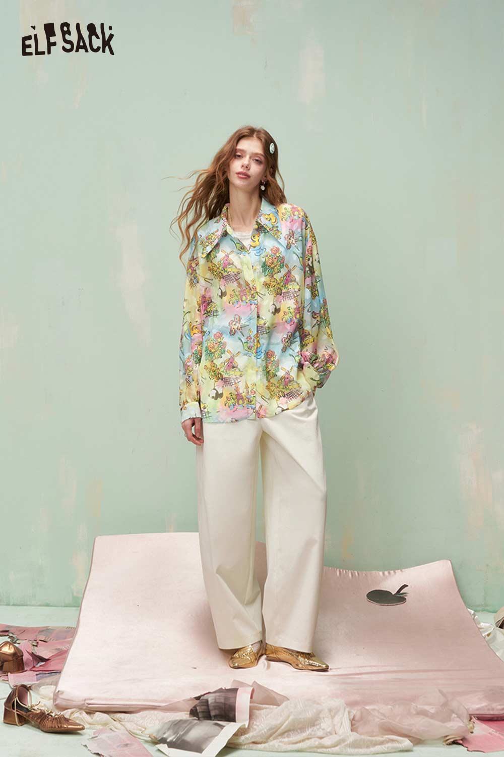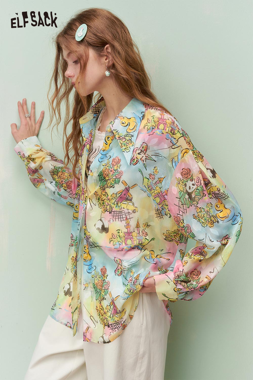 Dreamy Whimsical Graffiti Allover Print Loose Fit Long Sleeve Shirt