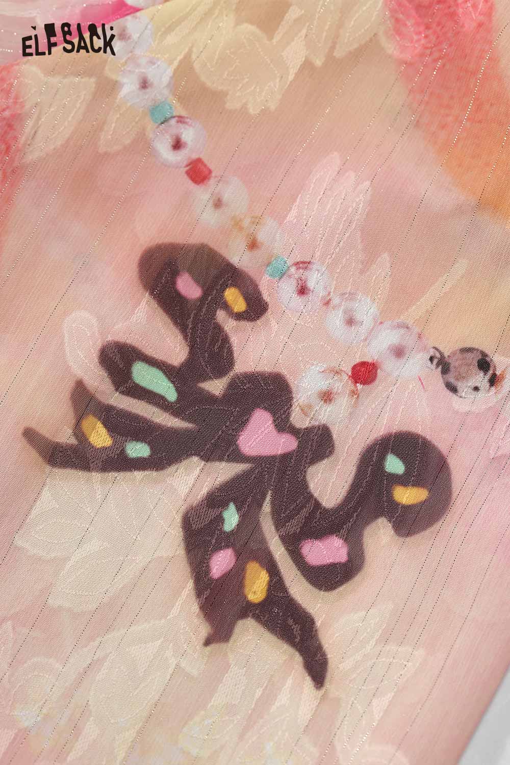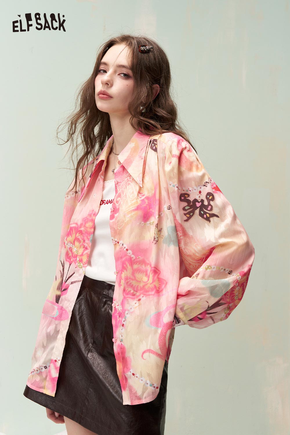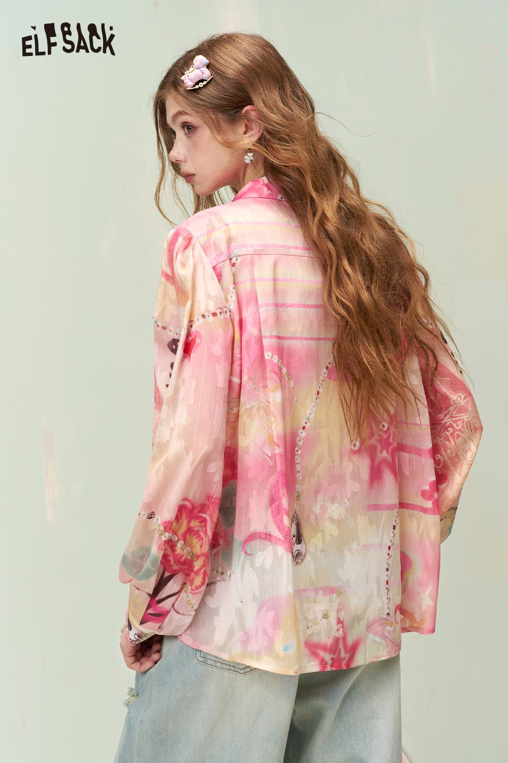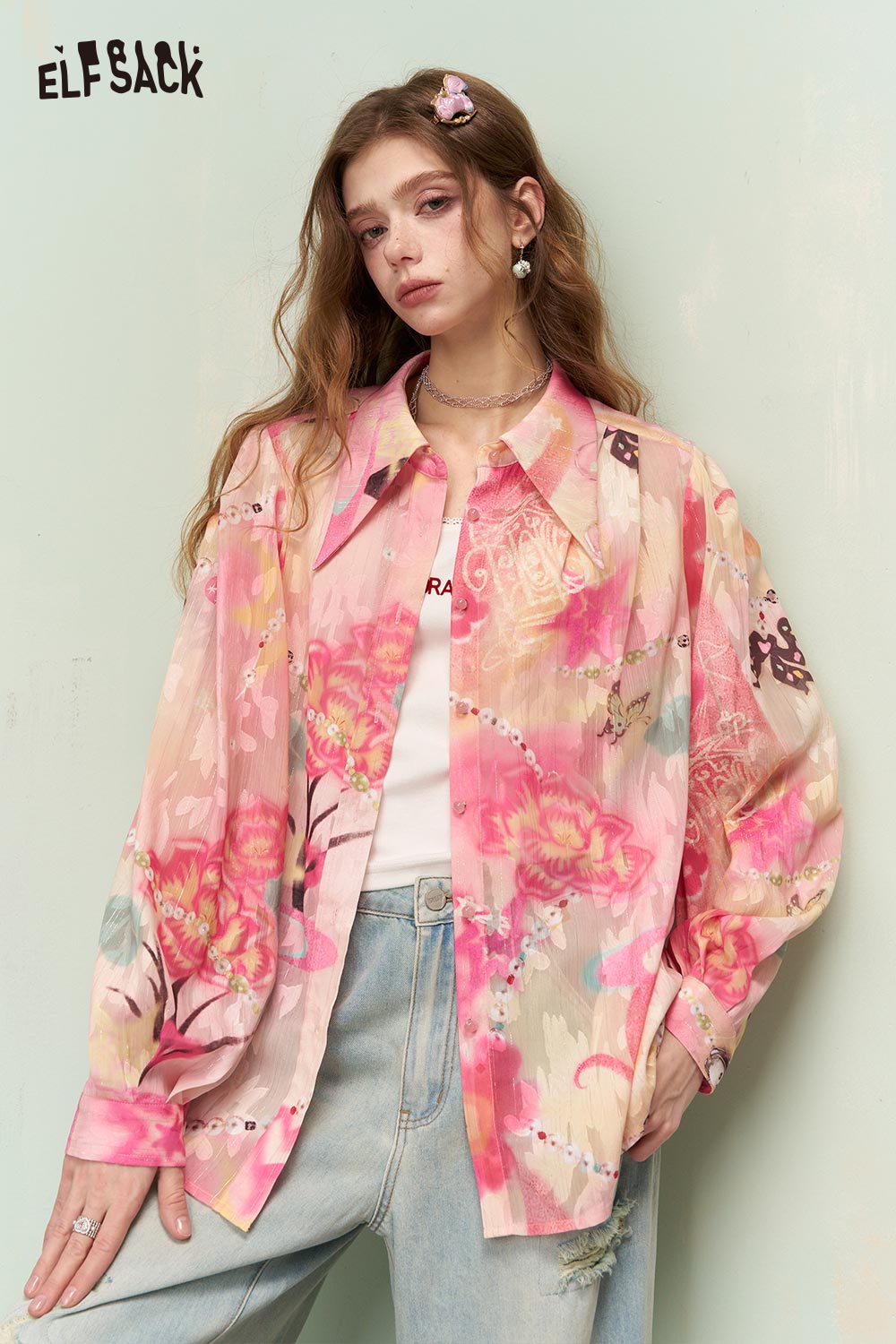 Fantasy Gradient Floral Beaded Print Long Sleeve Shirt