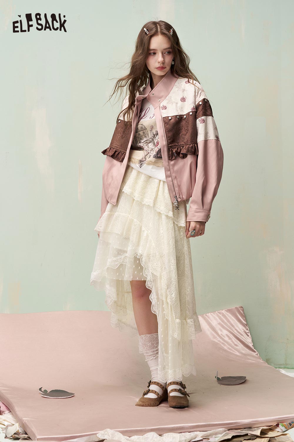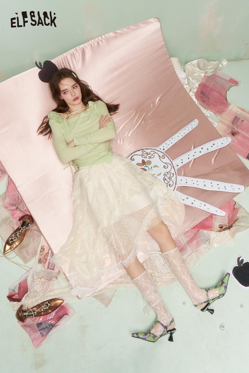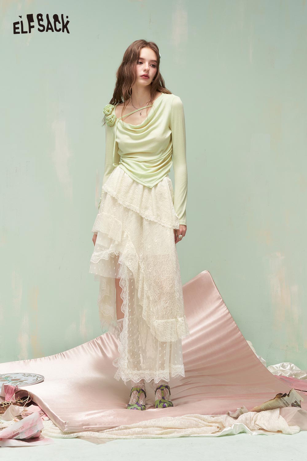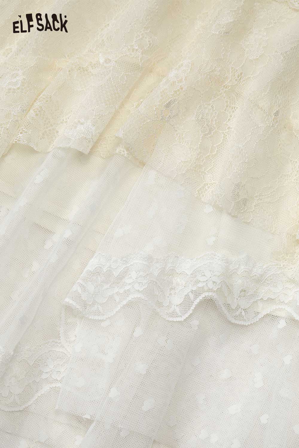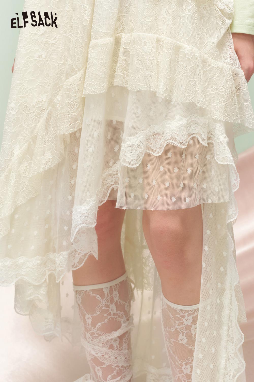 French Soft Lace Polka Dot Mesh Asymmetrical Skirt