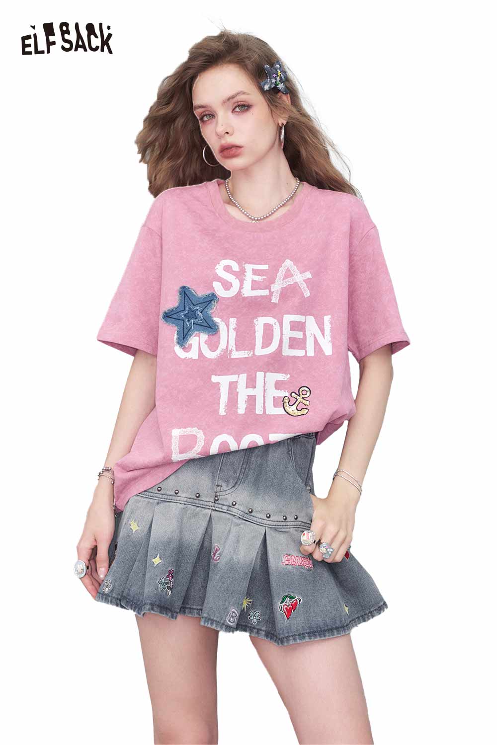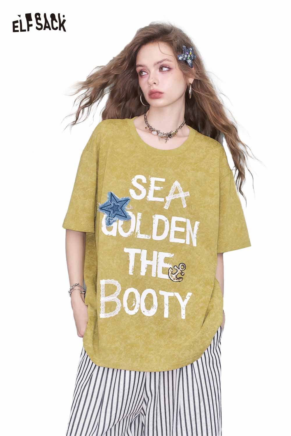 通気性のあるコットンジャージーTシャツ。全体に星柄。リラックスシルエット。